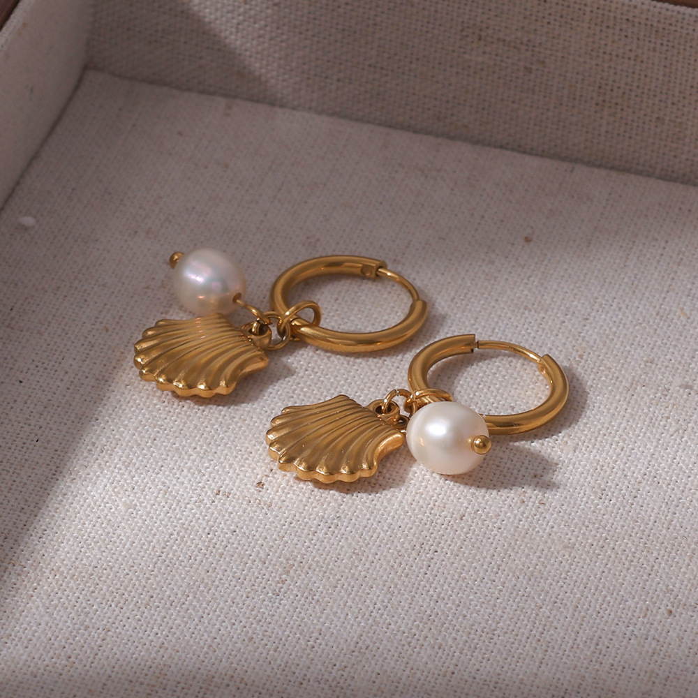 Pendientes en forma de abanico de perla de agua dulce natural de personalidad francesa transfronteriza europea y americana Pendientes de diseño de 18 quilates mujeres al por mayor