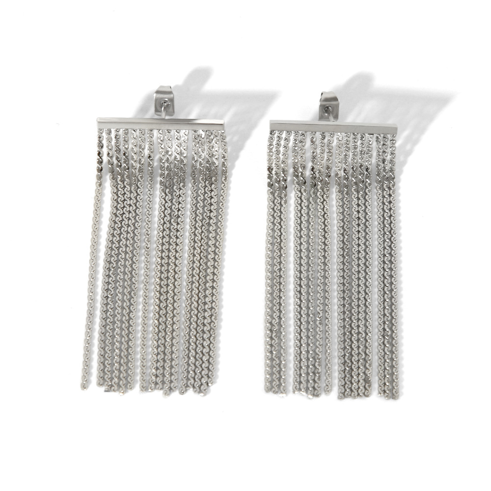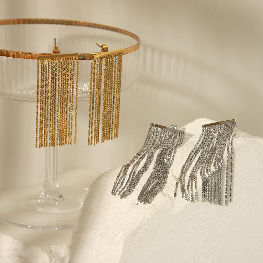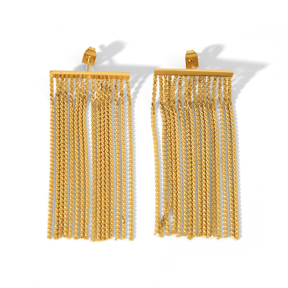 Estilo bohemio acero inoxidable oro real galvanoplastia de borde ancho borla atmósfera personalidad exagerada Pendientes para mujer Pendientes 18K