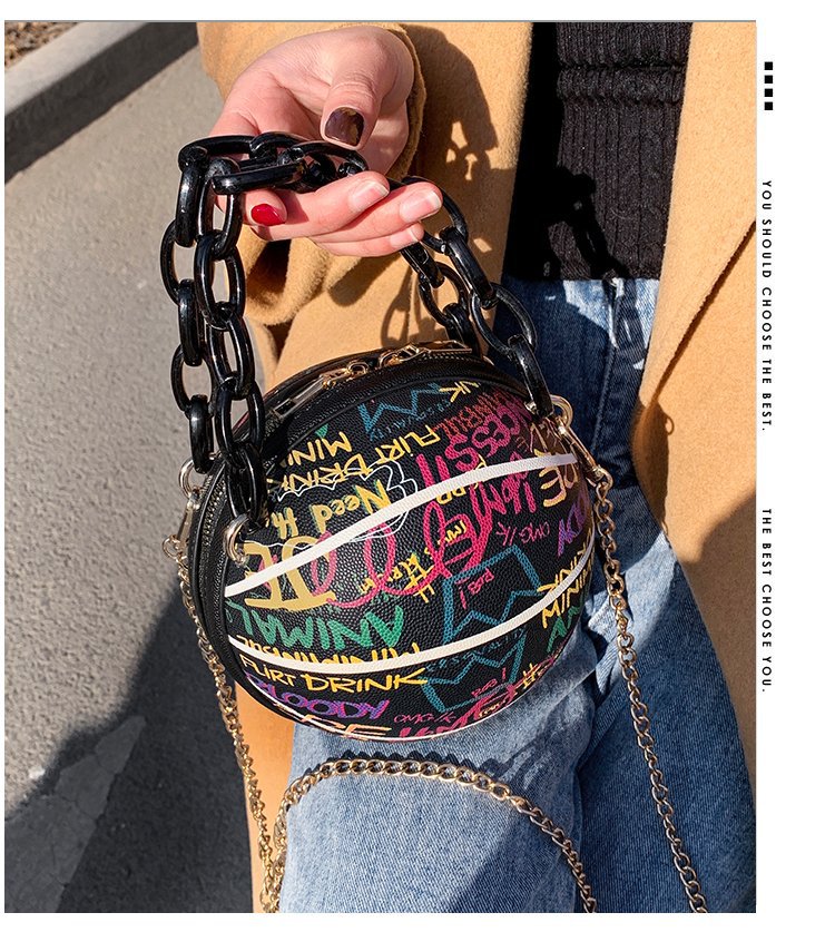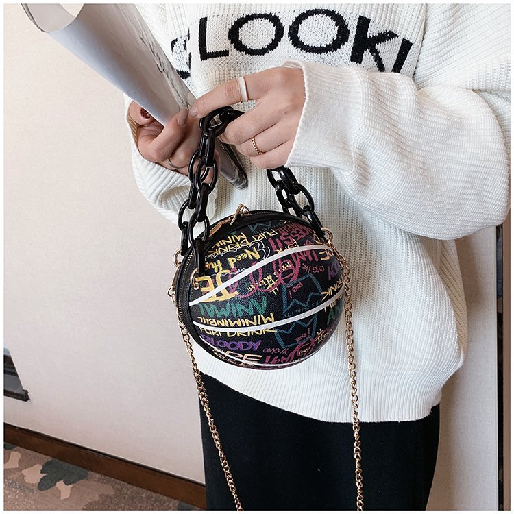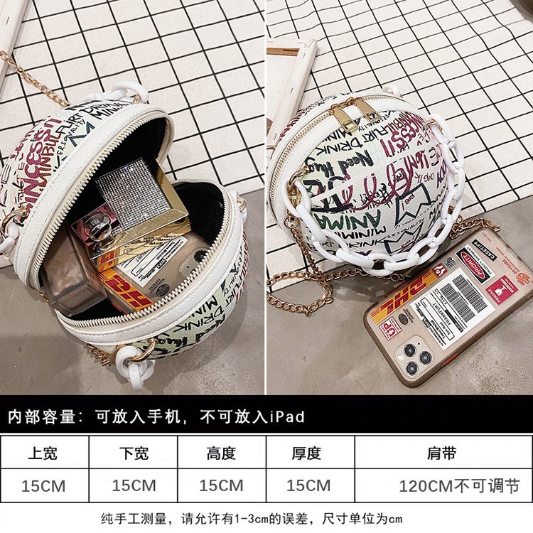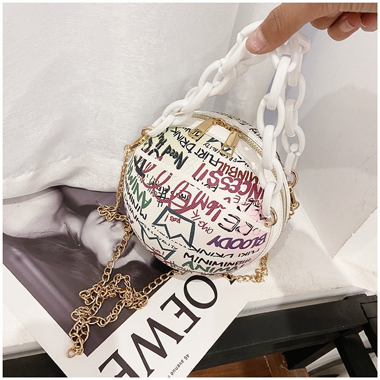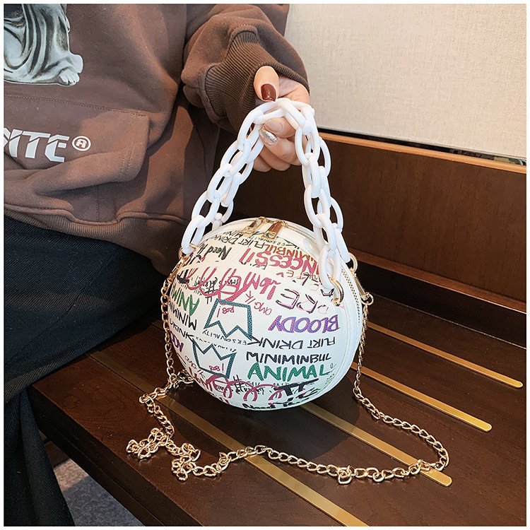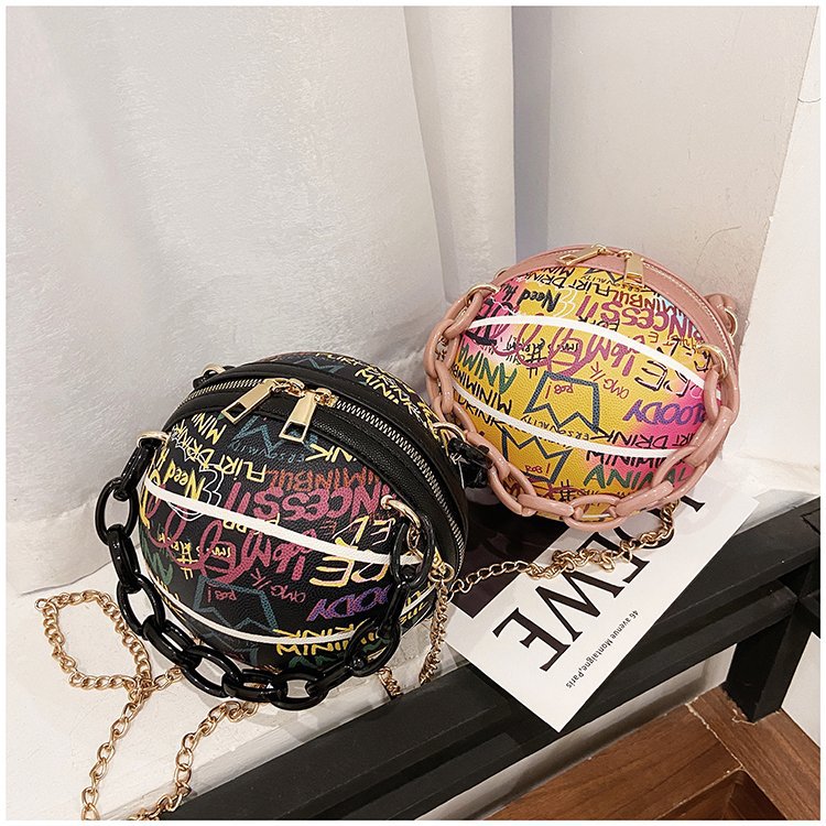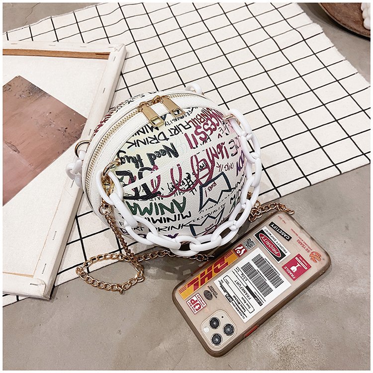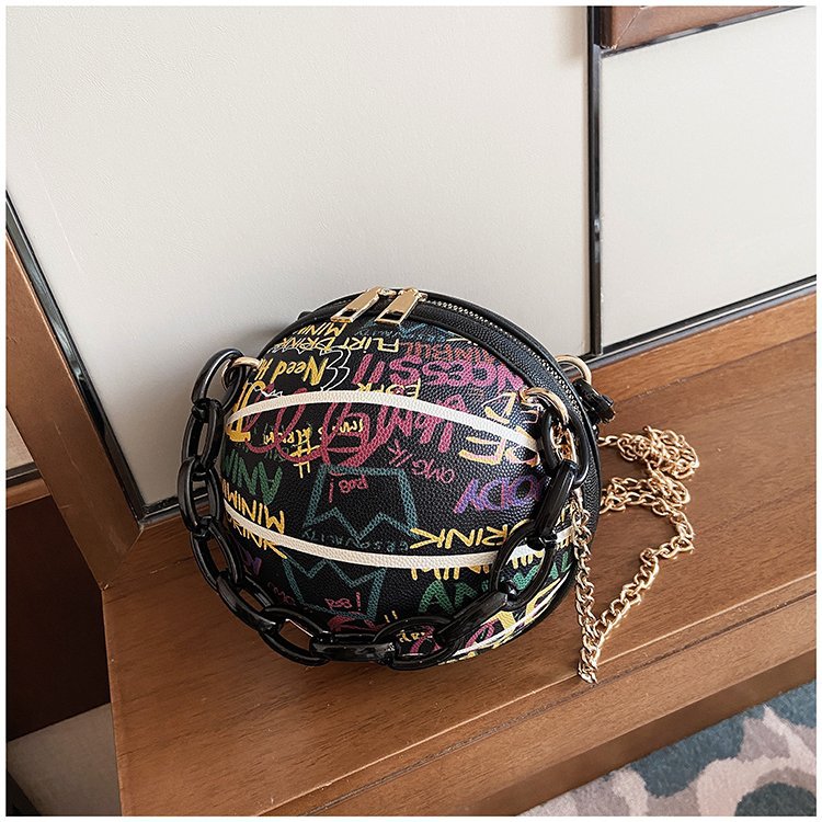 Bolso de hombro transfronterizo, tendencia de moda femenina, bolso de baloncesto de graffiti, bolso de mensajero de cadena de letras de calle con personalidad