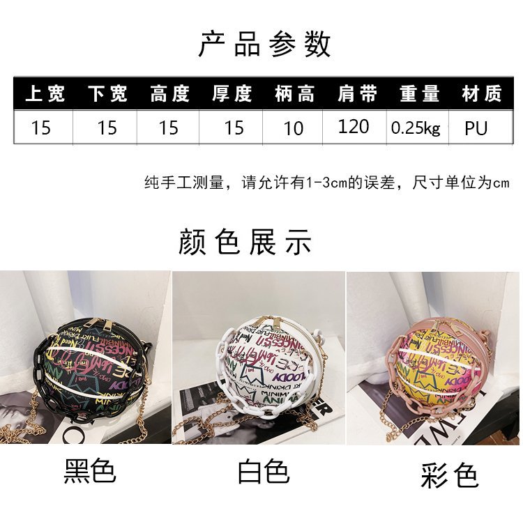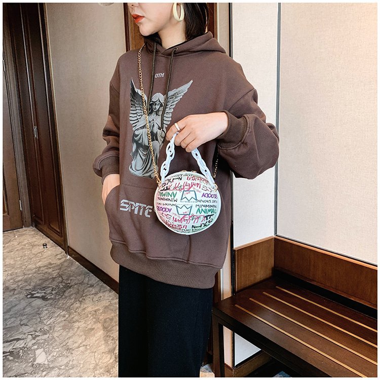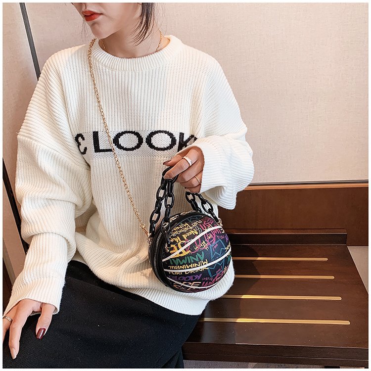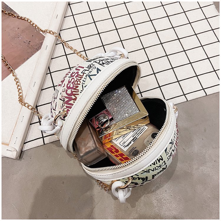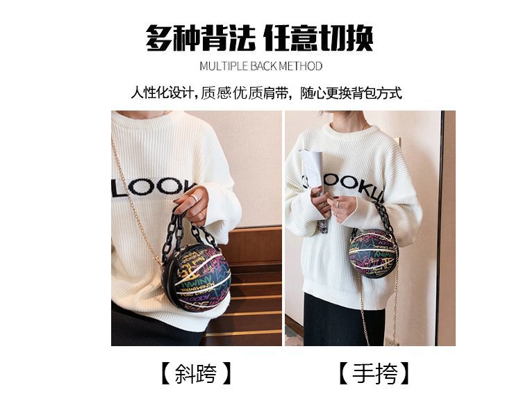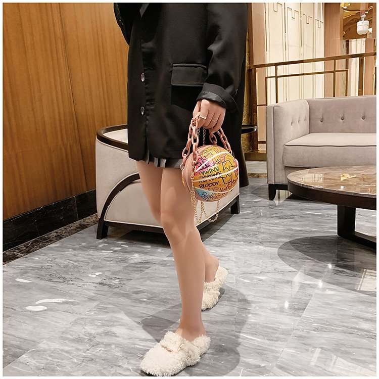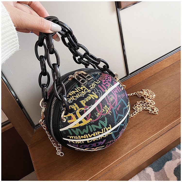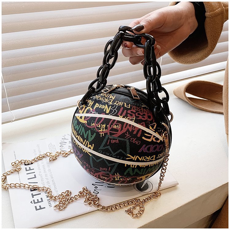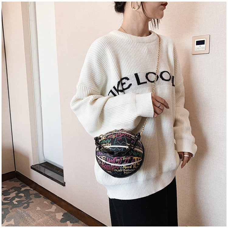 Bolso de hombro transfronterizo, tendencia de moda femenina, bolso de baloncesto de graffiti, bolso de mensajero de cadena de letras de calle con personalidad
