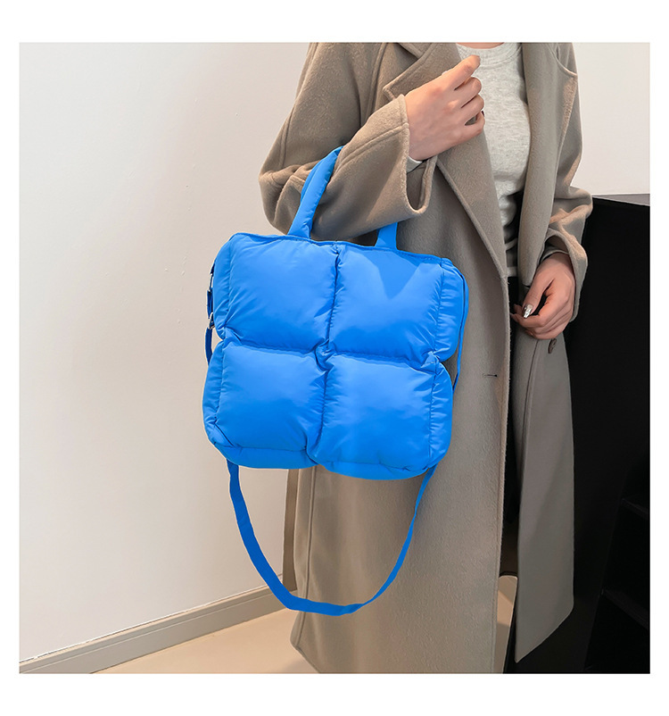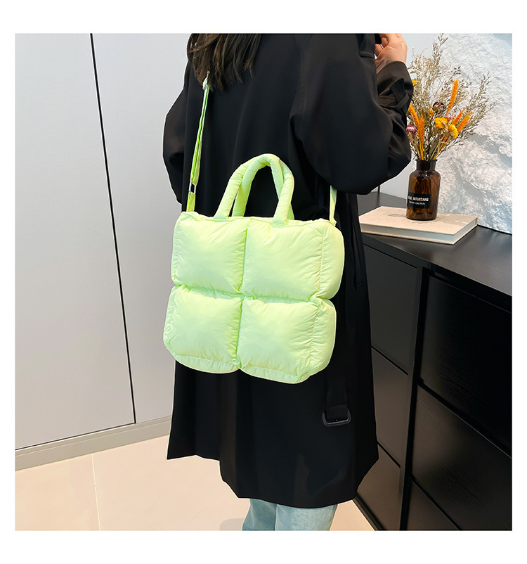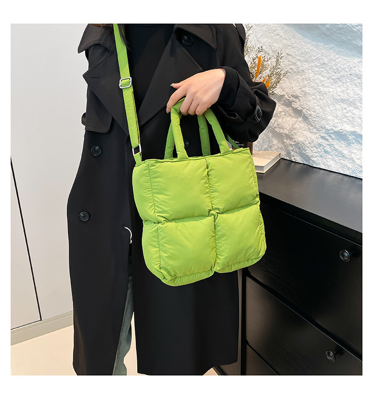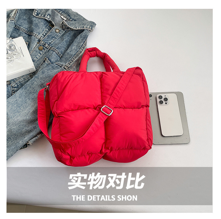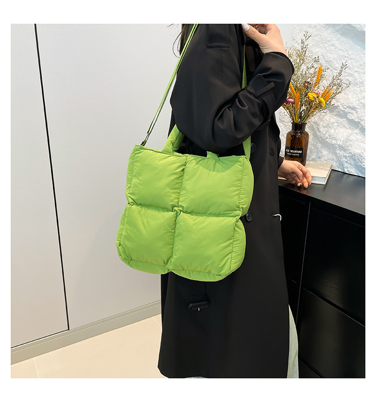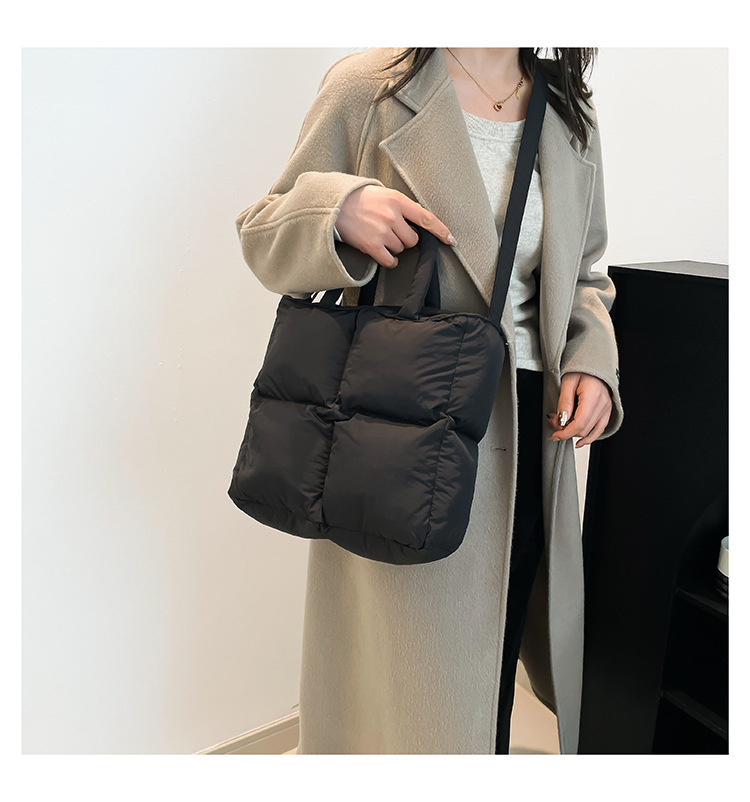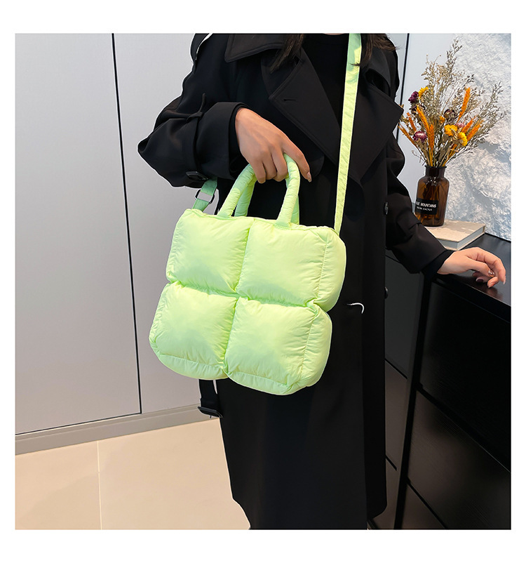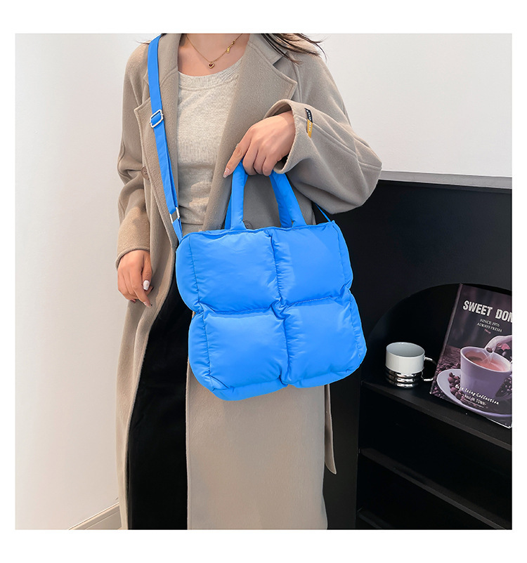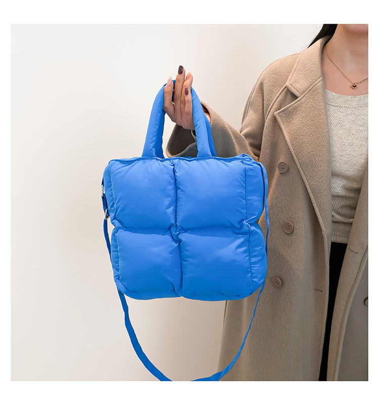 2024 nueva chaqueta de algodón, bolso de plumas, bolso de hombro acolchado, bolso de mensajero, bolso cuadrado pequeño para mujer, bolso pequeño de estilo occidental ligero