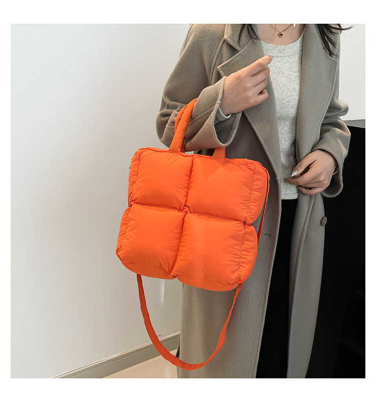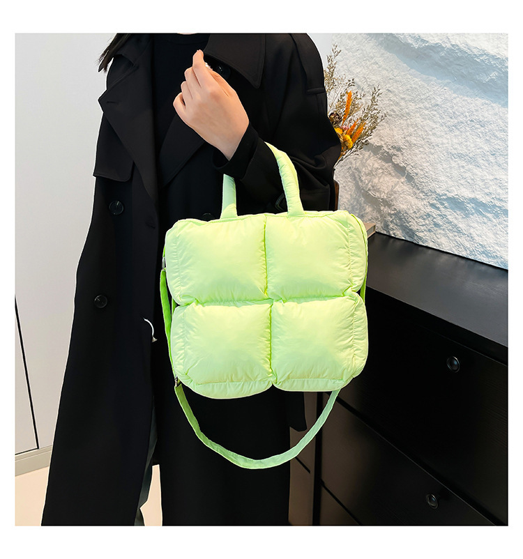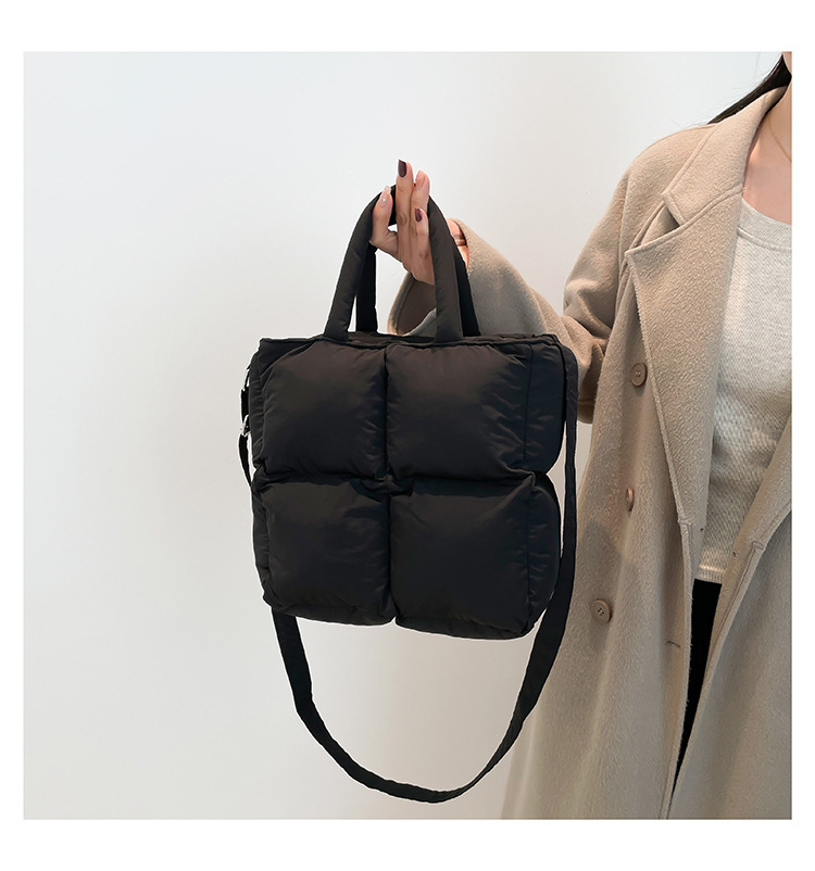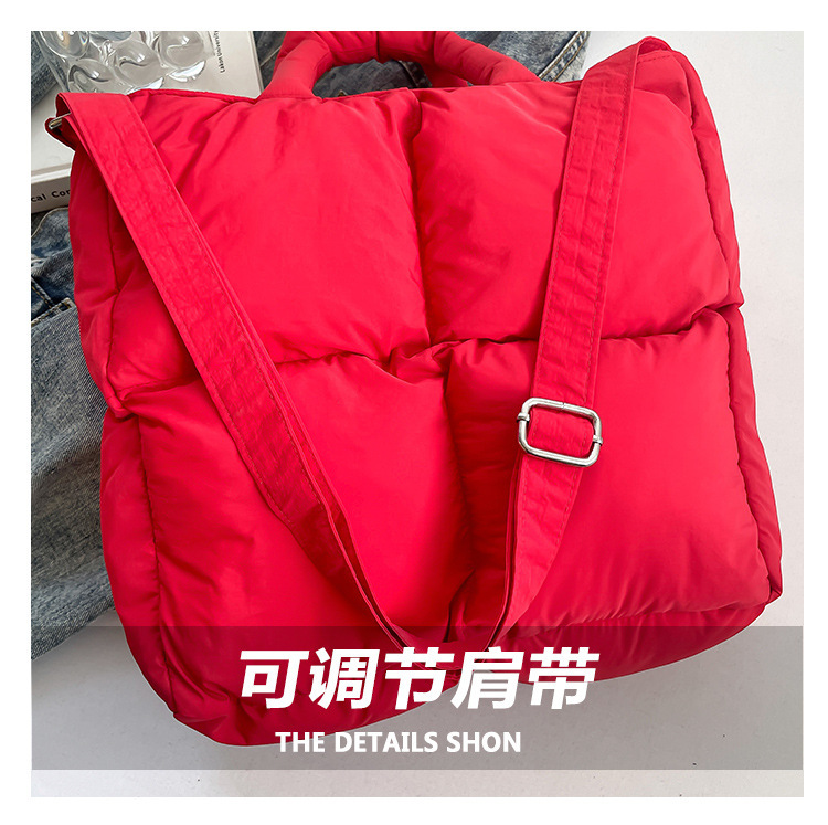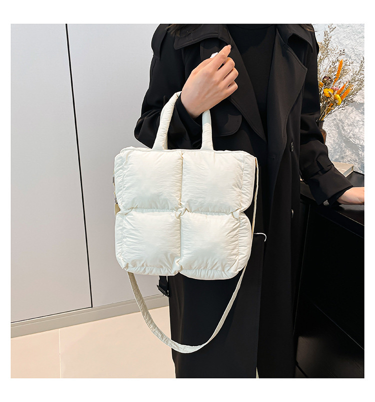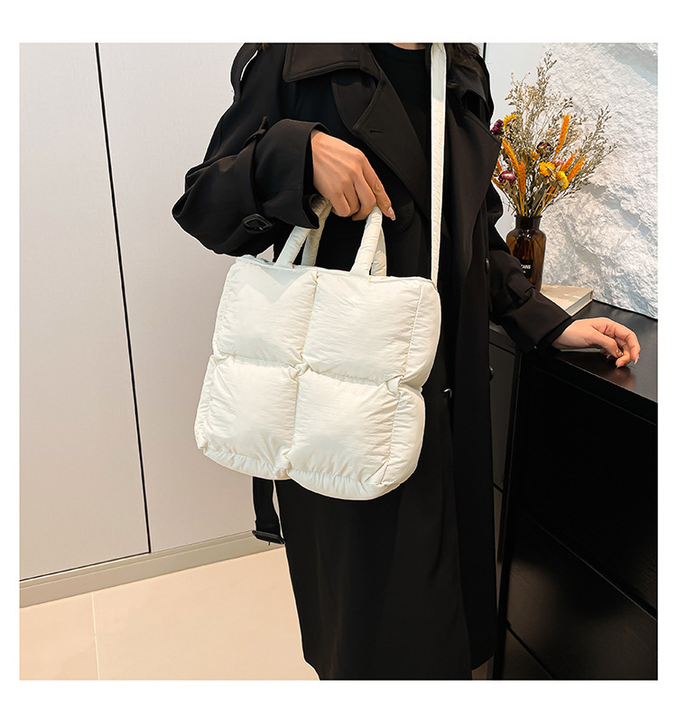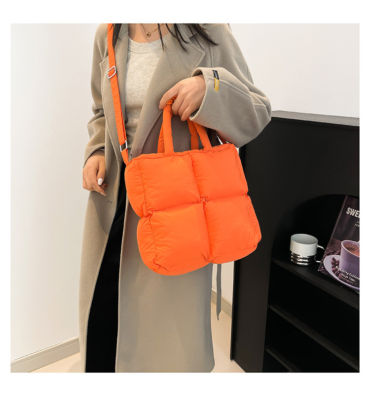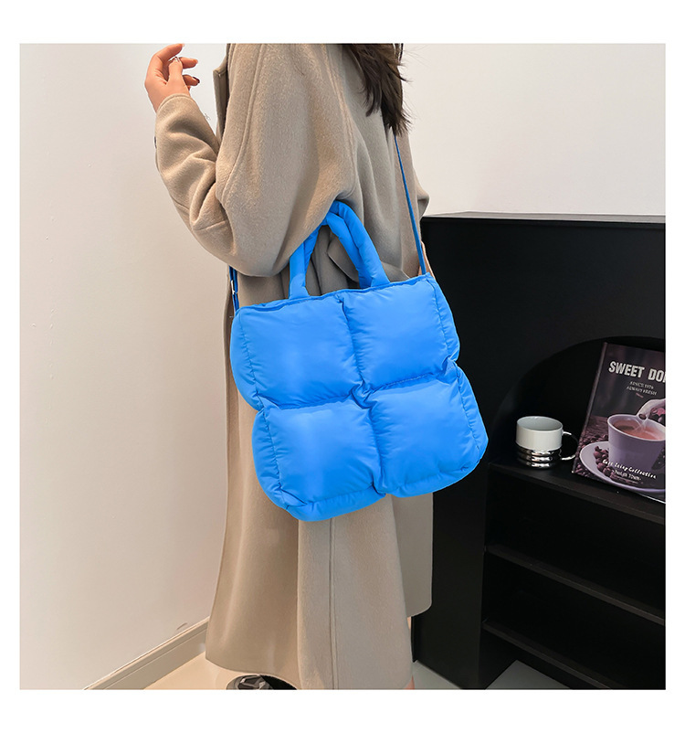2024 nueva chaqueta de algodón, bolso de plumas, bolso de hombro acolchado, bolso de mensajero, bolso cuadrado pequeño para mujer, bolso pequeño de estilo occidental ligero