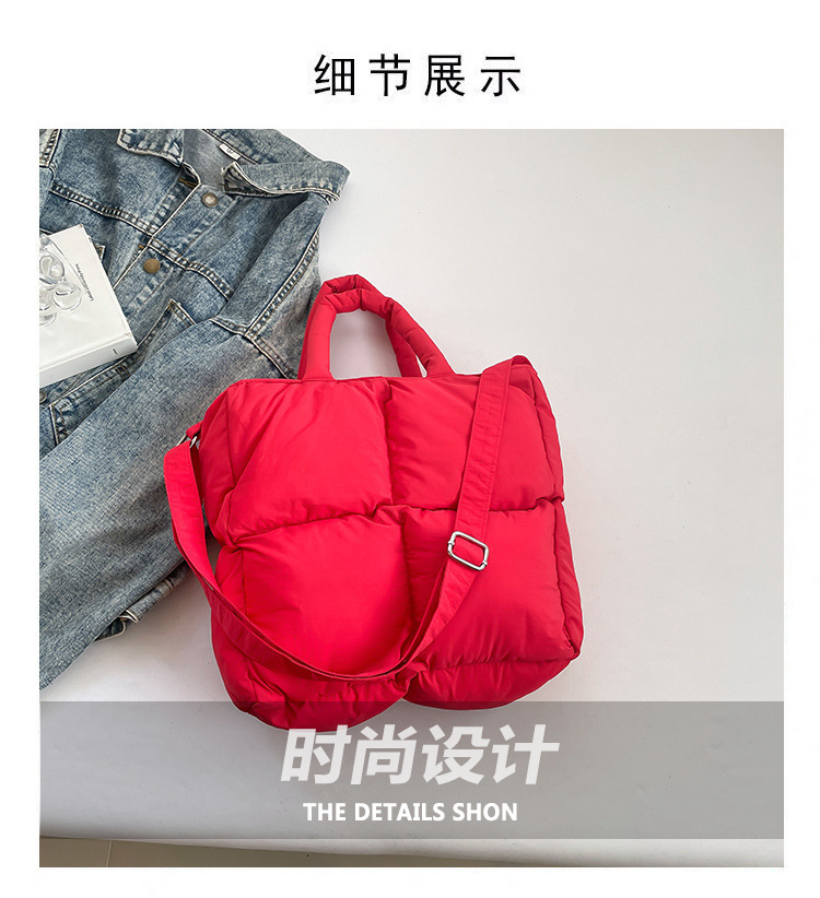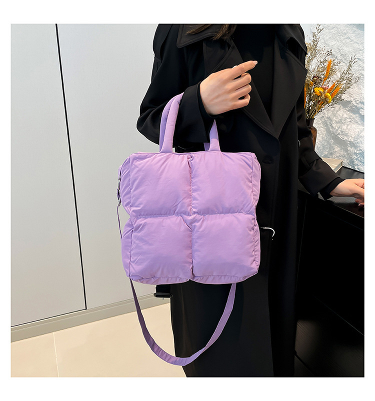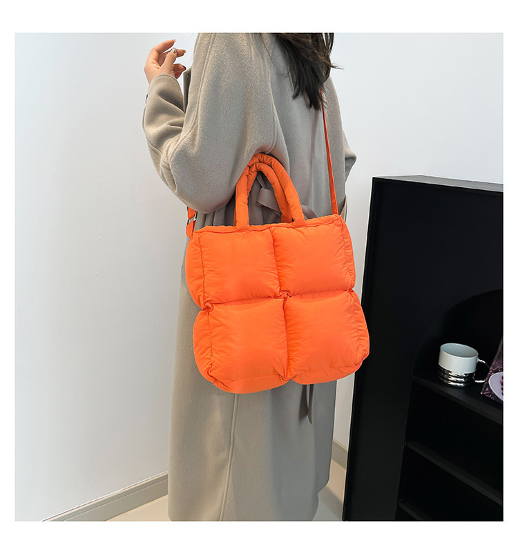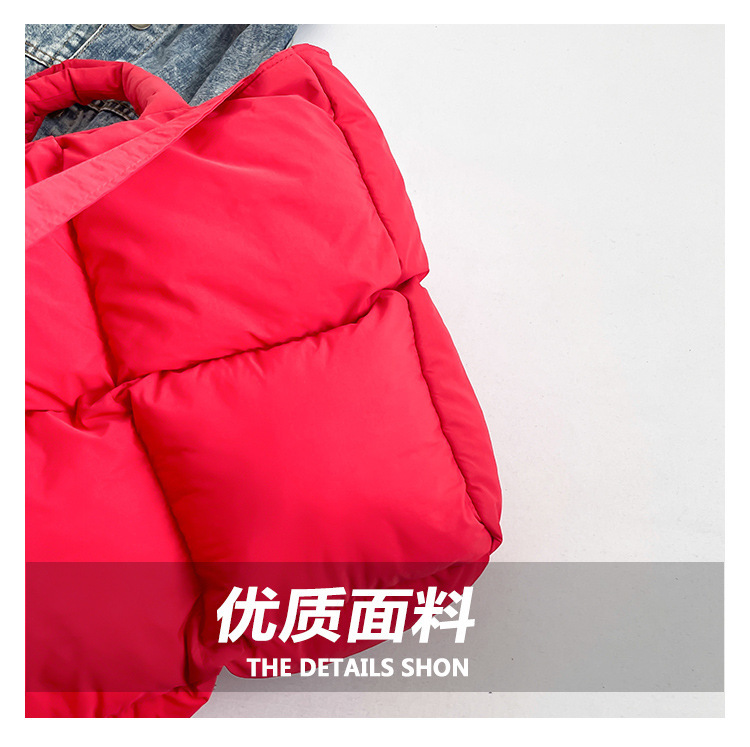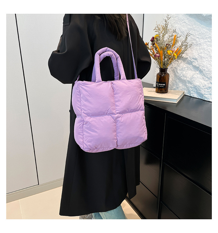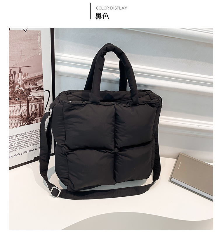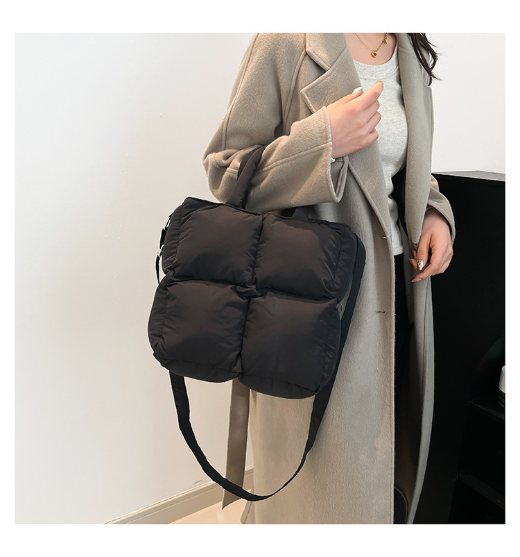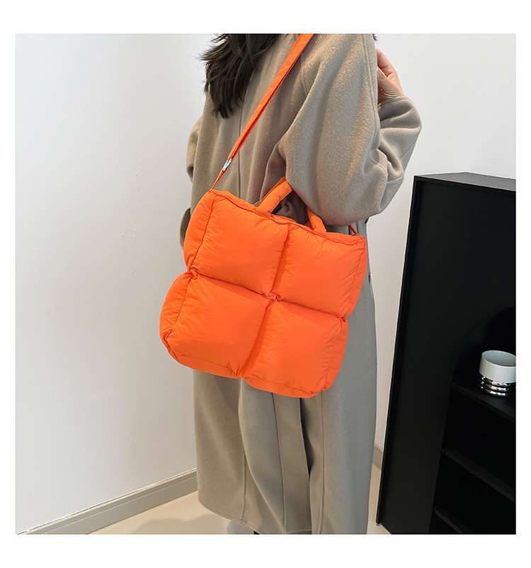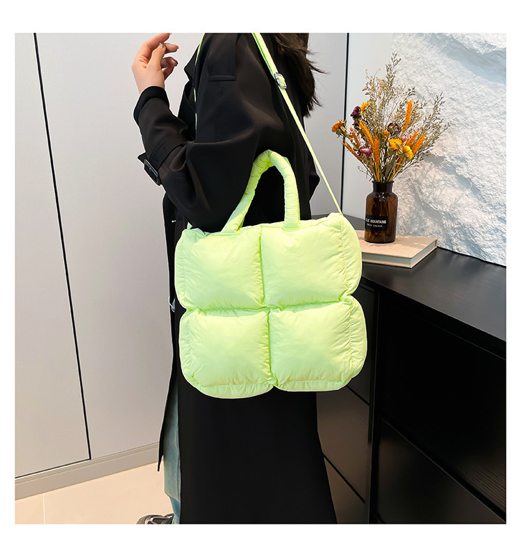 2024 nueva chaqueta de algodón, bolso de plumas, bolso de hombro acolchado, bolso de mensajero, bolso cuadrado pequeño para mujer, bolso pequeño de estilo occidental ligero