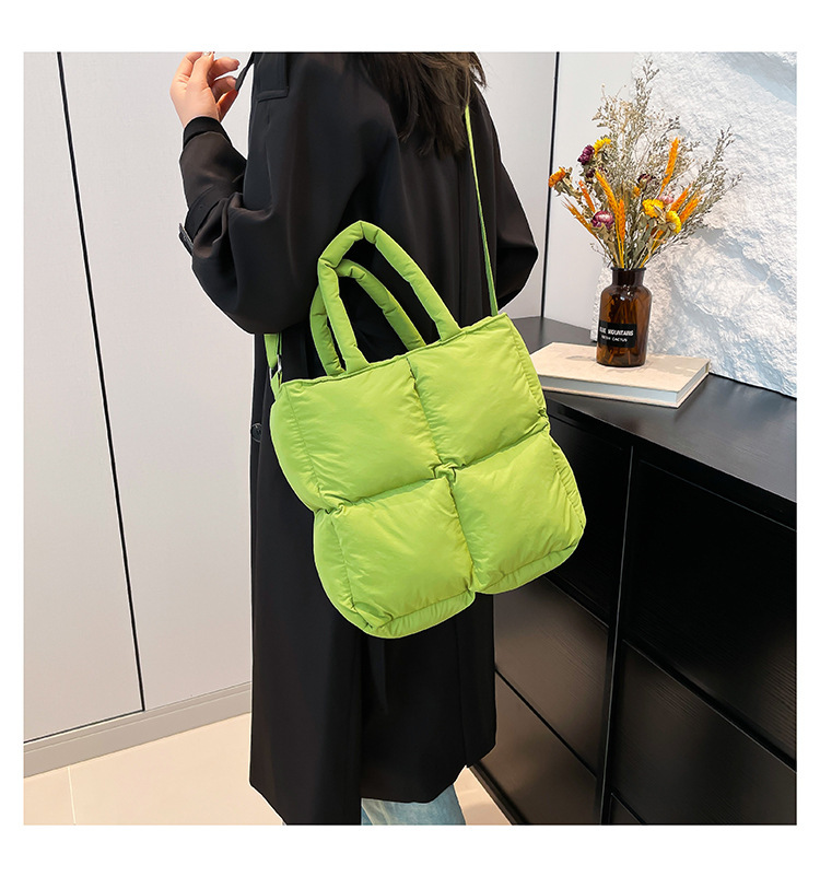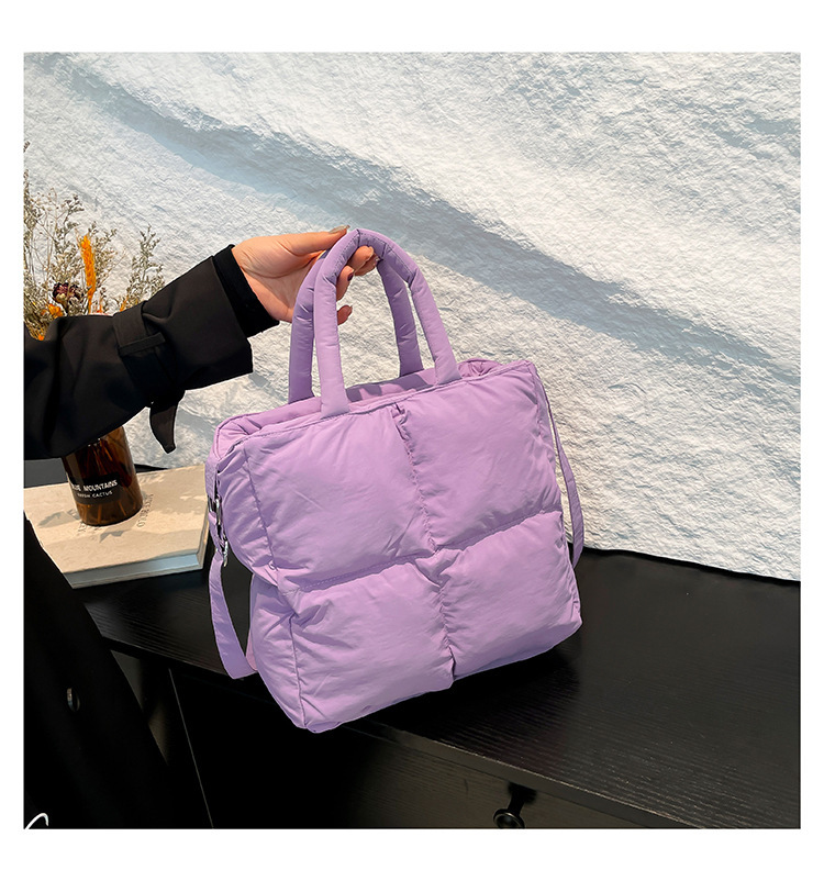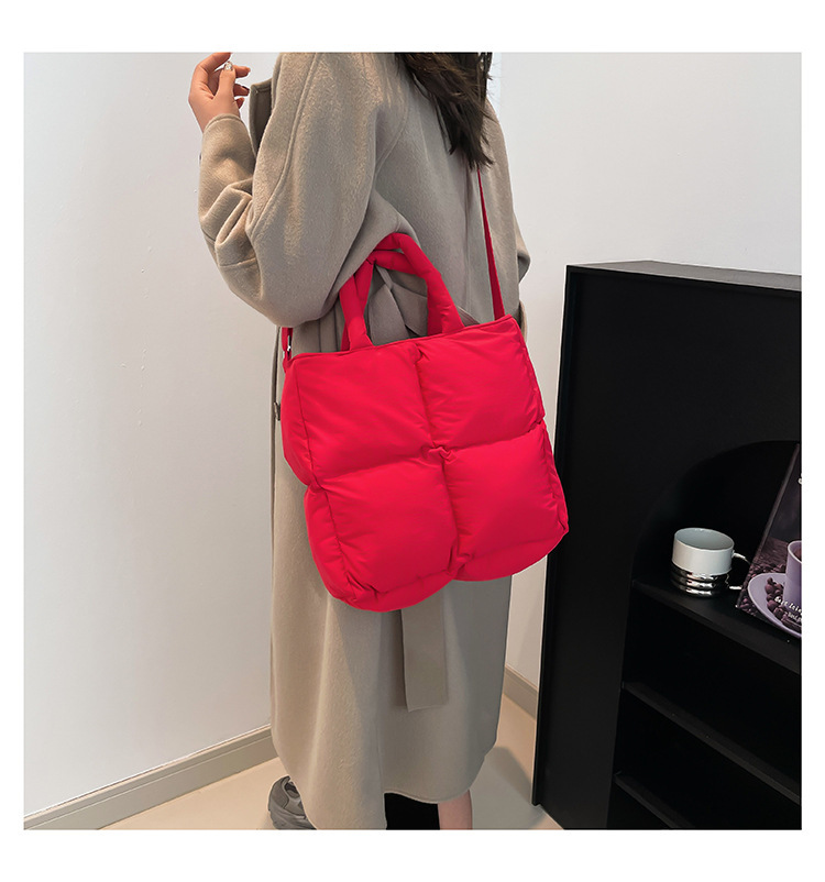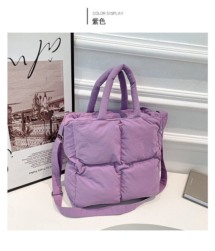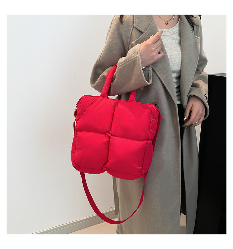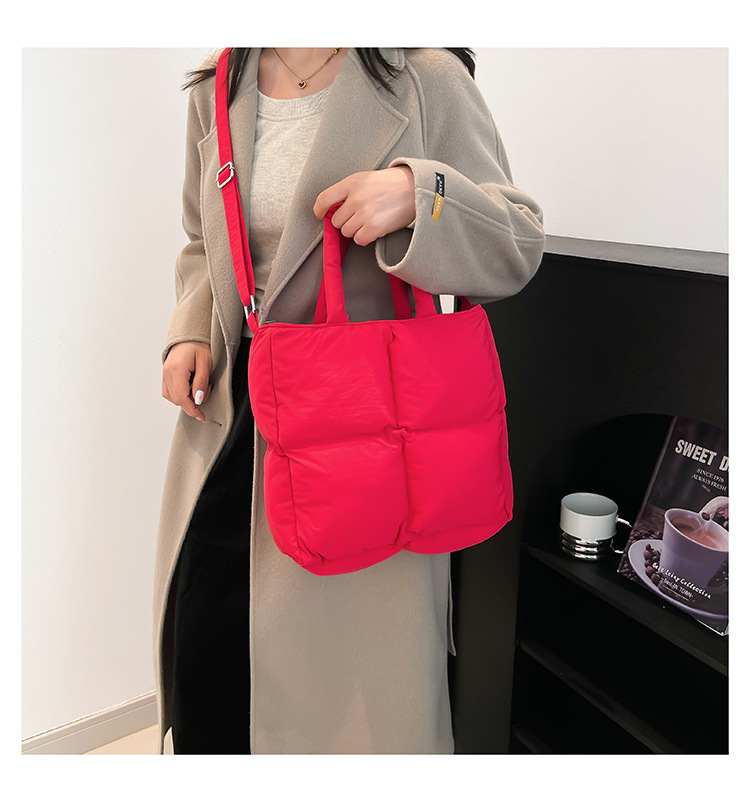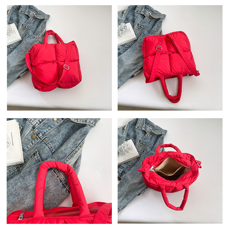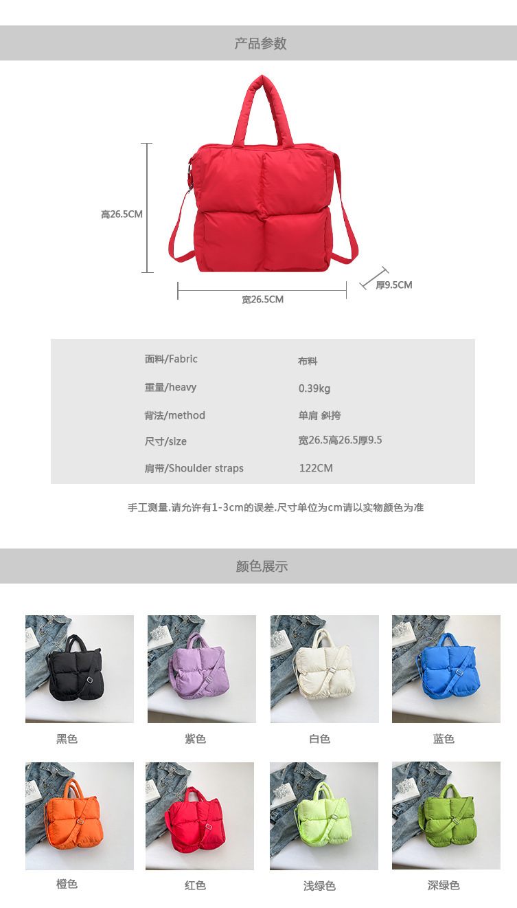2024 nueva chaqueta de algodón, bolso de plumas, bolso de hombro acolchado, bolso de mensajero, bolso cuadrado pequeño para mujer, bolso pequeño de estilo occidental ligero