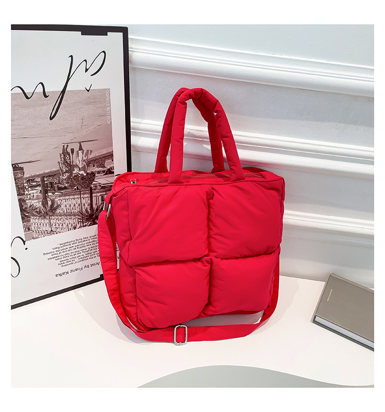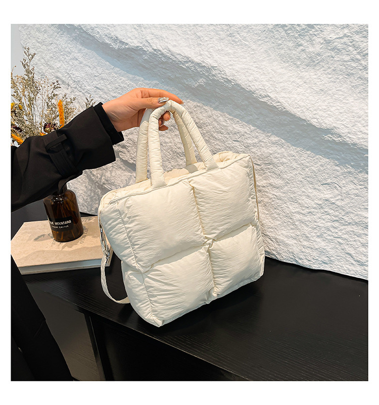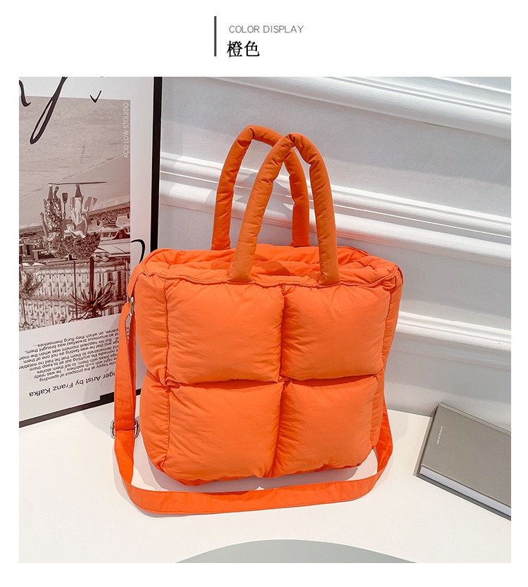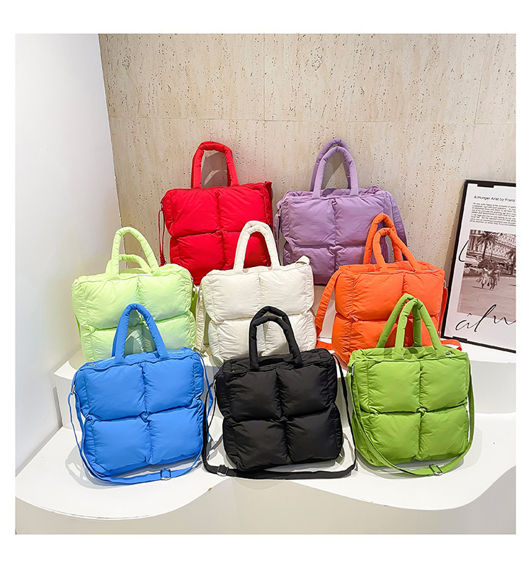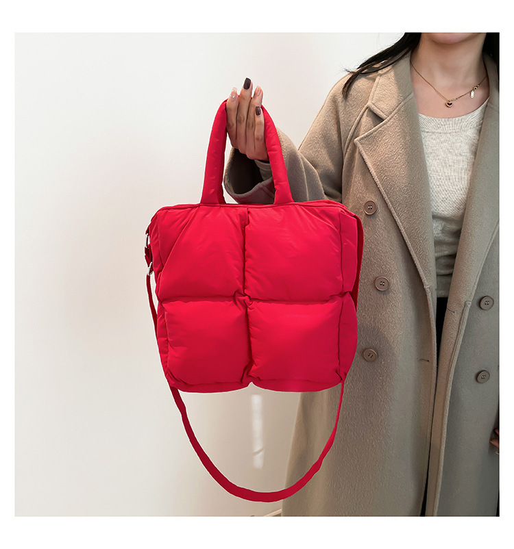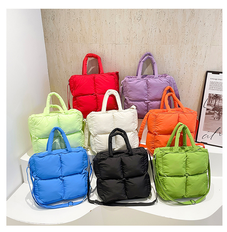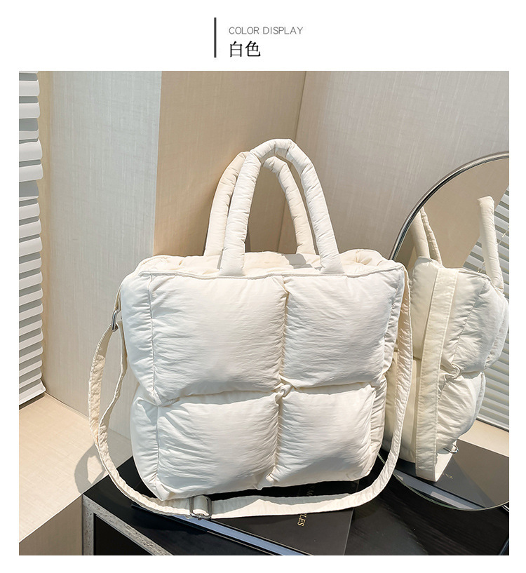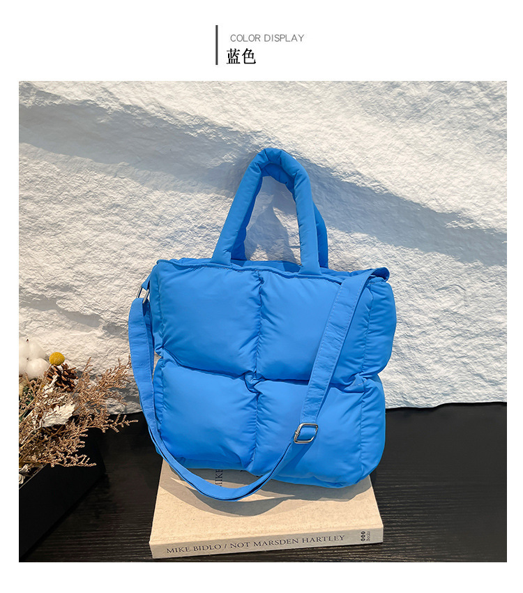 2024 nueva chaqueta de algodón, bolso de plumas, bolso de hombro acolchado, bolso de mensajero, bolso cuadrado pequeño para mujer, bolso pequeño de estilo occidental ligero
