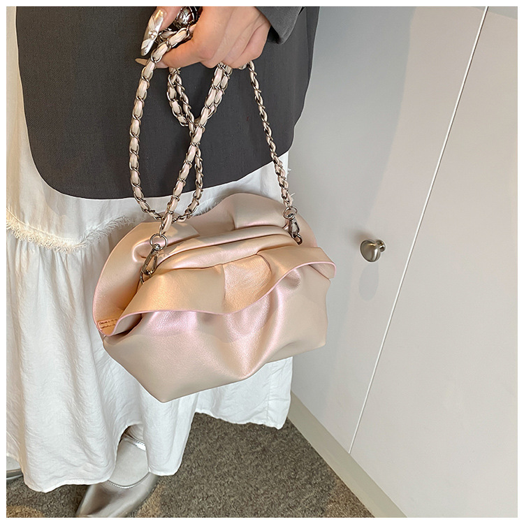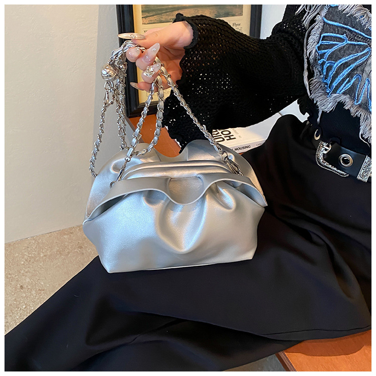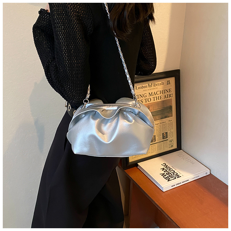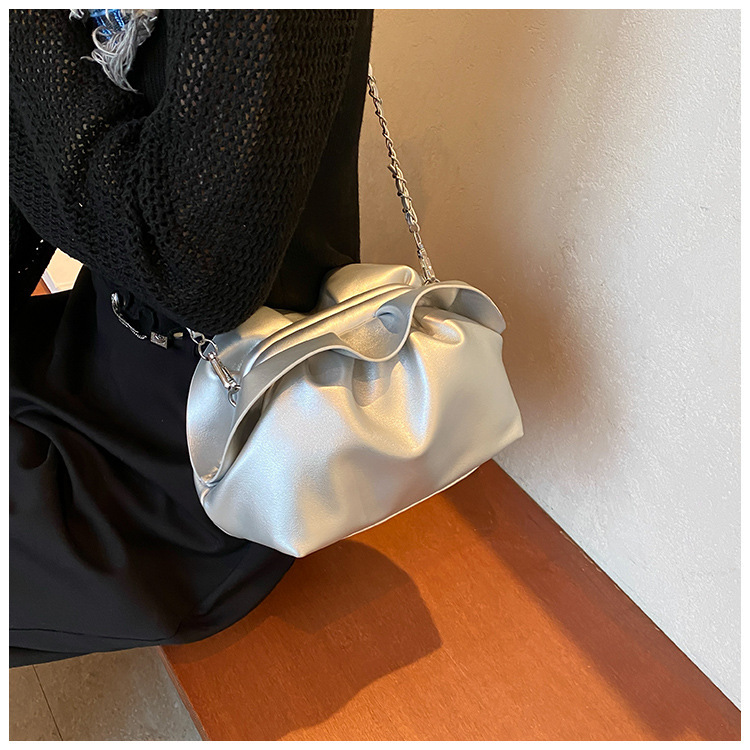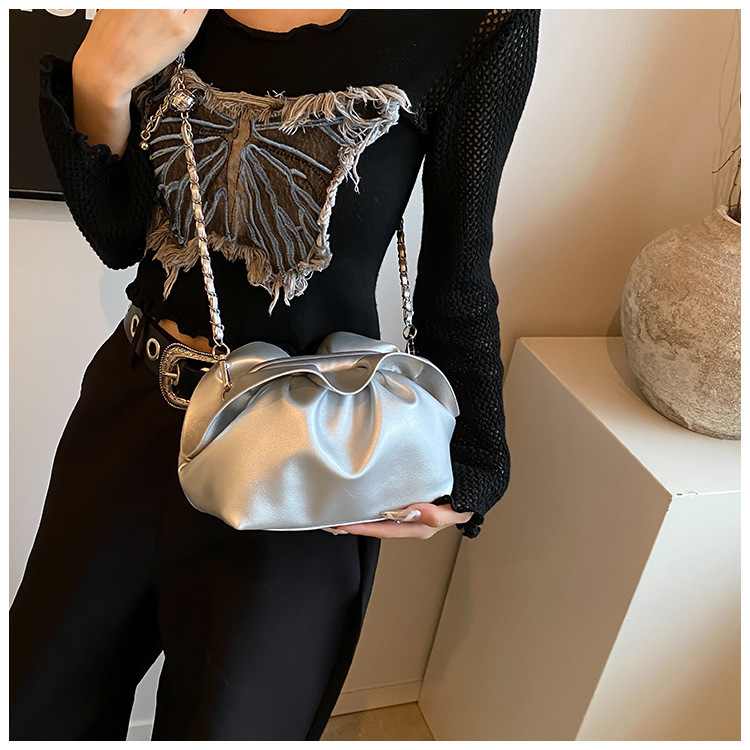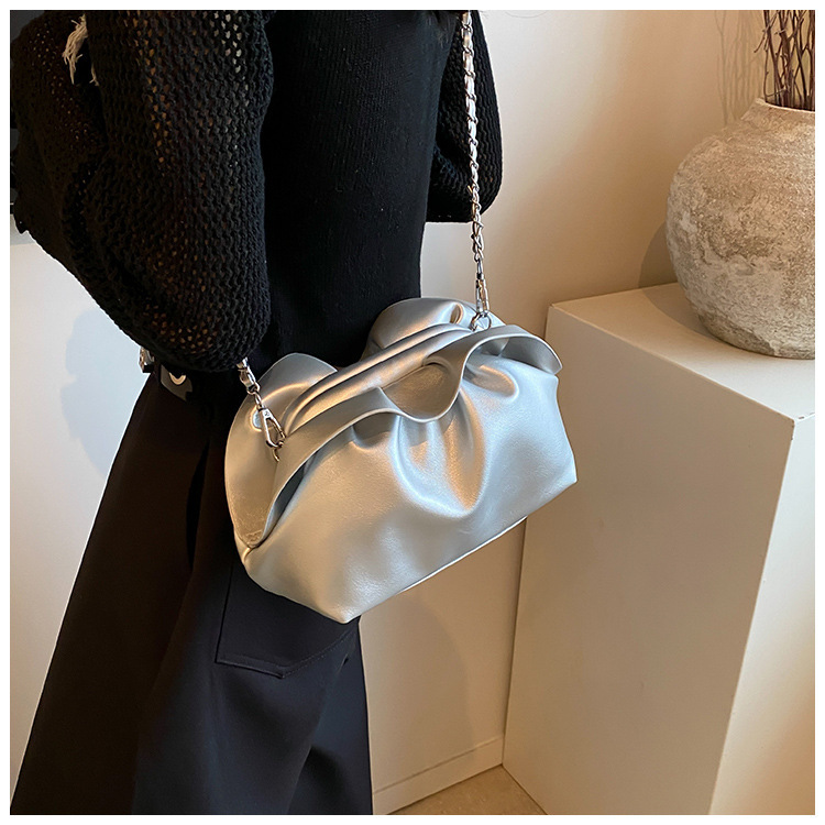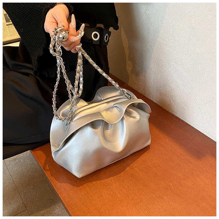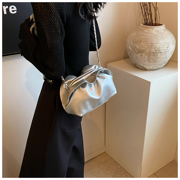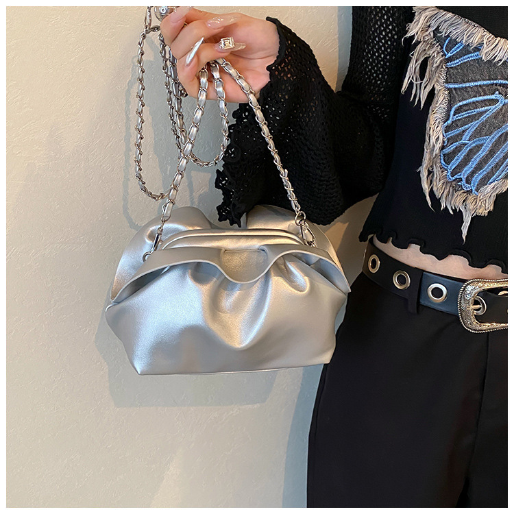 Bolso de axila de nube de boca de clip de pliegue femenino 2024 nuevo bandolera de nicho bolso de axila de cadena de todo fósforo de moda coreana