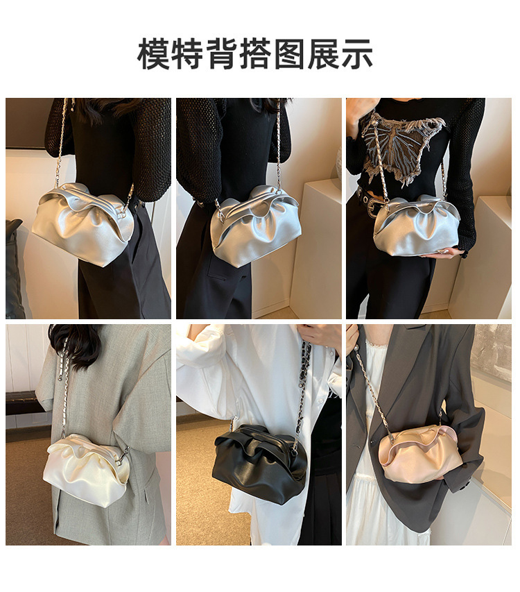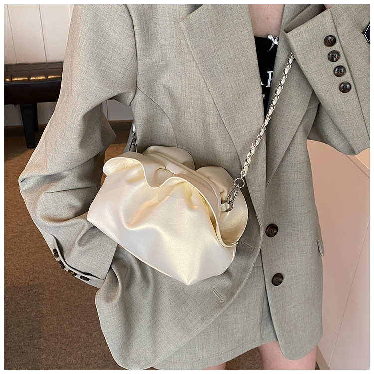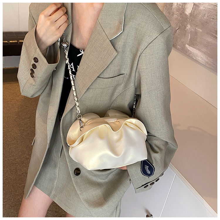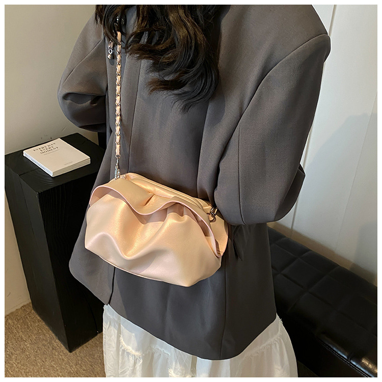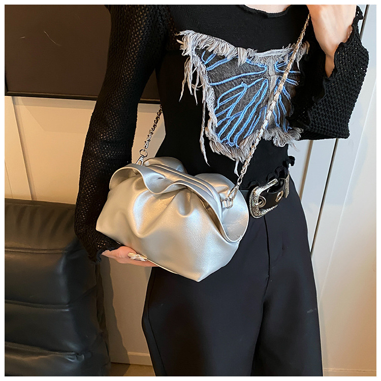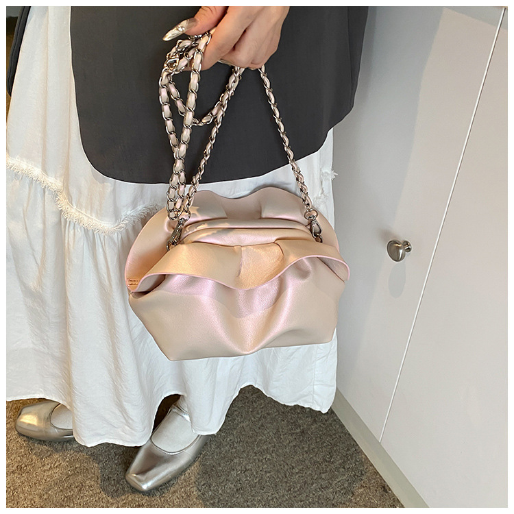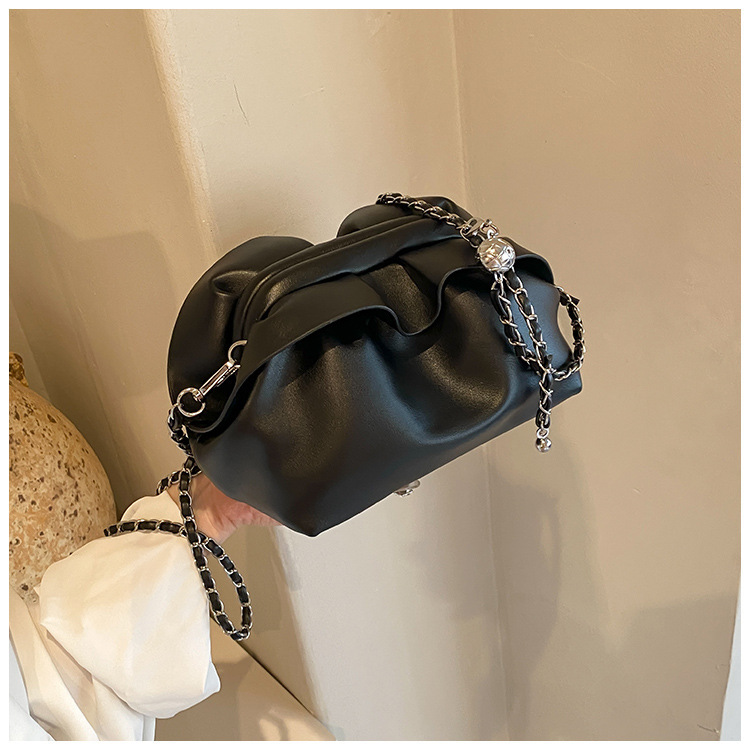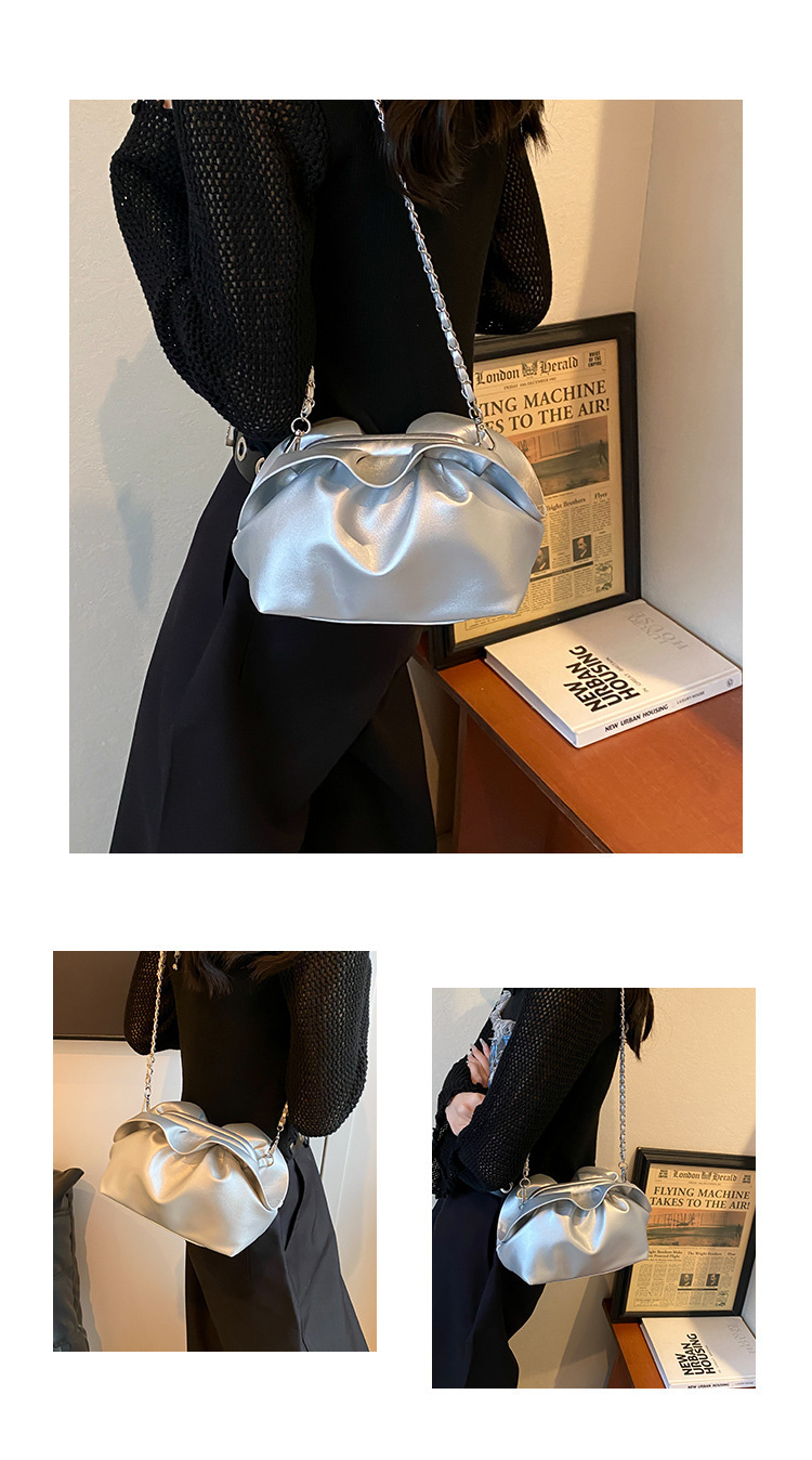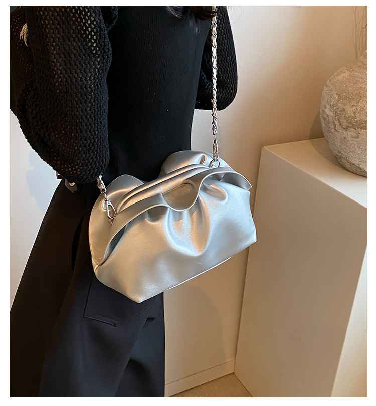 Bolso de axila de nube de boca de clip de pliegue femenino 2024 nuevo bandolera de nicho bolso de axila de cadena de todo fósforo de moda coreana