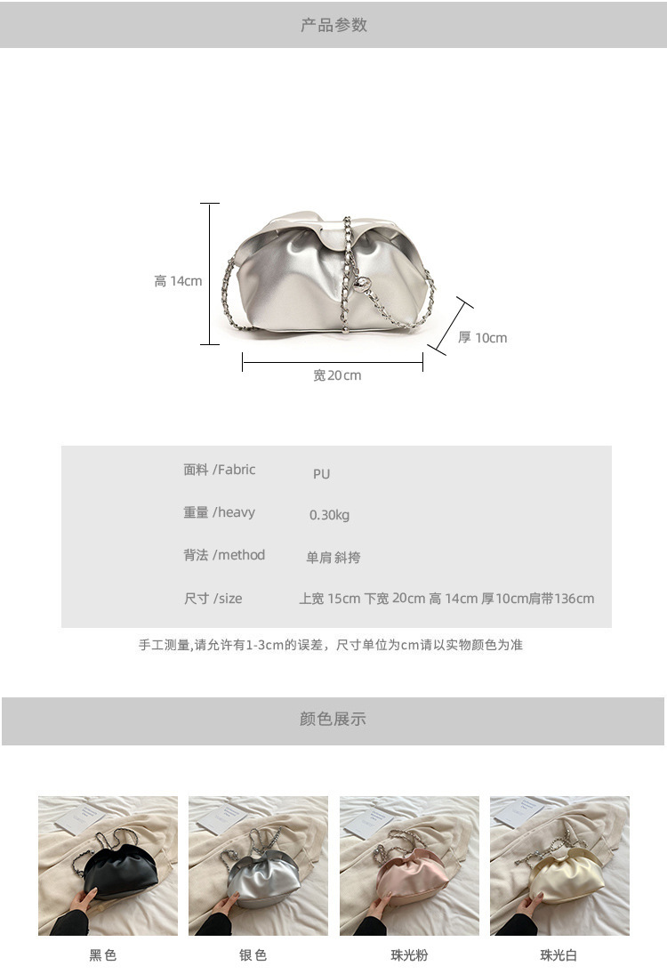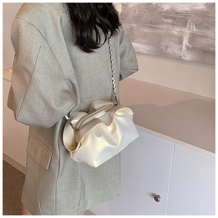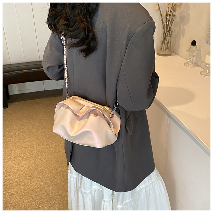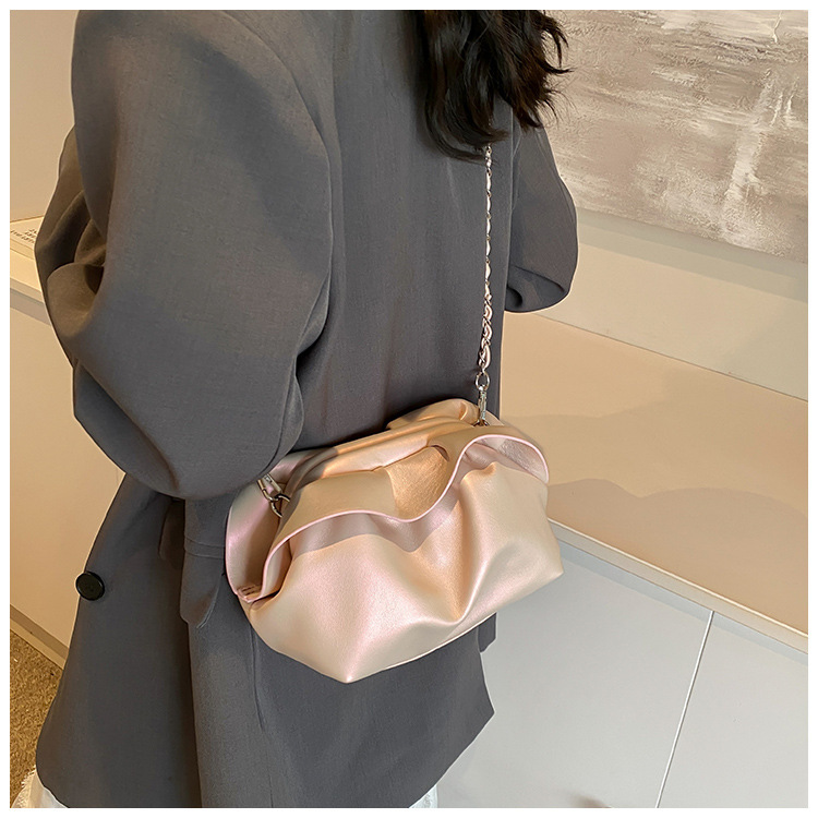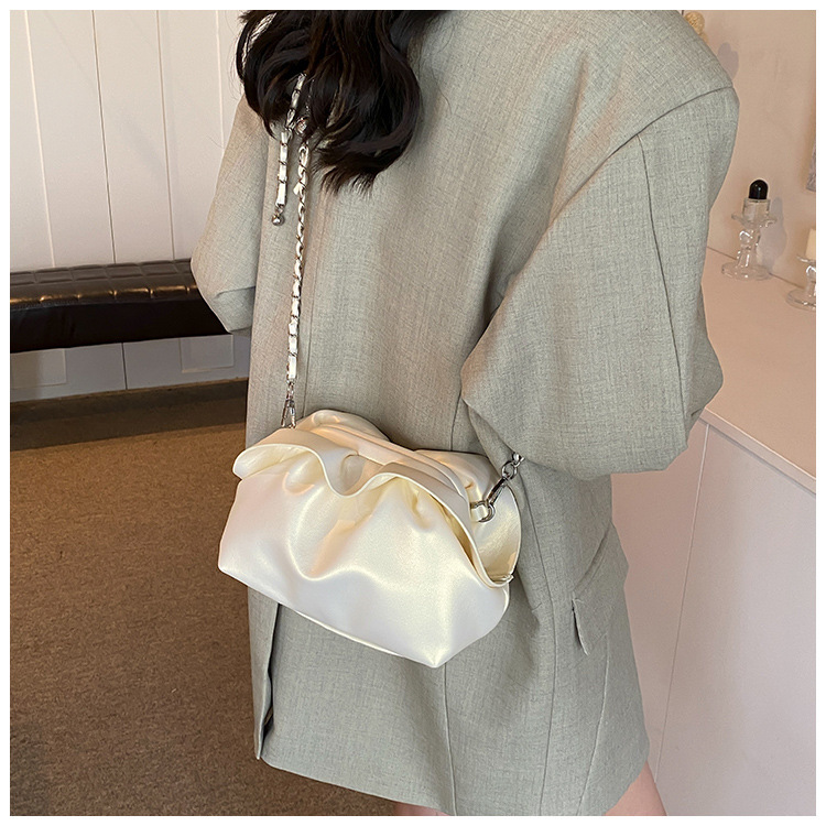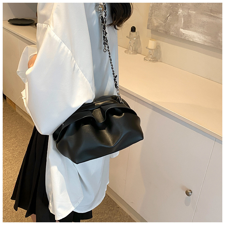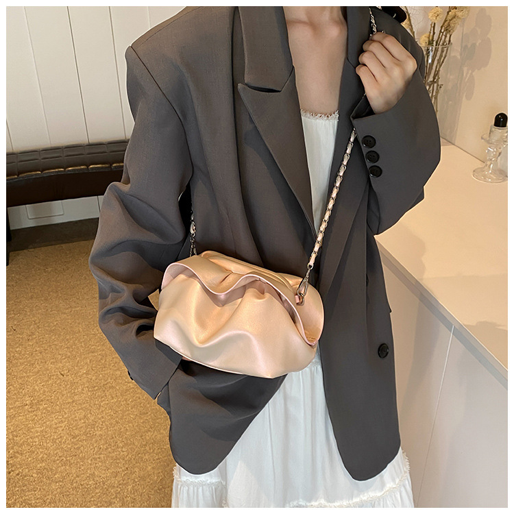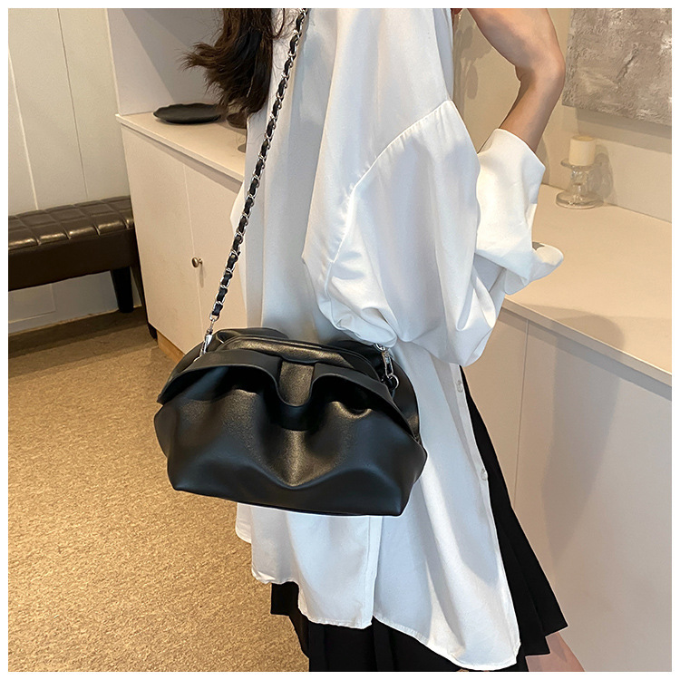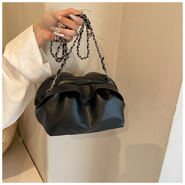 Bolso de axila de nube de boca de clip de pliegue femenino 2024 nuevo bandolera de nicho bolso de axila de cadena de todo fósforo de moda coreana