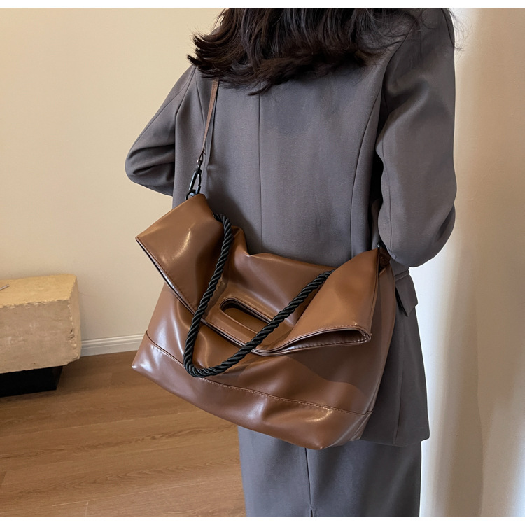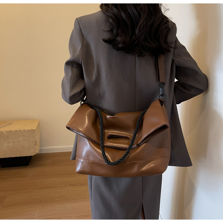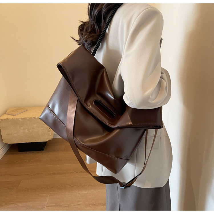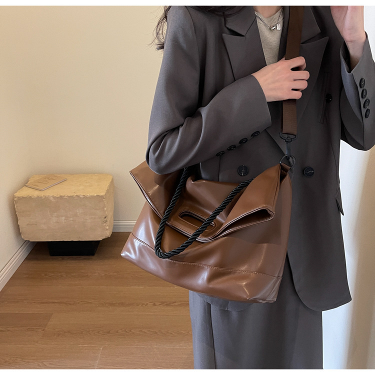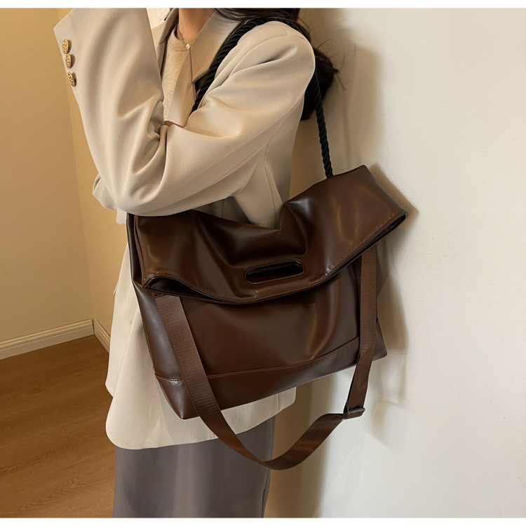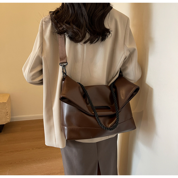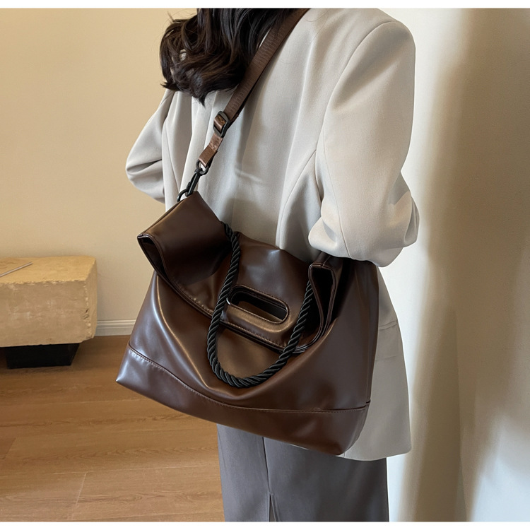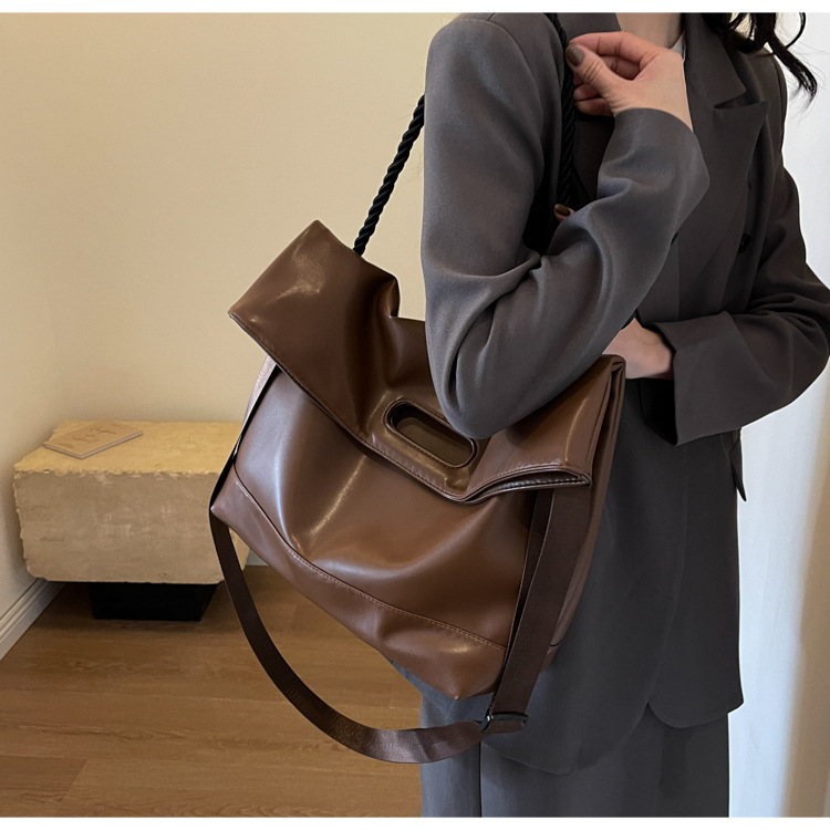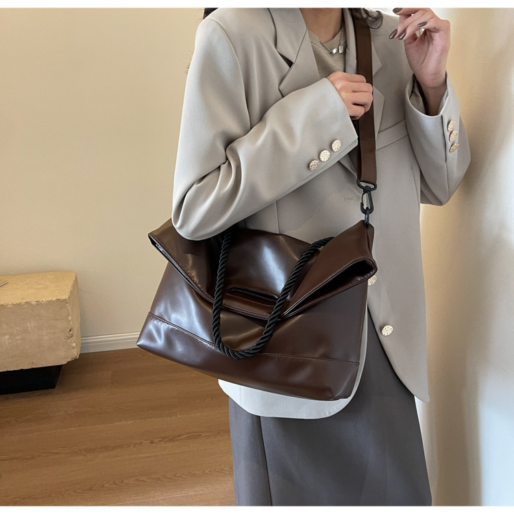 Bolso Tote de viajero de cuero suave marrón retro simple para mujer 2024 bolso de oreja plegable de gran capacidad Bolso bandolera de estilo occidental para mujer