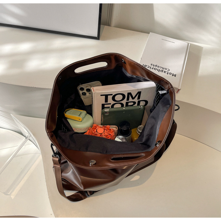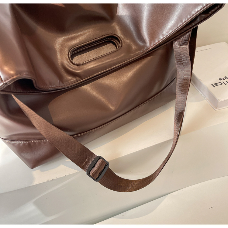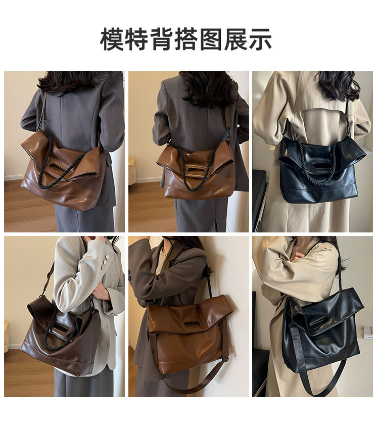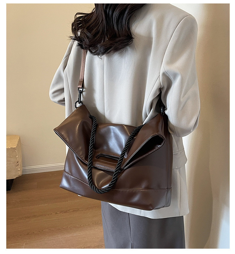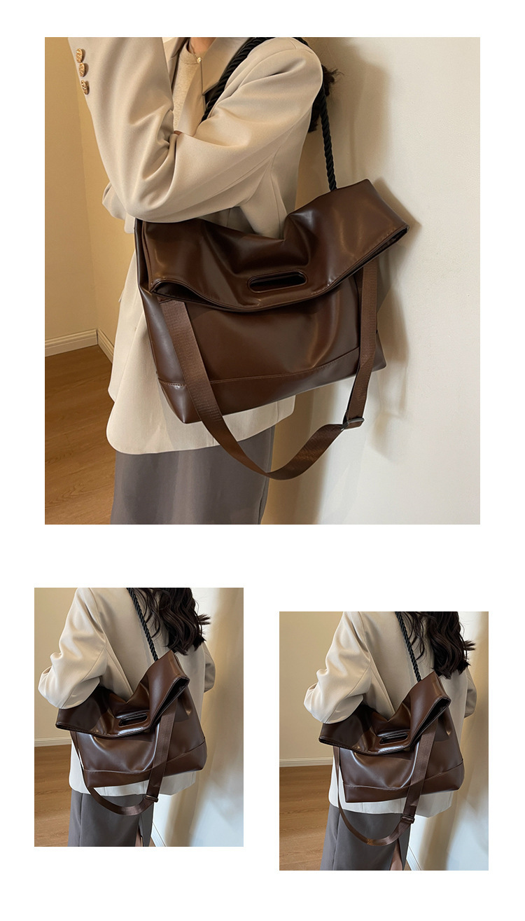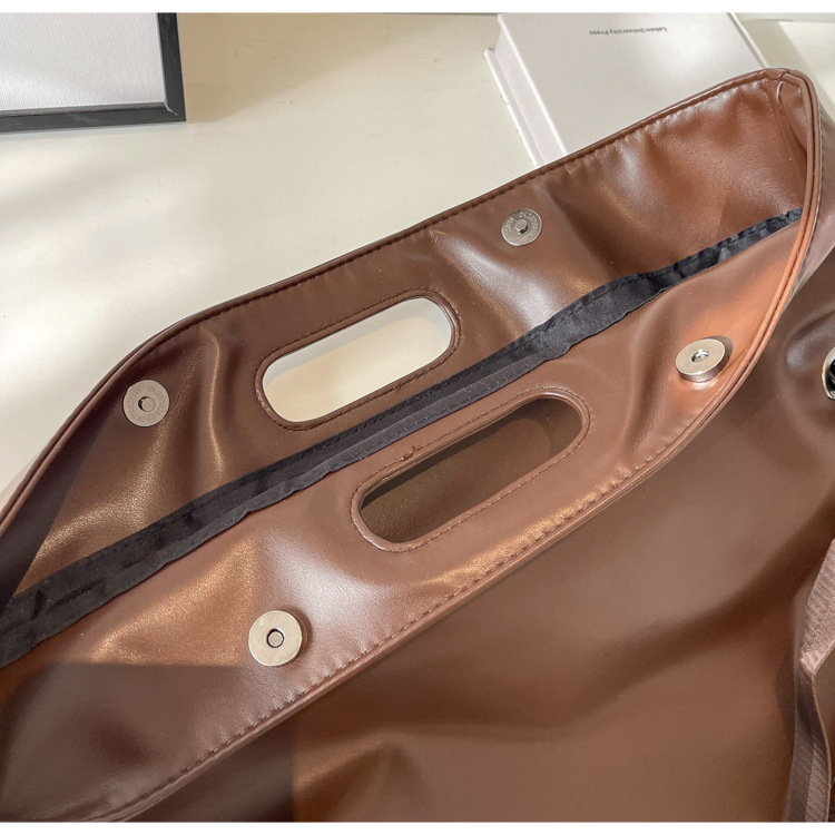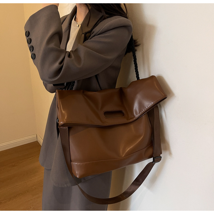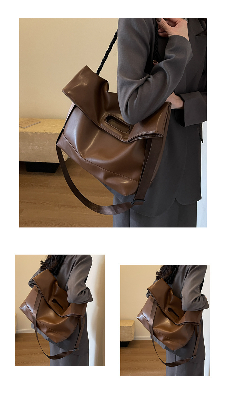 Bolso Tote de viajero de cuero suave marrón retro simple para mujer 2024 bolso de oreja plegable de gran capacidad Bolso bandolera de estilo occidental para mujer