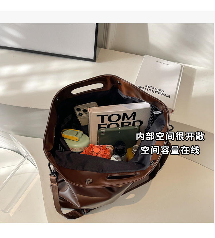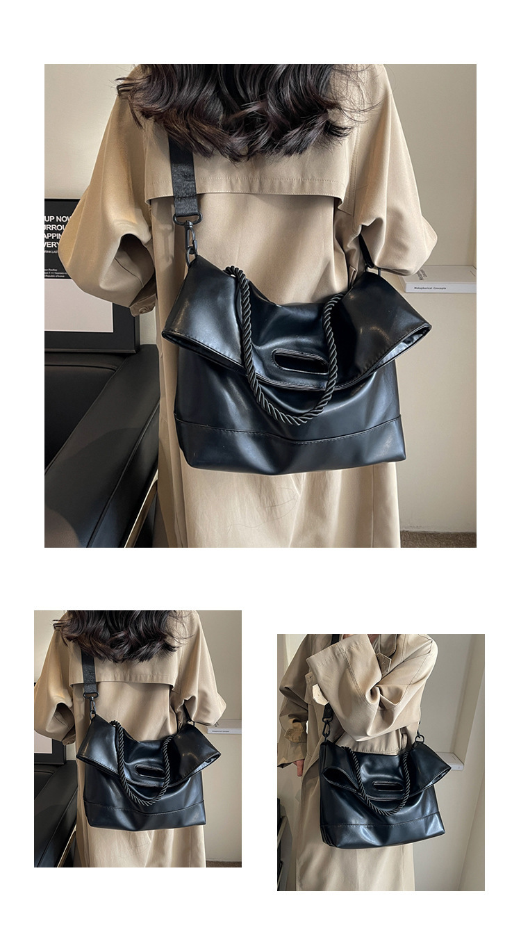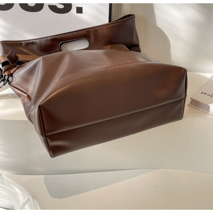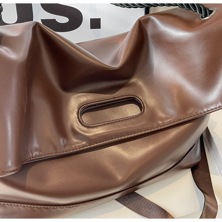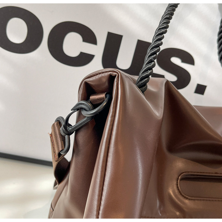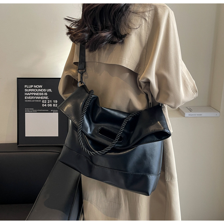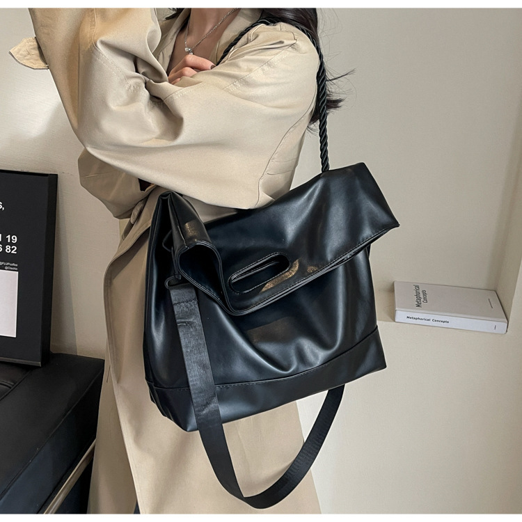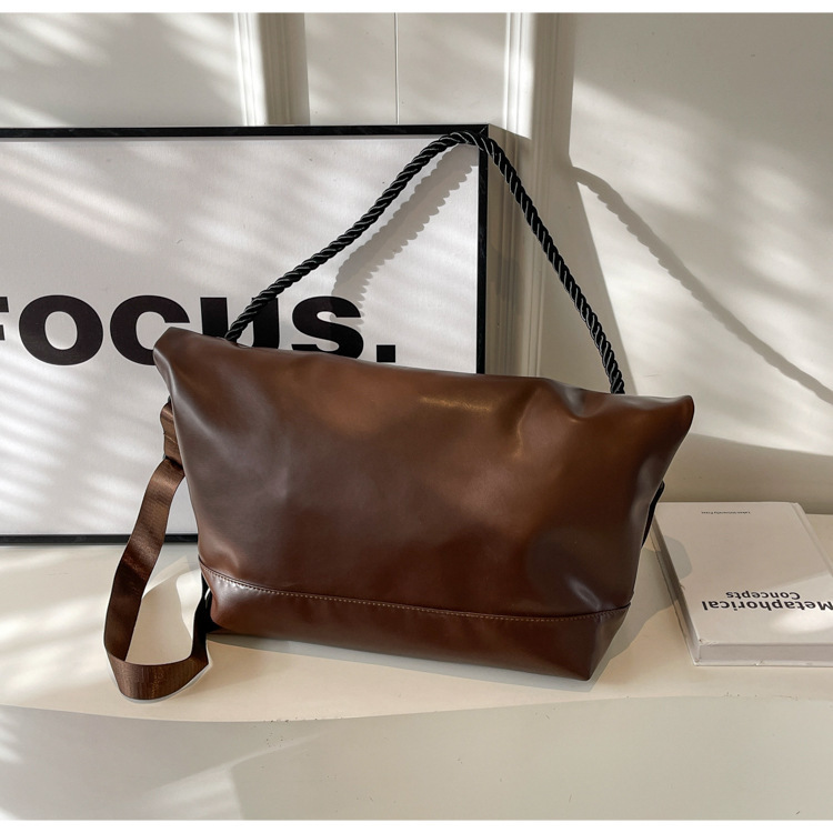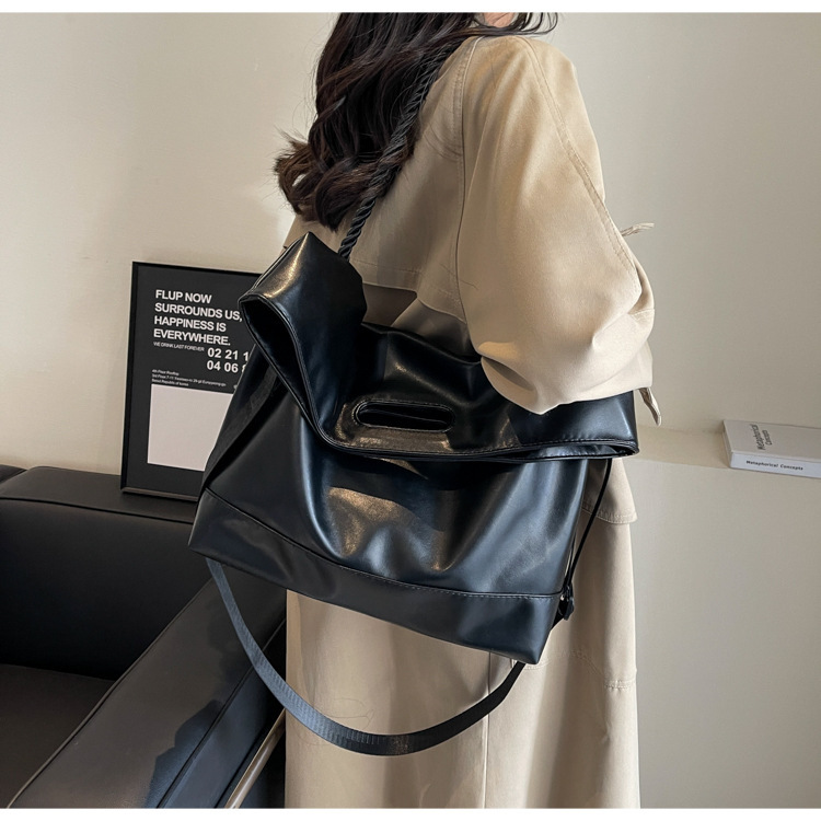 Bolso Tote de viajero de cuero suave marrón retro simple para mujer 2024 bolso de oreja plegable de gran capacidad Bolso bandolera de estilo occidental para mujer