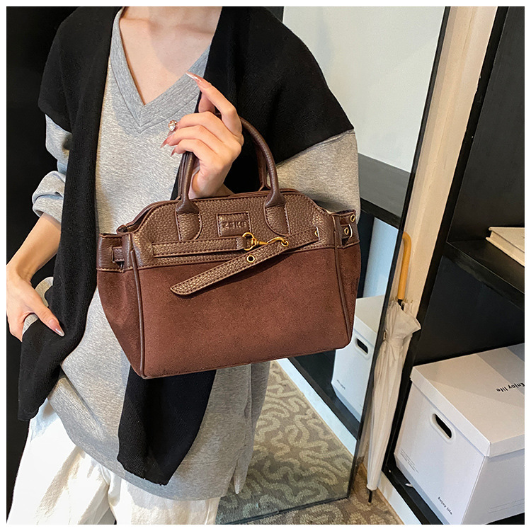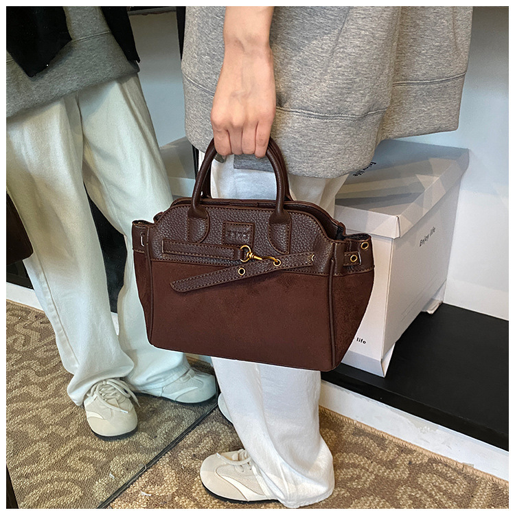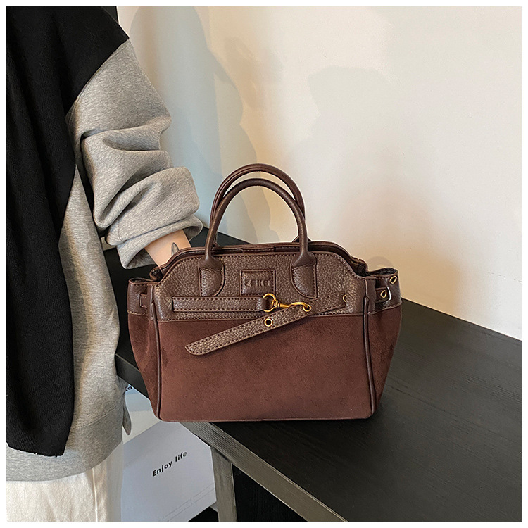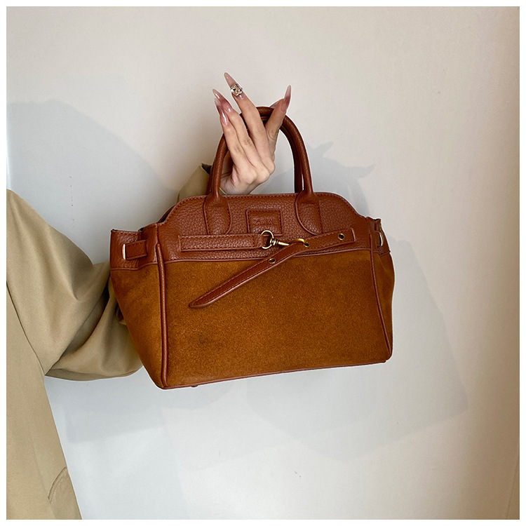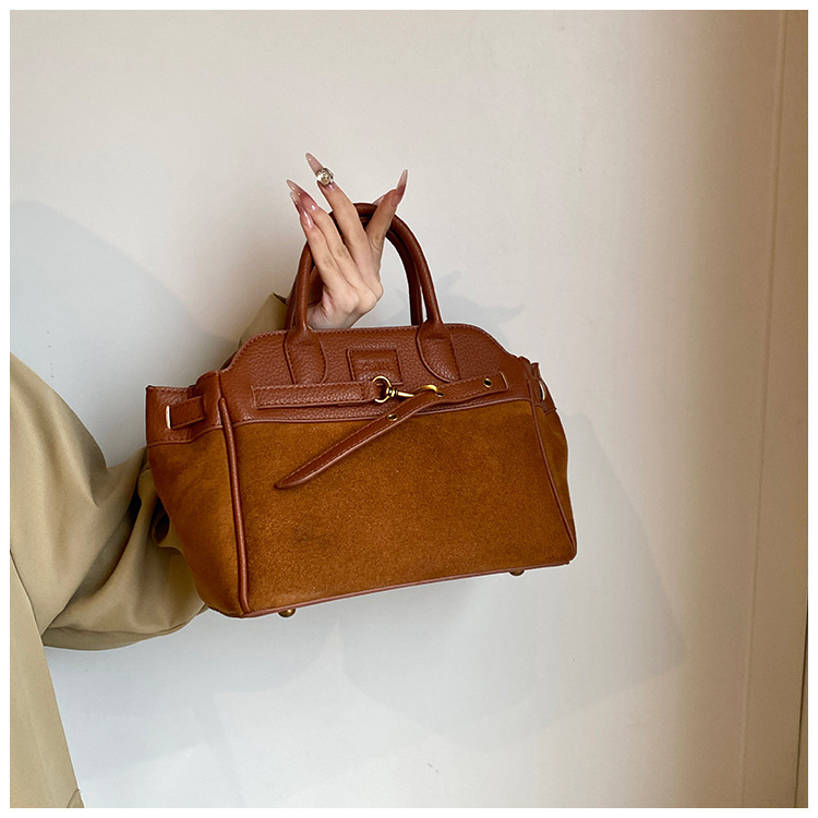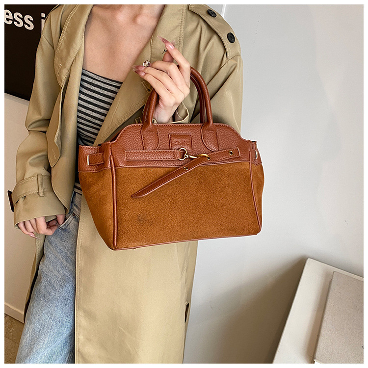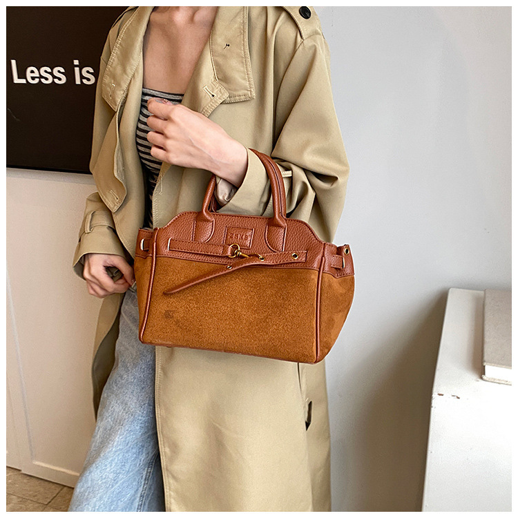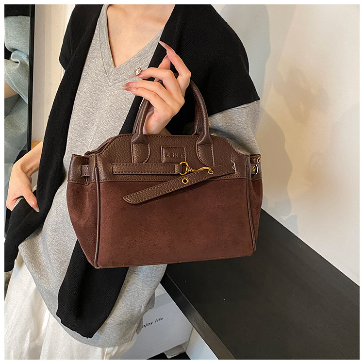 2024 otoño e invierno nuevo estilo retro todo-fósforo gamuza esmerilada hebilla de cinturón bolso de hombro de mano bolso de axila bolso de papel