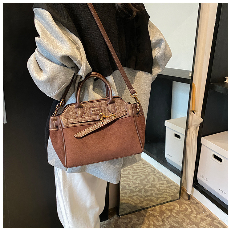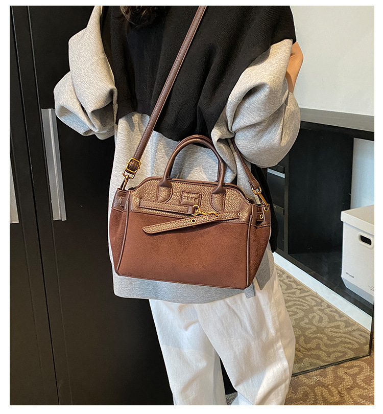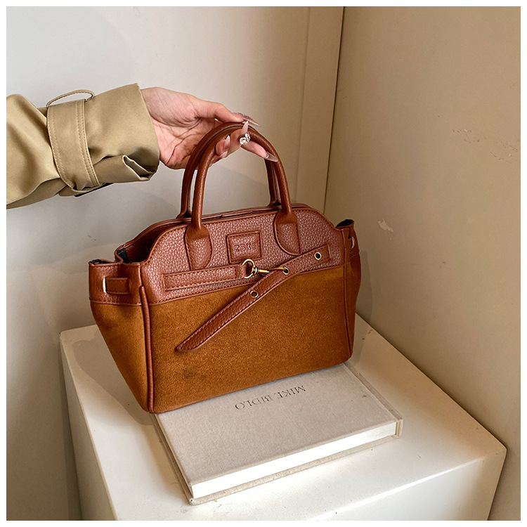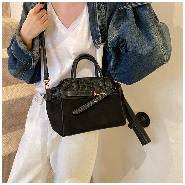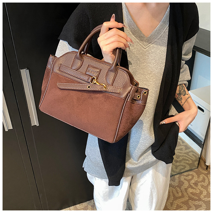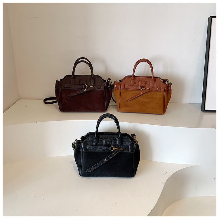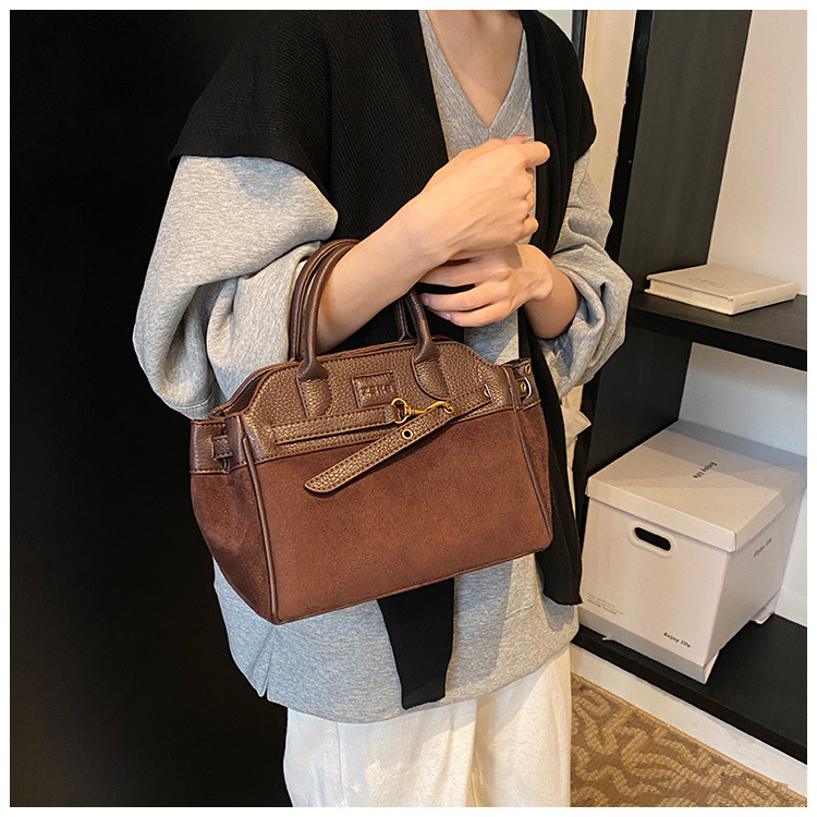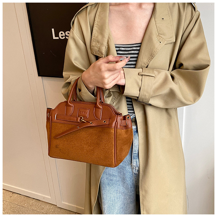 2024 otoño e invierno nuevo estilo retro todo-fósforo gamuza esmerilada hebilla de cinturón bolso de hombro de mano bolso de axila bolso de papel