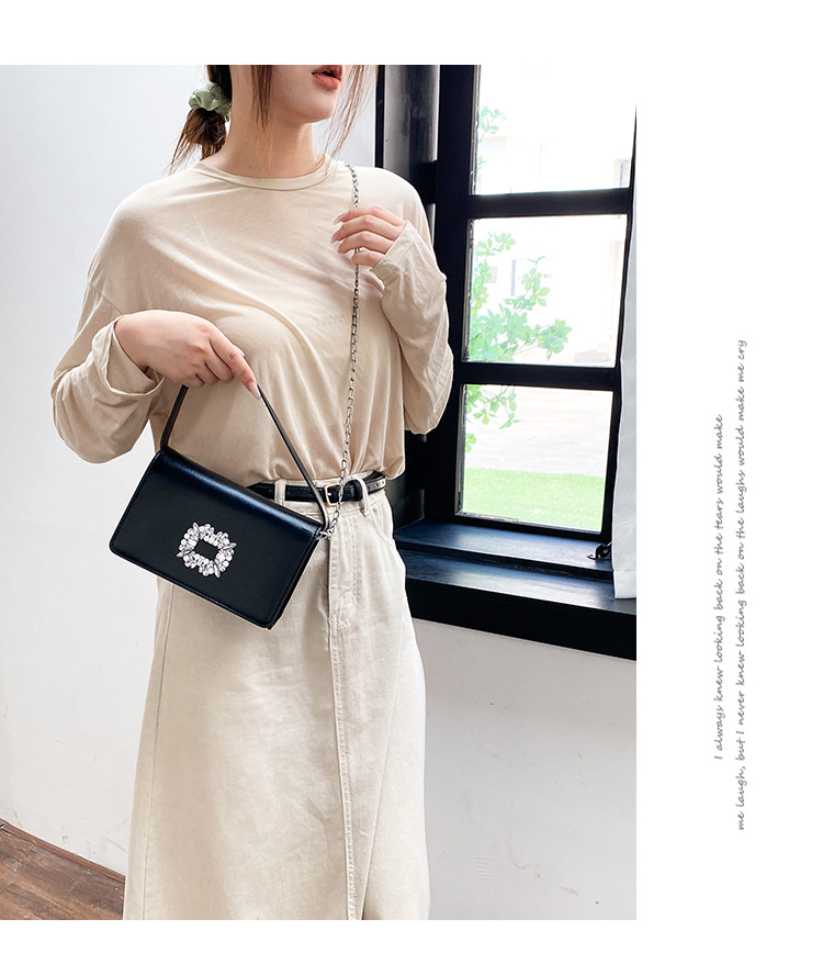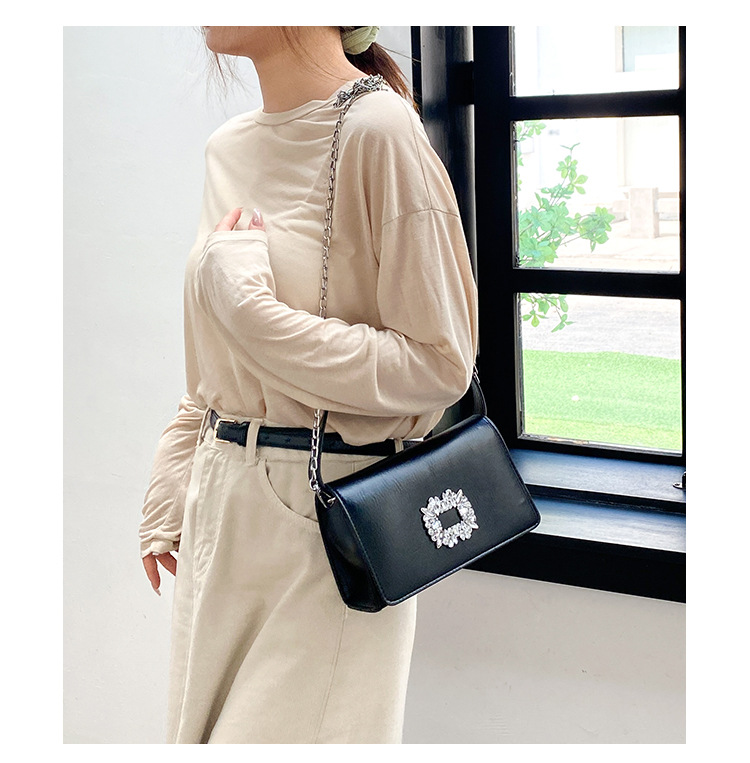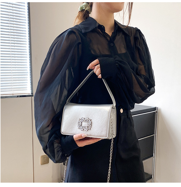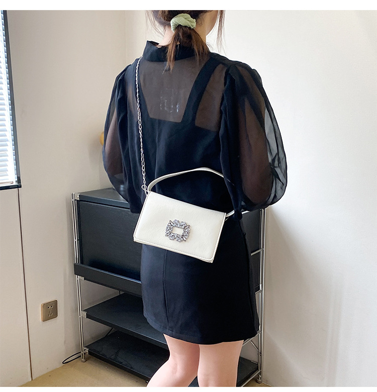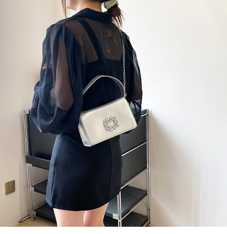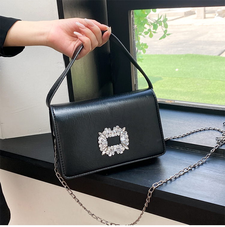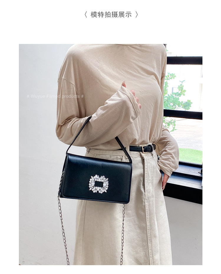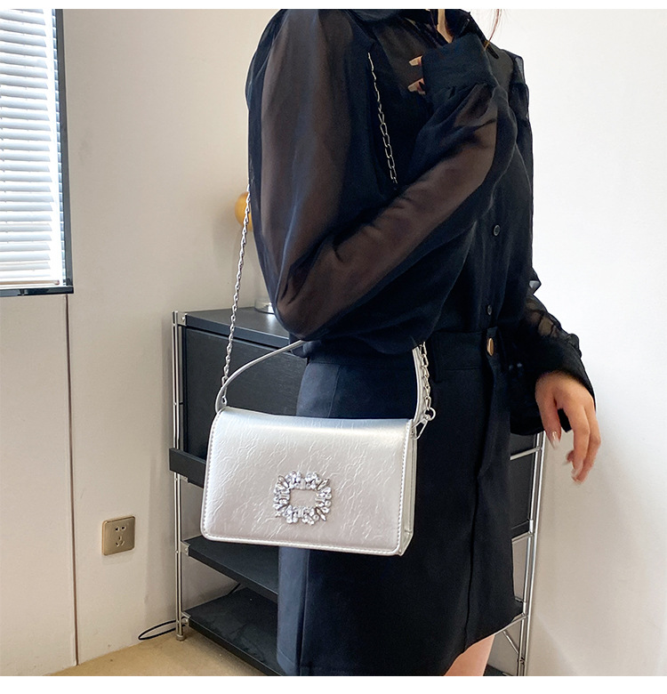 Bolso bandolera transfronterizo para niñas, sentido avanzado, nuevo bolso cuadrado pequeño de un solo hombro de cadena simple, bolso con cerradura de diamante brillante de moda