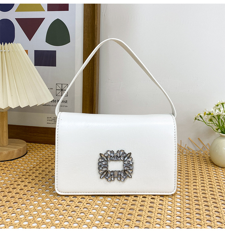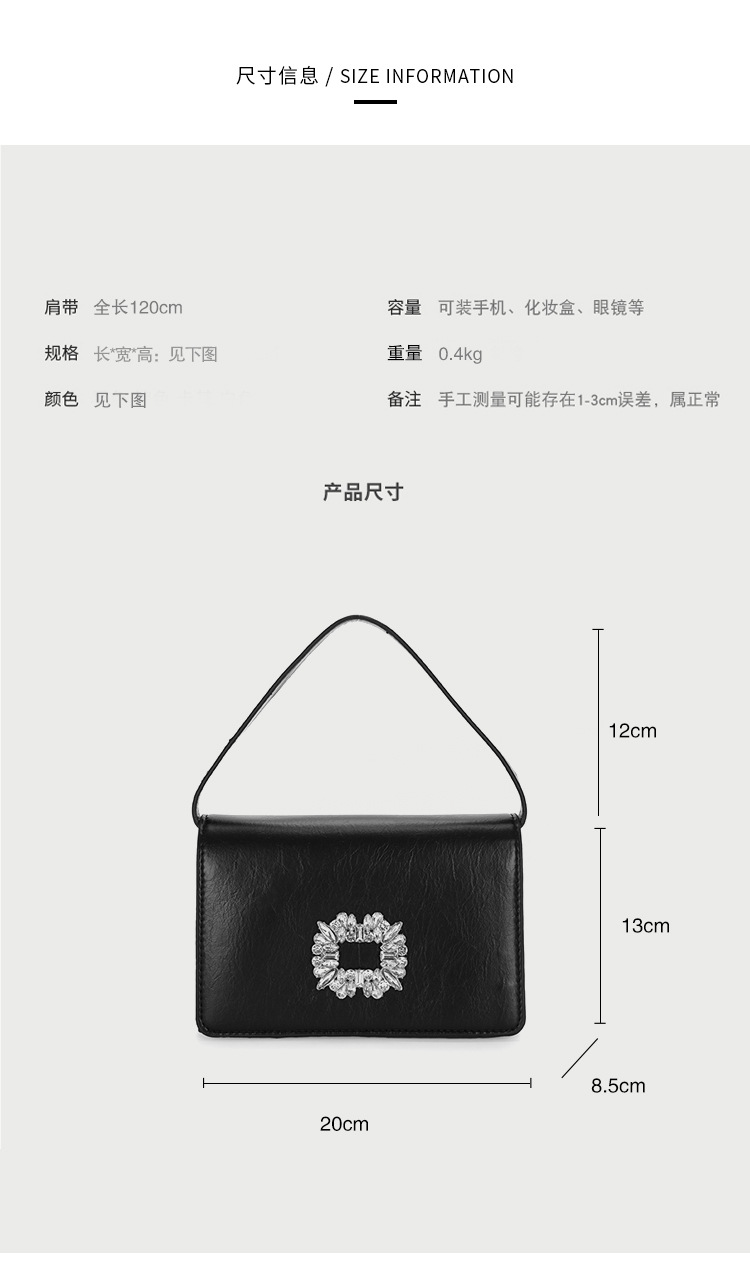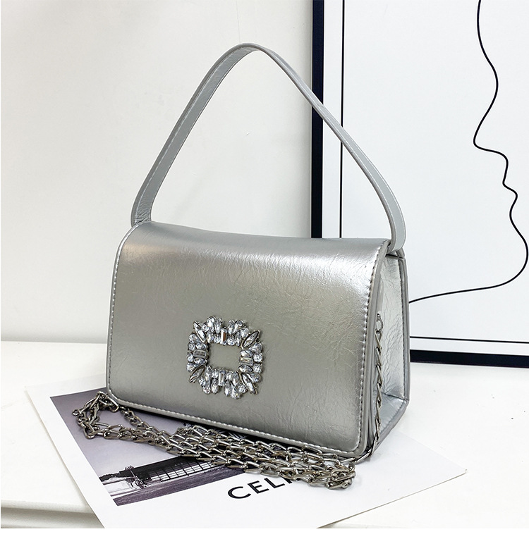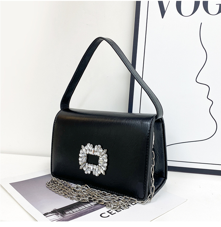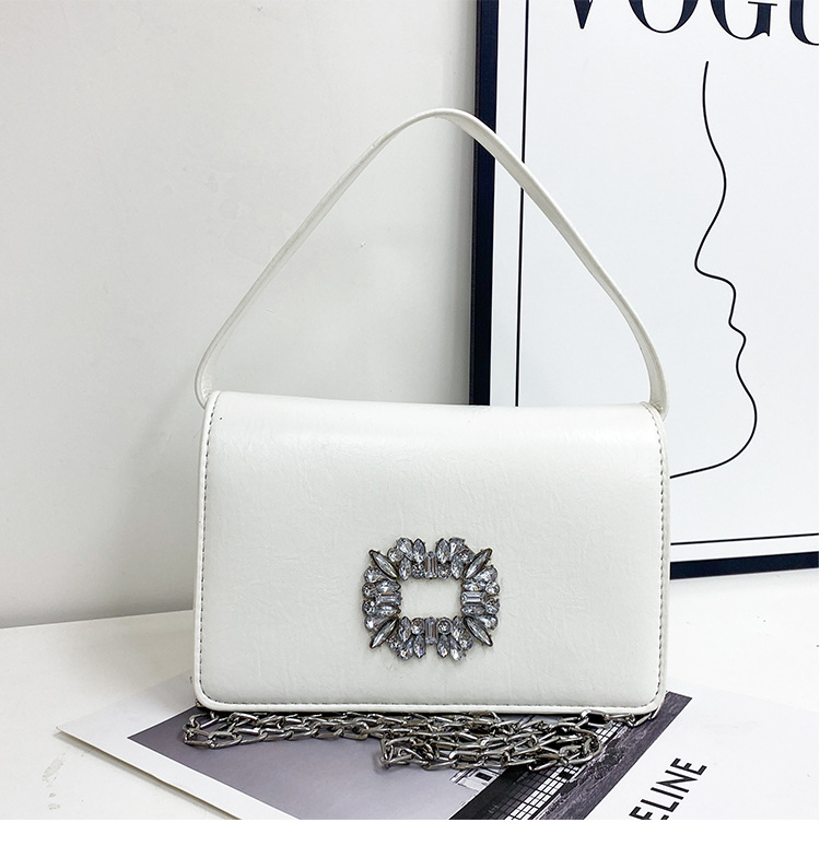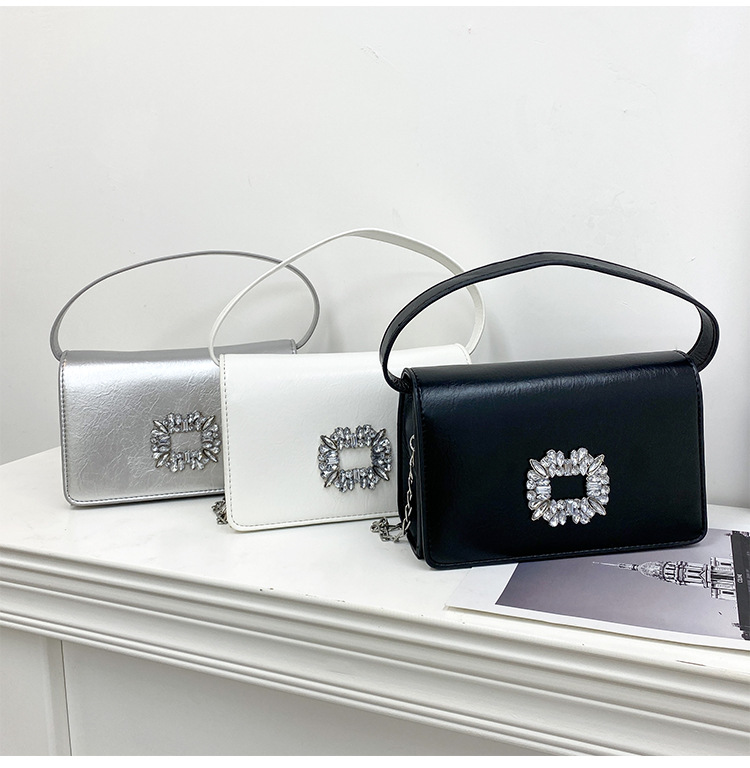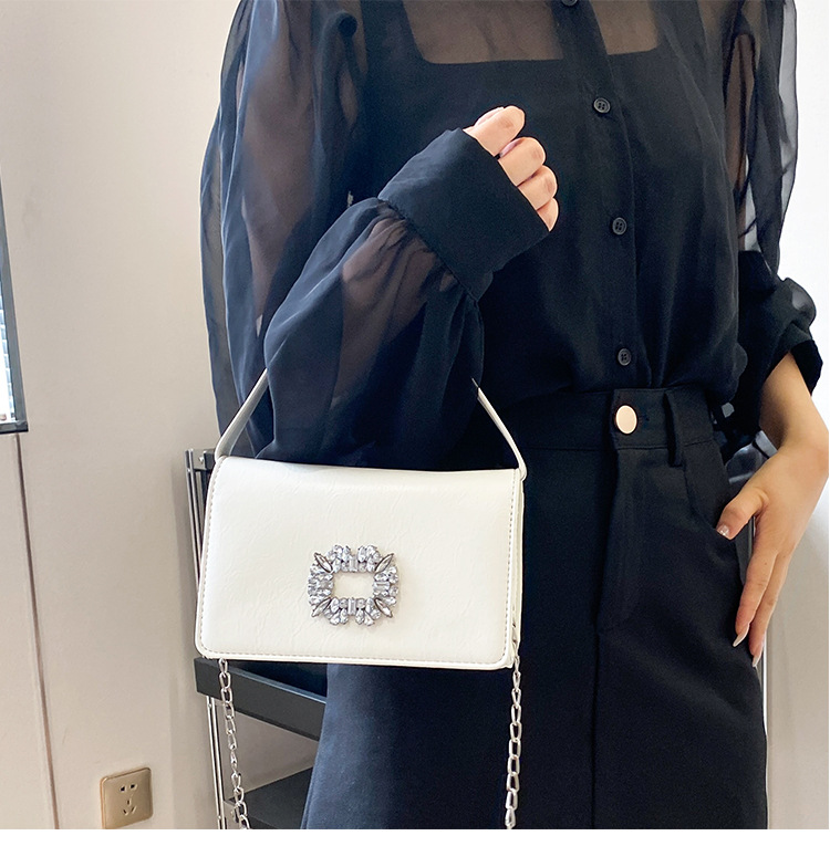 Bolso bandolera transfronterizo para niñas, sentido avanzado, nuevo bolso cuadrado pequeño de un solo hombro de cadena simple, bolso con cerradura de diamante brillante de moda