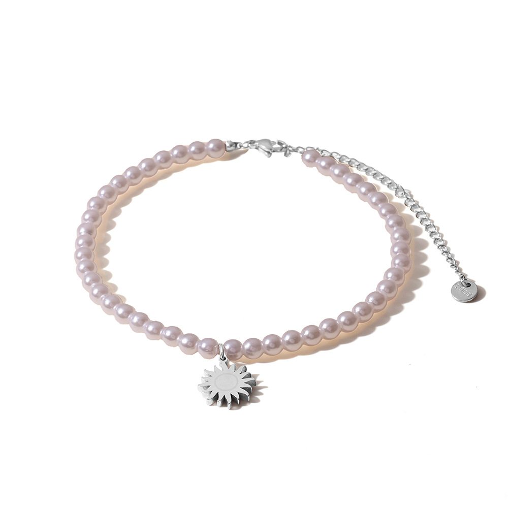 Amazon joyería de temperamento transfronterizo perla de una sola capa accesorios de girasol de acero inoxidable tobillera al por mayor 18K