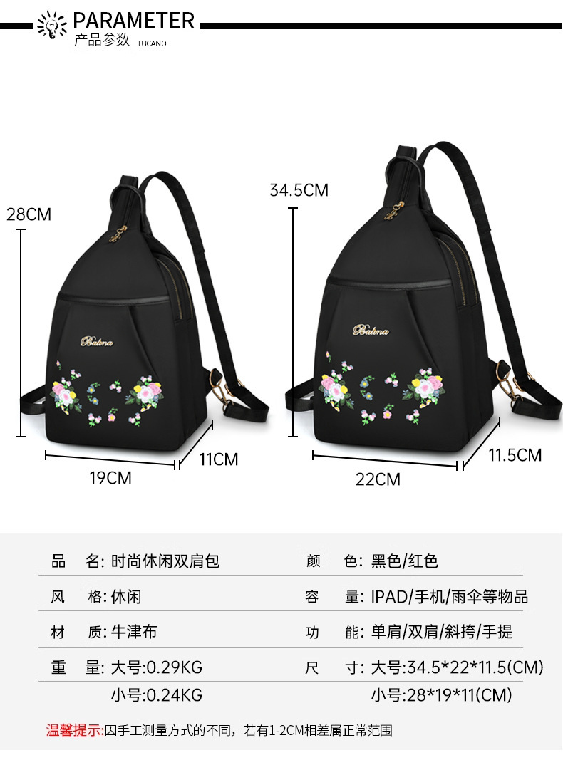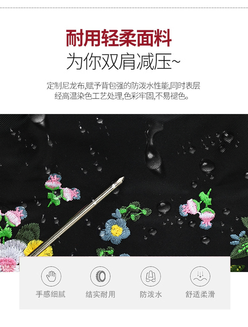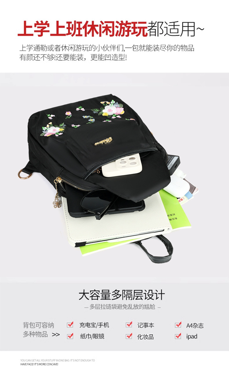 Mochila bordada nueva moda bordada de gran capacidad para damas con doble espalda para juegos al aire libre mochila de ocio