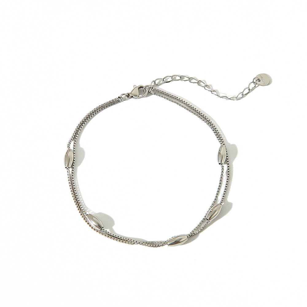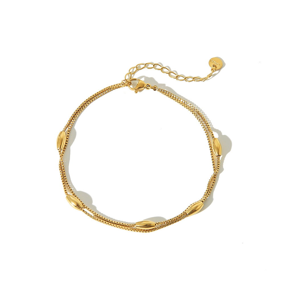 Pie simple de doble capa que no se desvanece, anillo de pie de sentido avanzado para mujer, diseño de nicho de acero inoxidable, cadena de pie de todo fósforo 18K