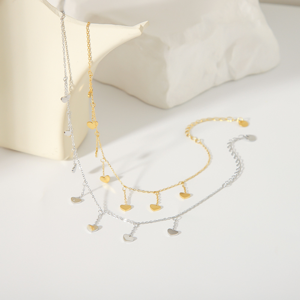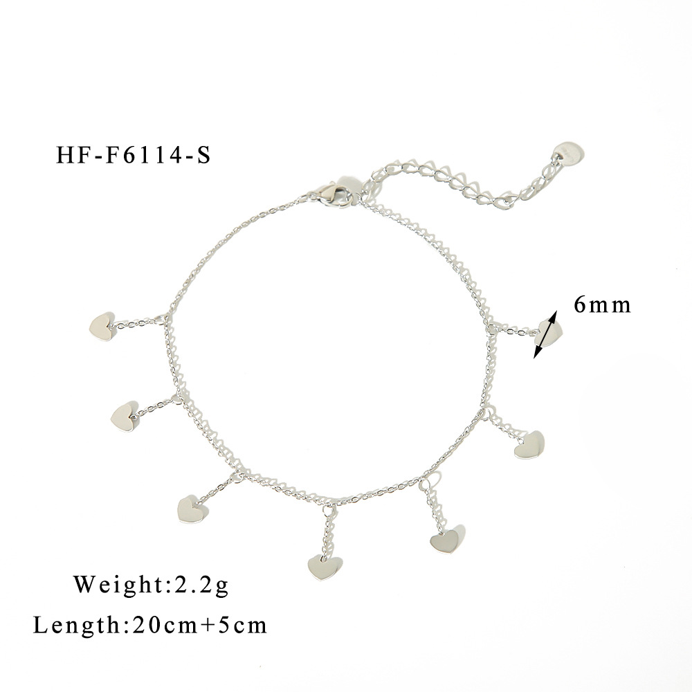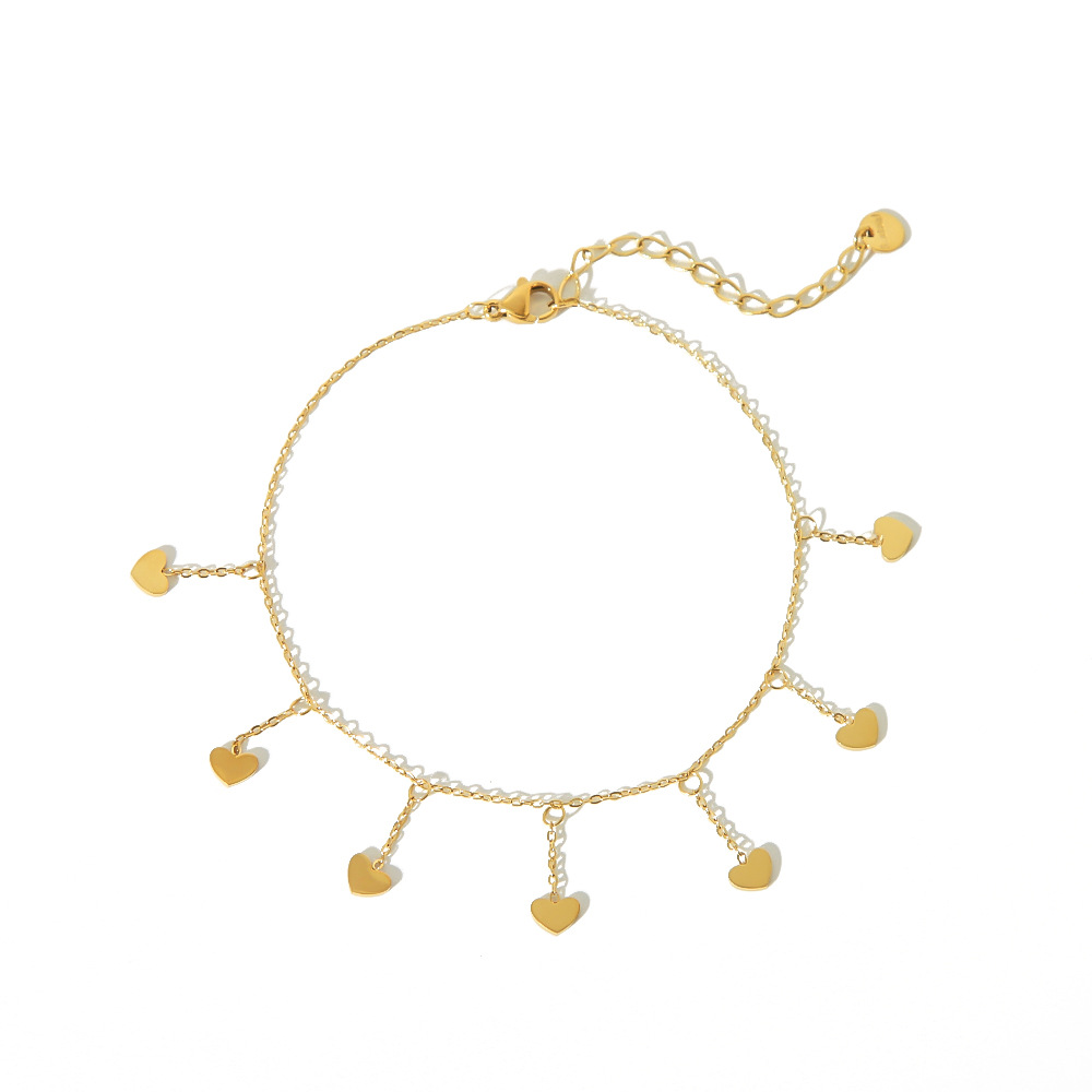 Versión coreana simple y elegante, sensación de alta gama llena de acero inoxidable, borlas de galvanoplastia de oro real, tobillera de amor, joyería que no se desvanece