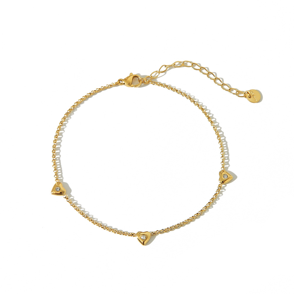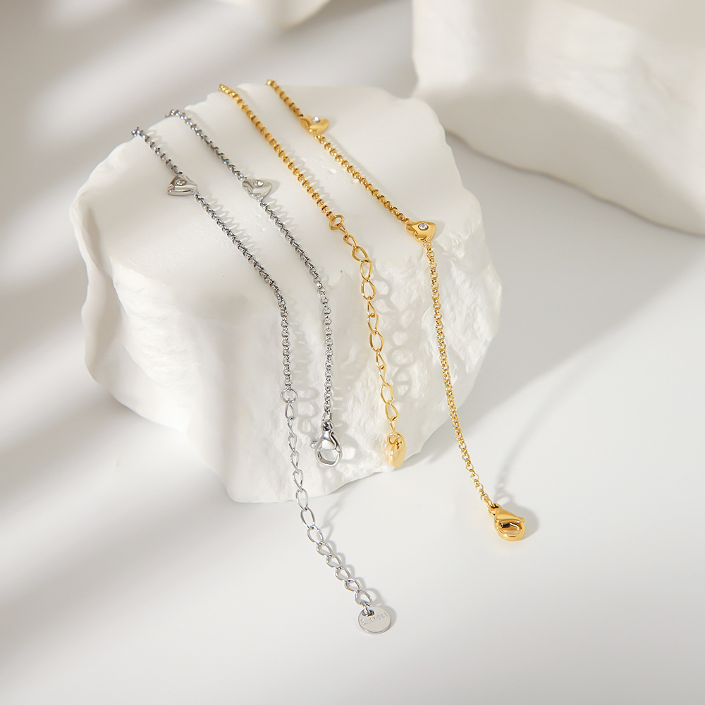 Estilo frío europeo y americano personalidad acero inoxidable galvanoplastia de oro real amor circón tobillera tobillera diamante en forma de corazón joyería de todo fósforo