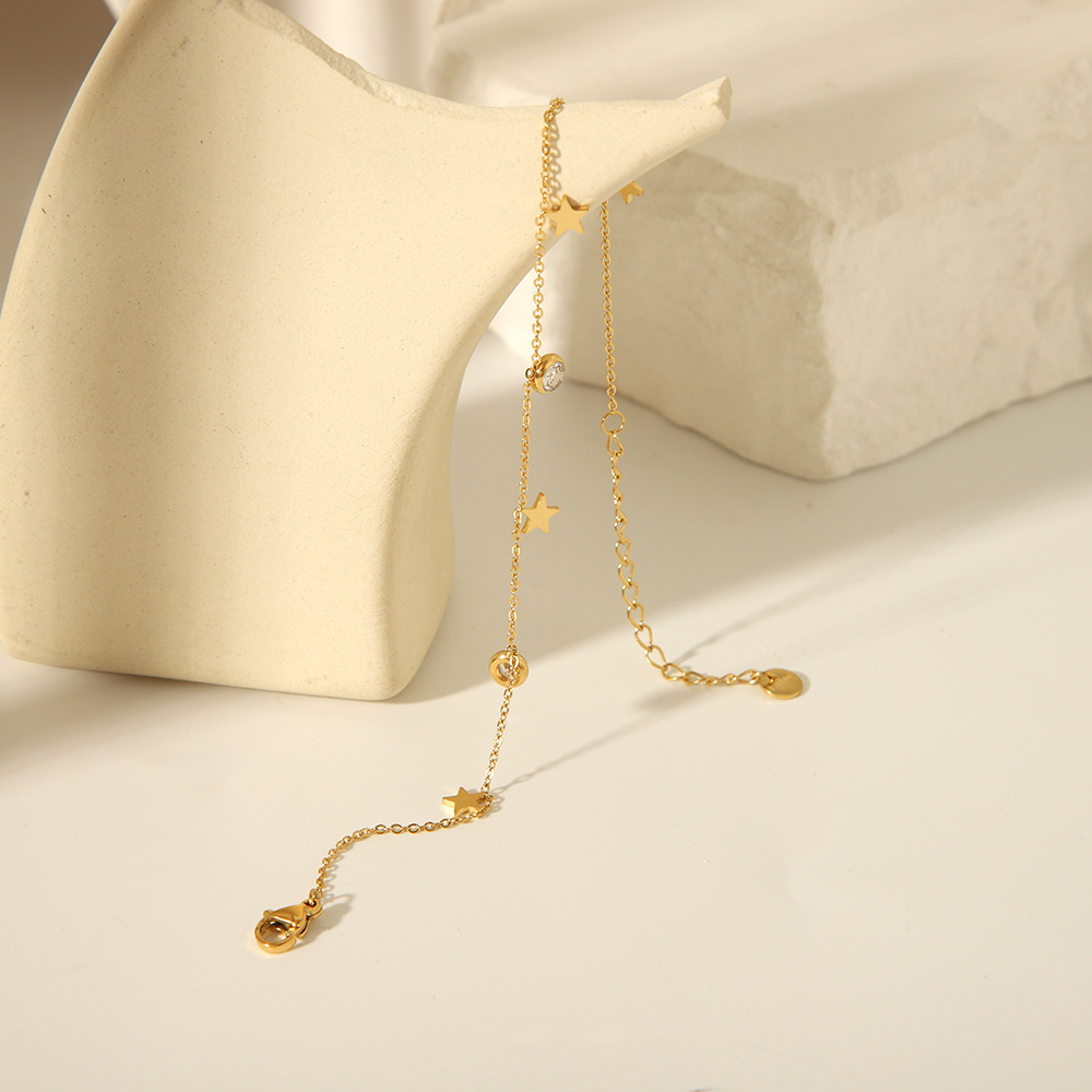 2024 verano nuevo estilo INS estilo exquisito estrella de cinco puntas circón impermeable y no se desvanece cadena de fútbol femenino joyería