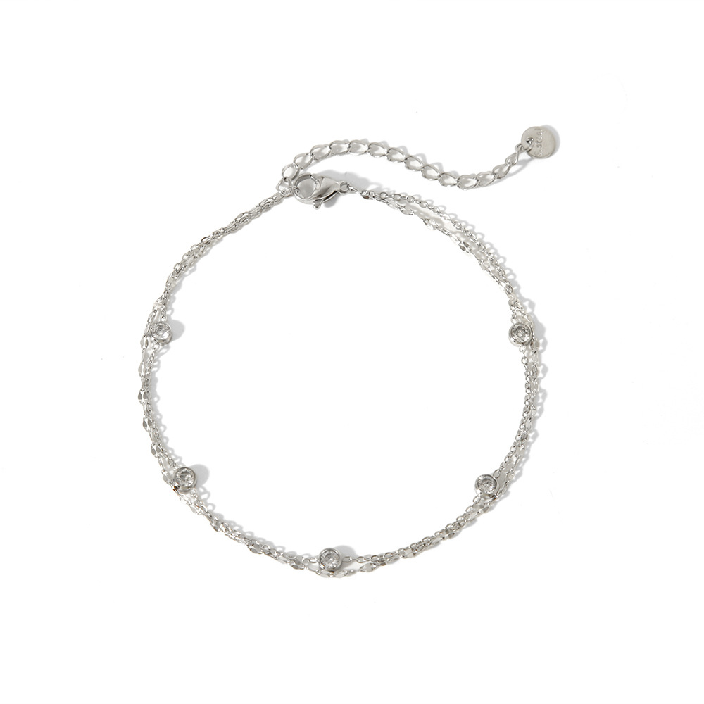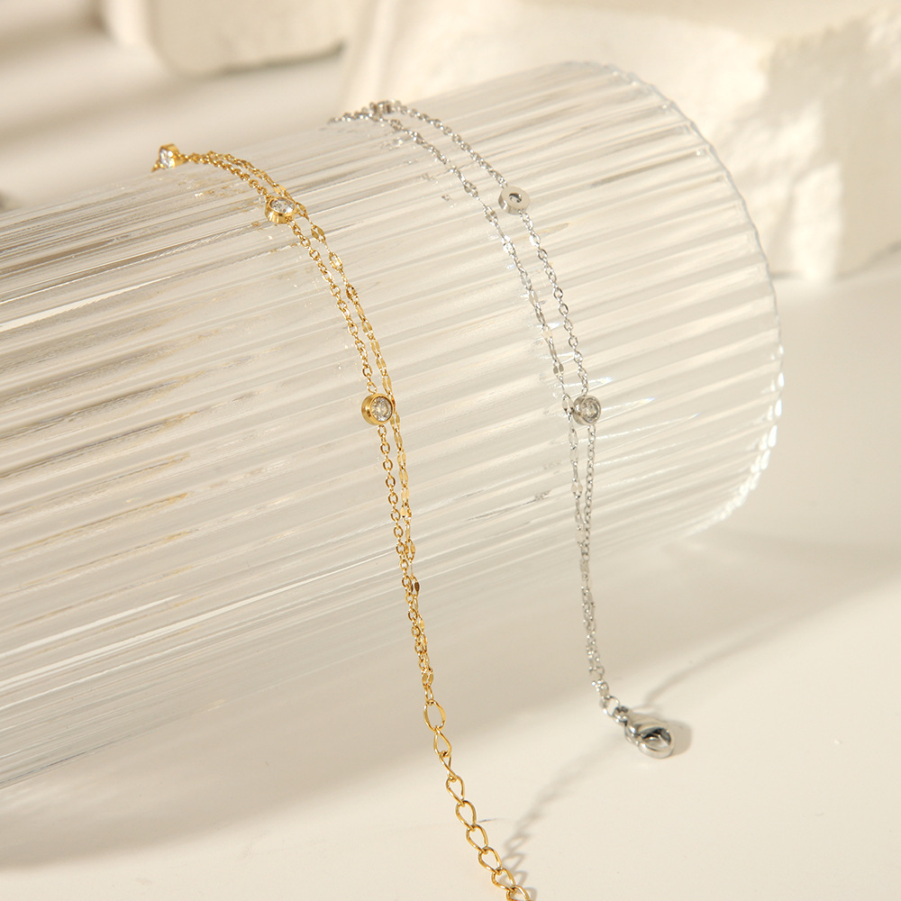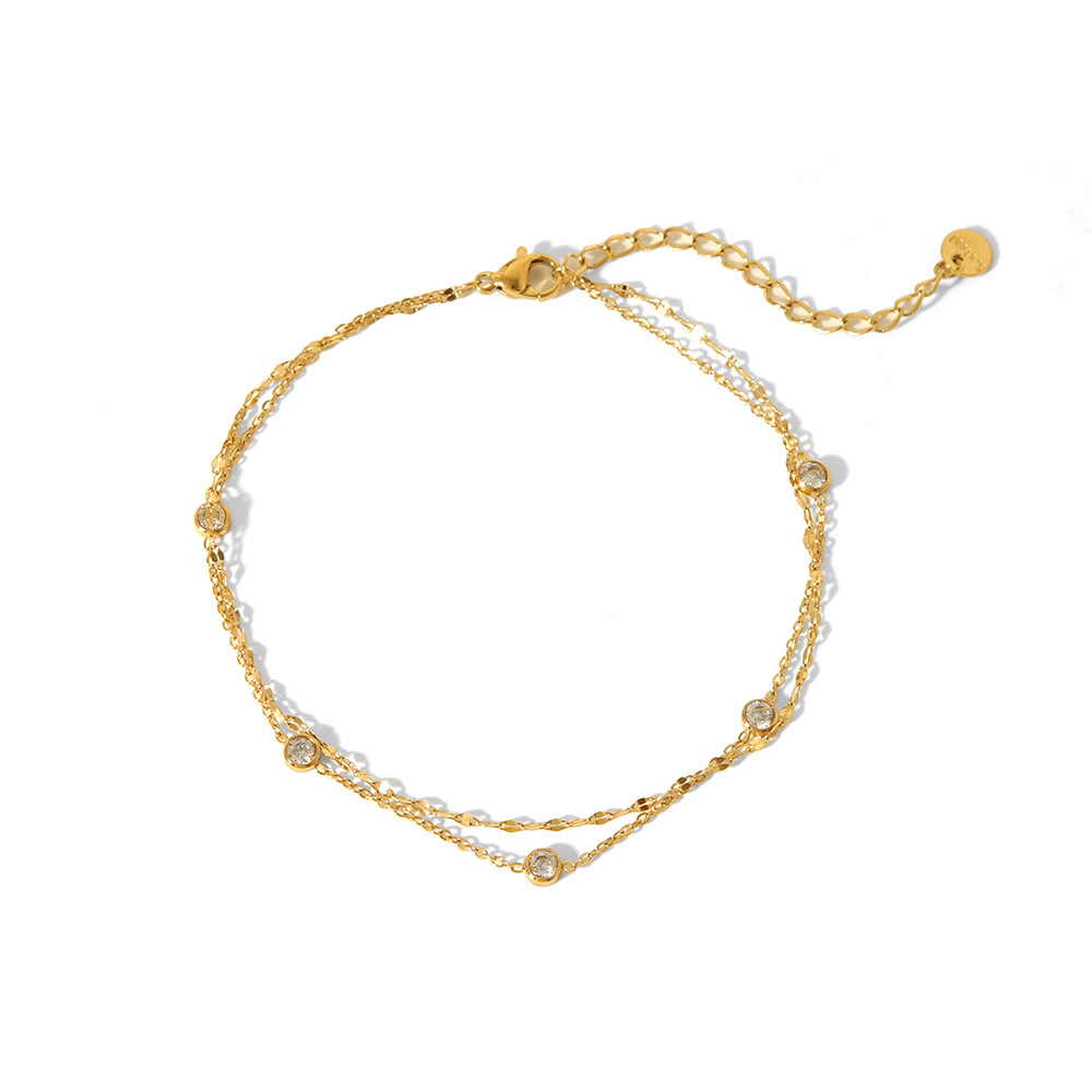 INS estilo europeo y americano simple acero inoxidable 18K doble capa viento frío sentido de alta calidad circón cadena de pie mujer verano tobillera