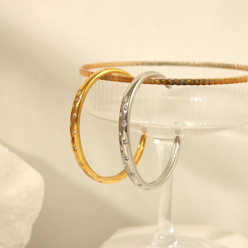 Venta caliente pulsera abierta todo-fósforo joyería 18K galvanoplastia Fundición de acero de titanio de la vendimia estrellada circón ocho Awn estrella transfronteriza