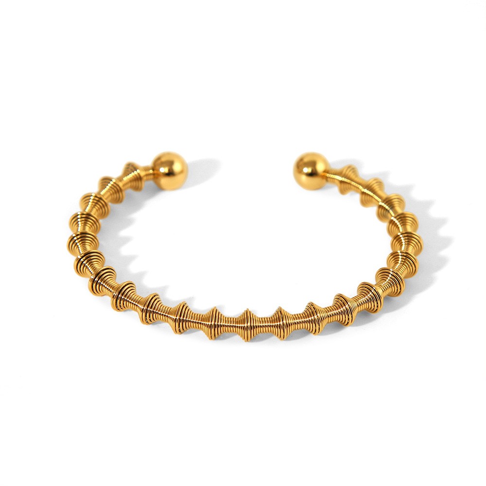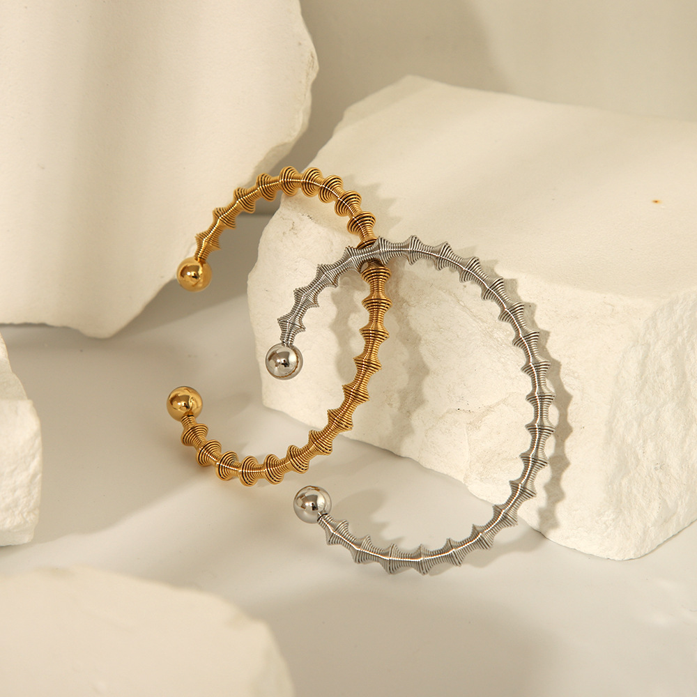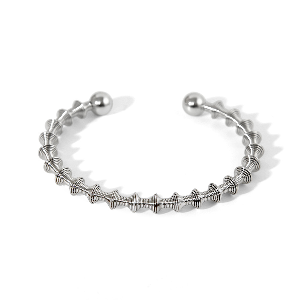 Moda europea y americana en forma de C apertura en espiral pulsera de acero inoxidable joyería resorte geométrico torsión al por mayor