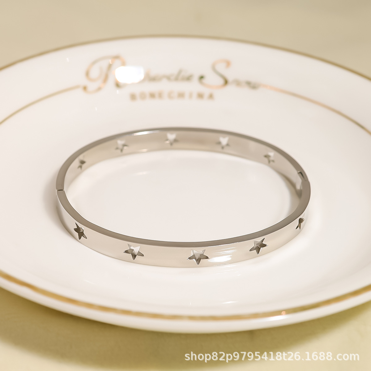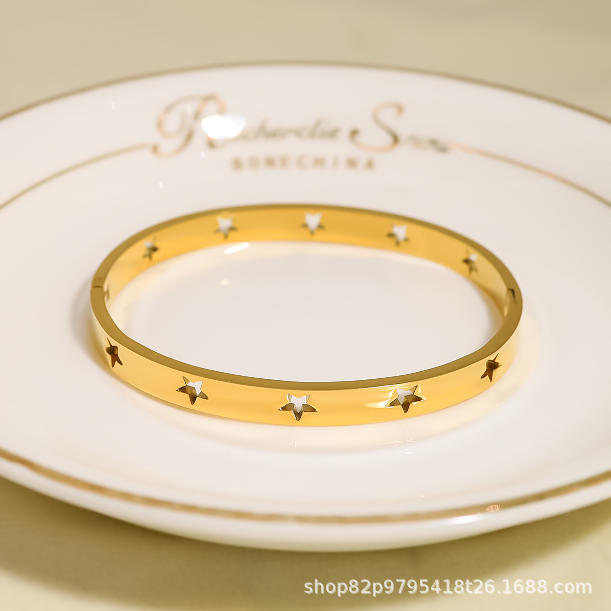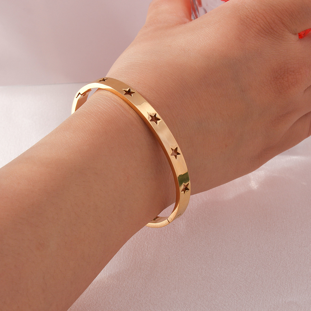 Venta caliente transfronteriza francesa de acero inoxidable hueco estrella de cinco puntas hebilla pulsera pulsera de joyería pulida a mano al por mayor 18K