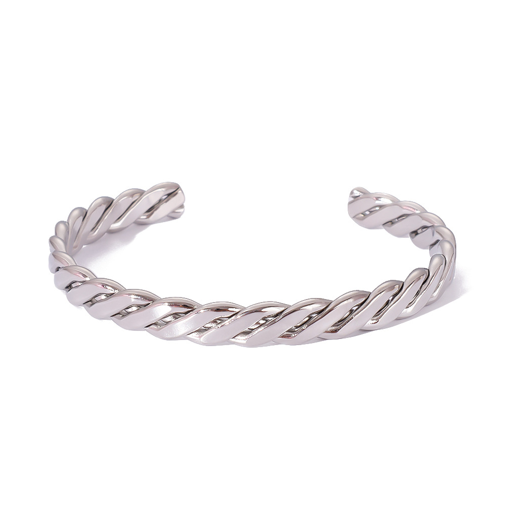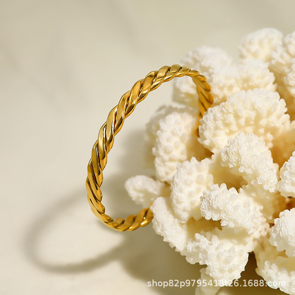 Ins pulsera de apertura de giro tejida en forma de C de galvanoplastia de oro real de acero inoxidable simple de todo fósforo transfronterizo decolora e impermeable