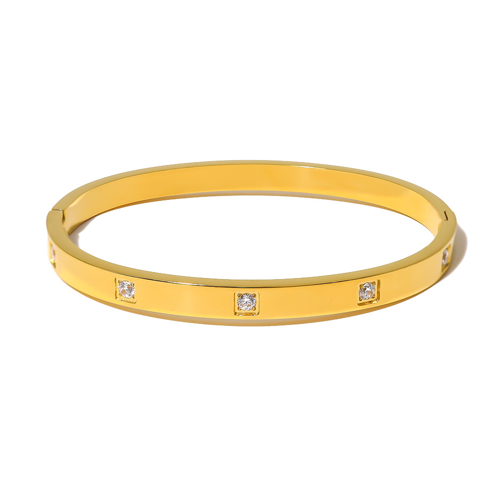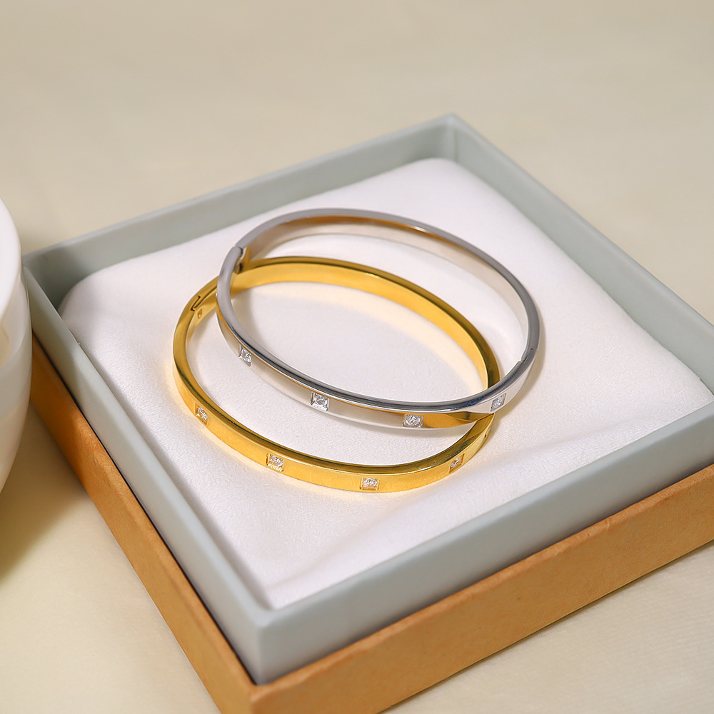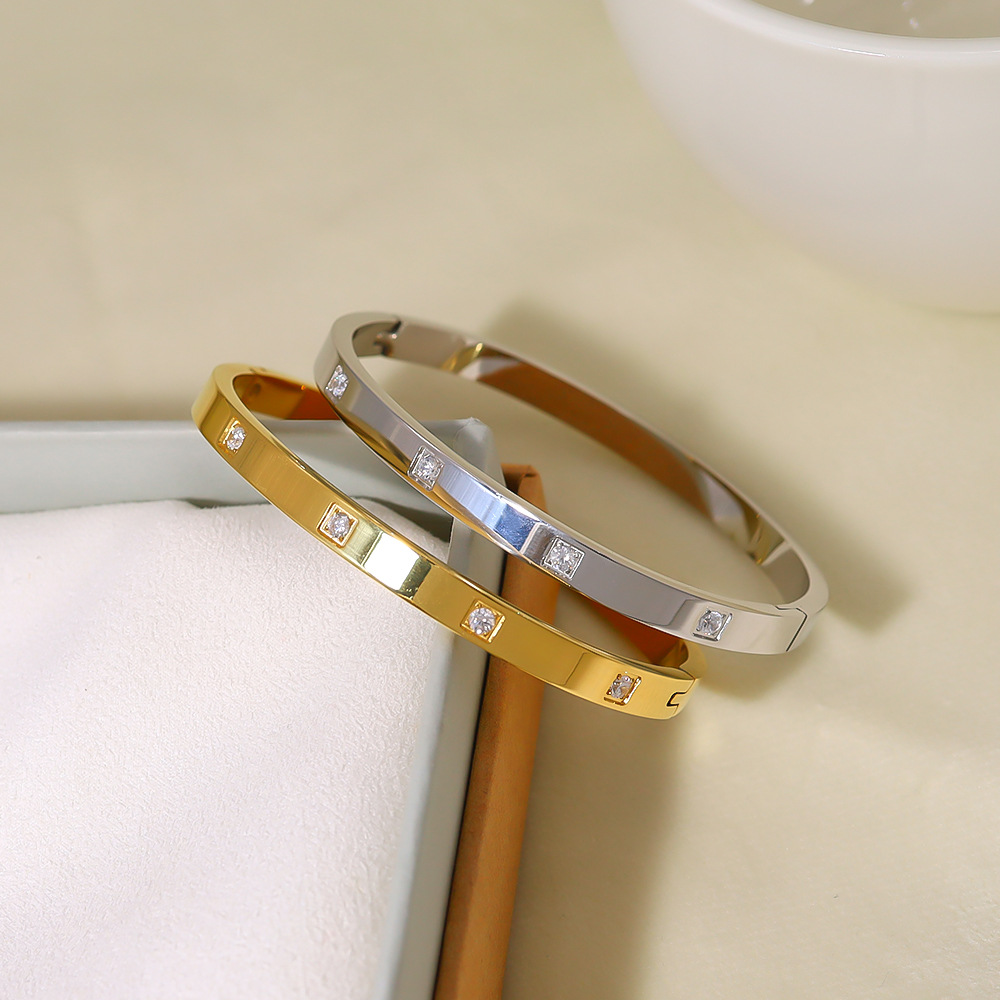 INS popular acero de titanio 18K oro real galvanoplastia color cuadrado blanco pulsera de circonio jadeíta no se desvanece explosión transfronteriza
