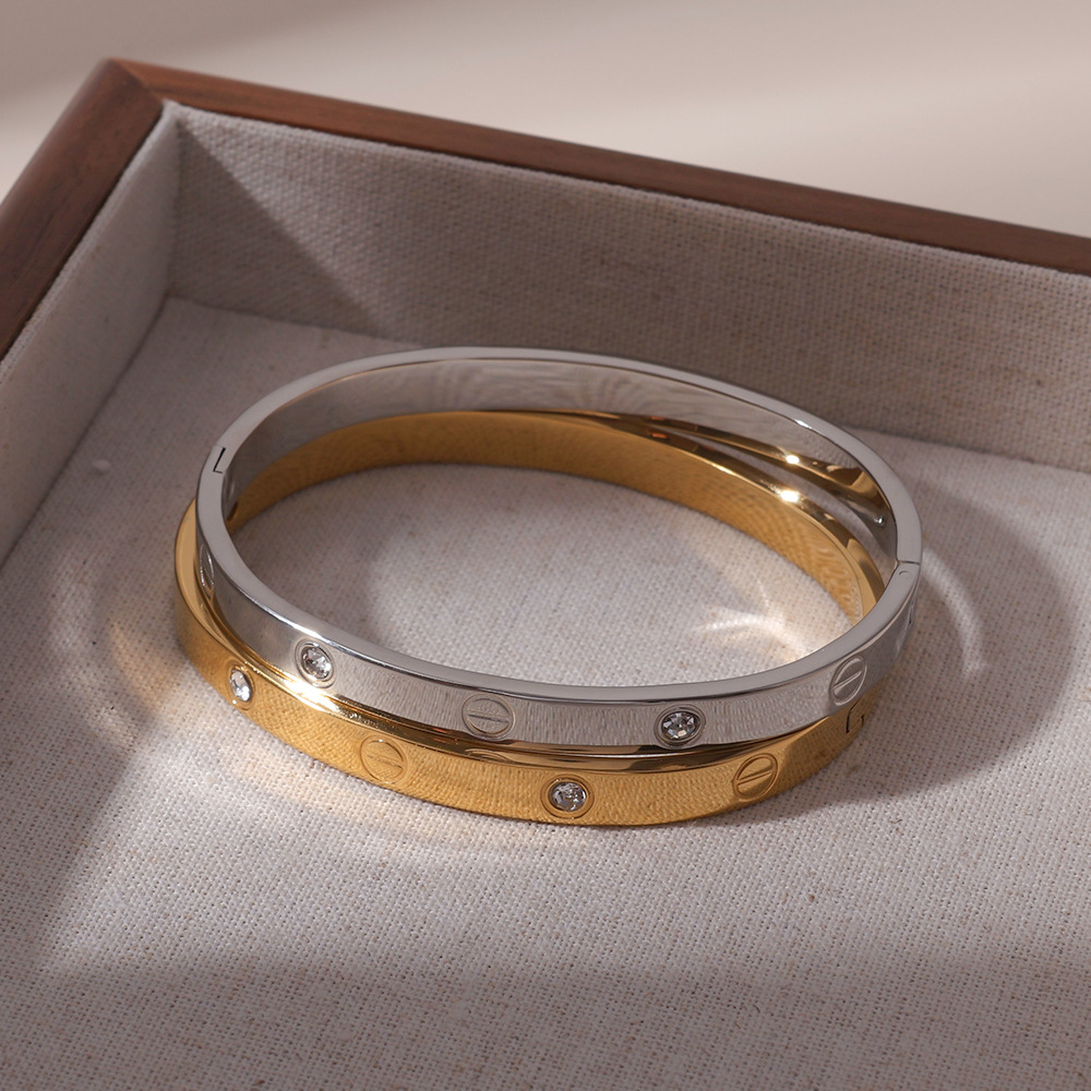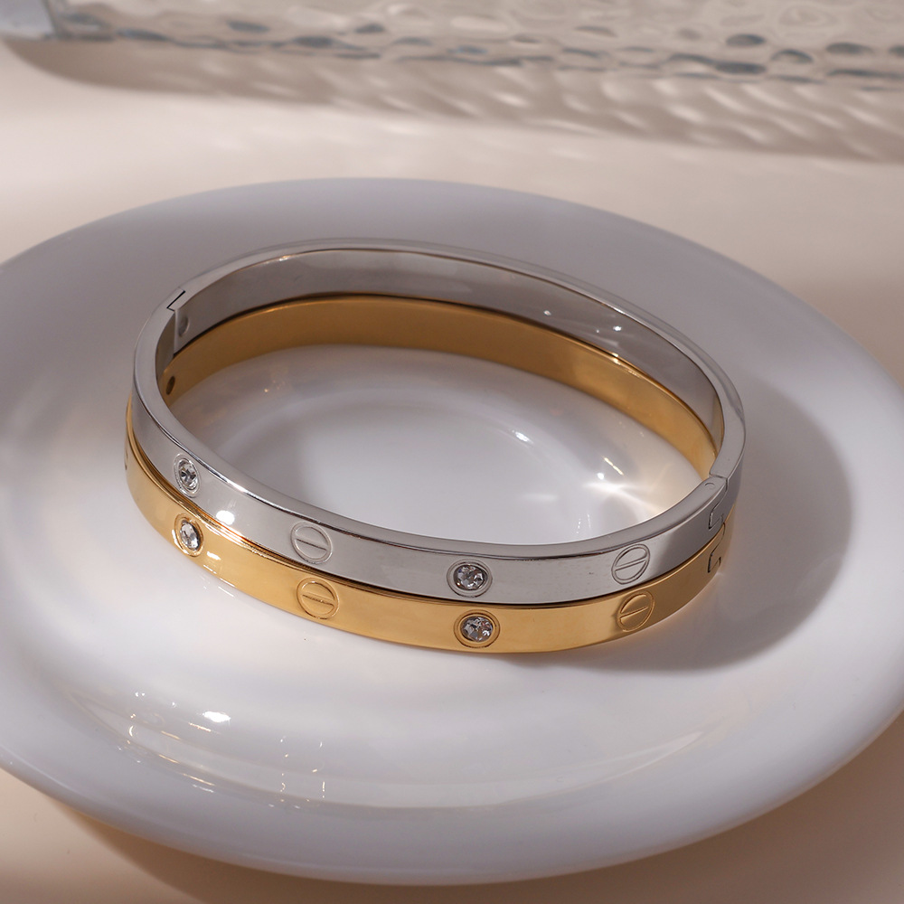 Pulsera de venta caliente de comercio exterior, tarjeta de acero inoxidable, un clavo, un diamante, espejo, pulido, pulseras de mujer de alta calidad, brazalete 18K