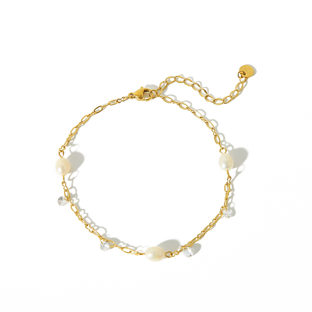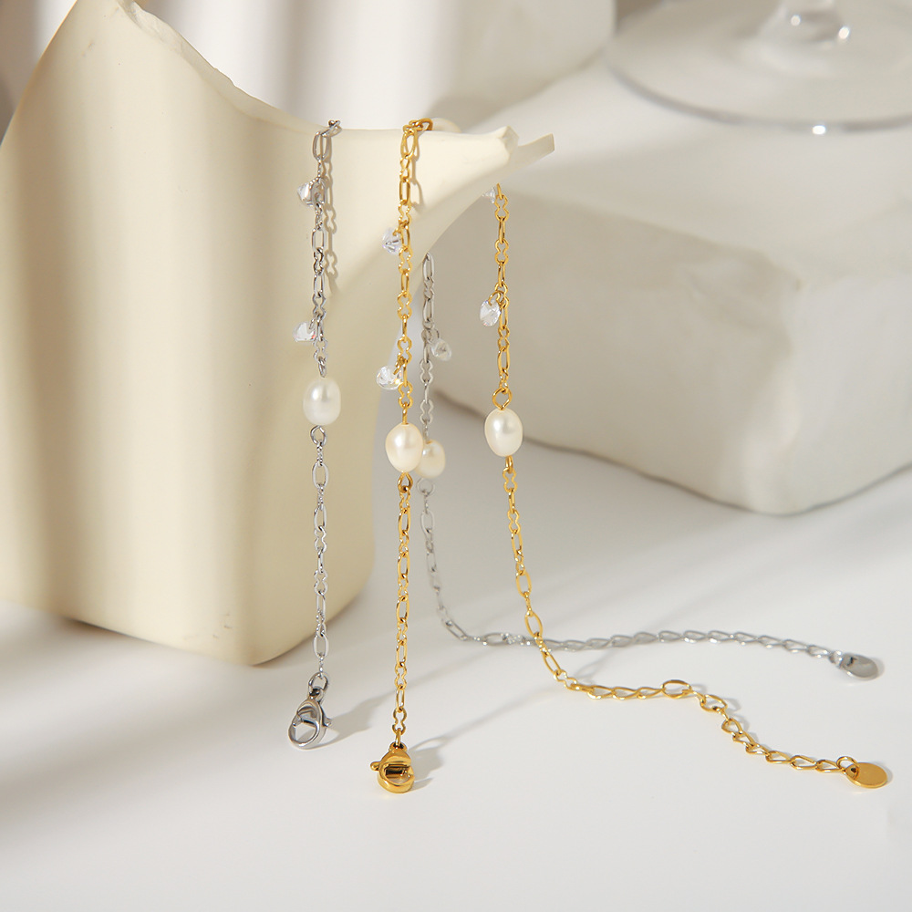Perlas de agua dulce naturales de acero inoxidable bohemio chapadas en oro real y no se desvanece