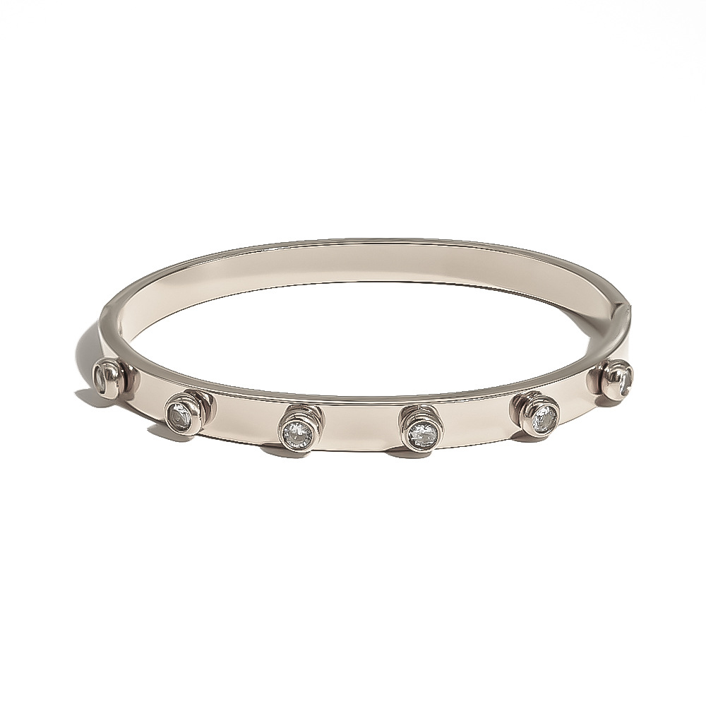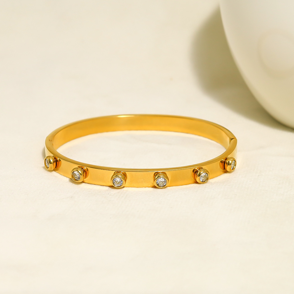 Nicho de moda europea y americana pulsera popular de acero inoxidable chapado 18K redondo convexo circón hebilla pulsera mujer no se desvanece