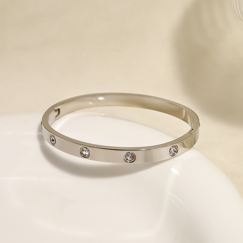 Pulsera de Acero Inoxidable de Titanio con Diez Piedras, Cierre de Diamantes, Unisex, Diseño Geométrico, para Comercio Transfronterizo