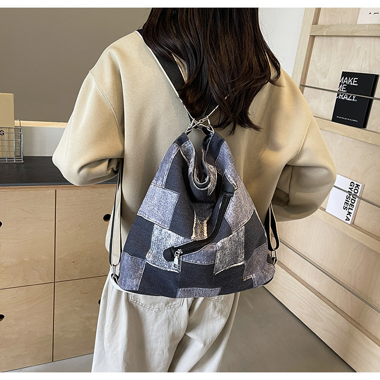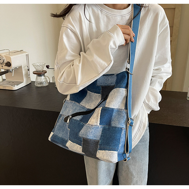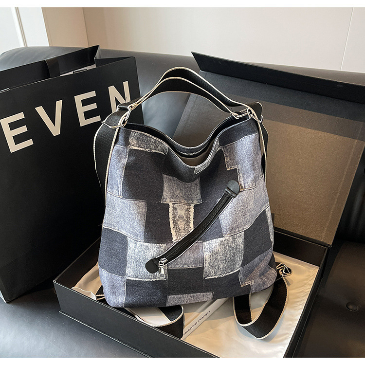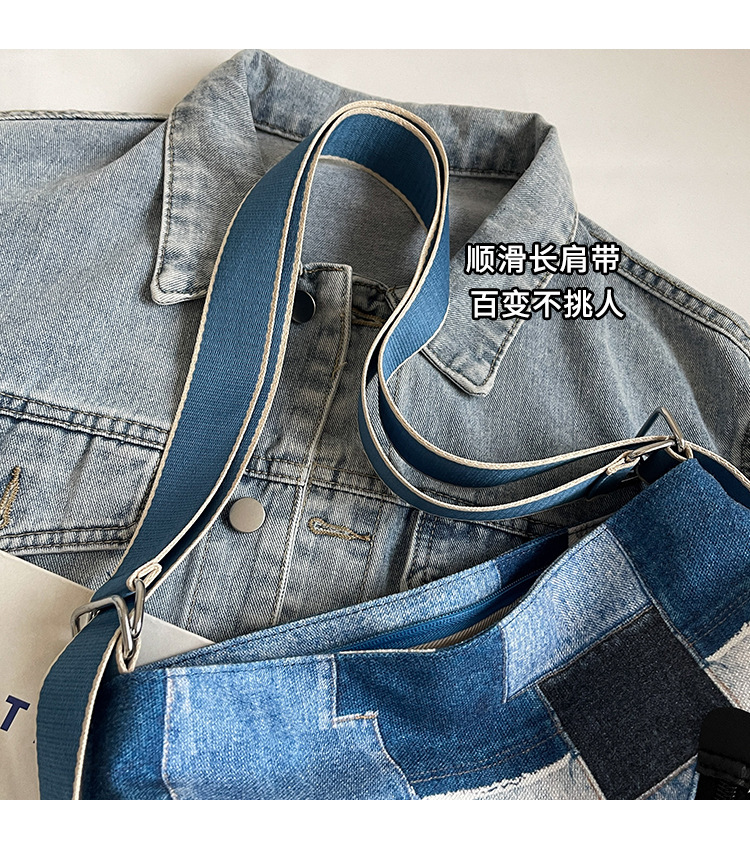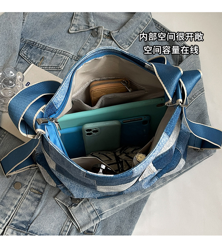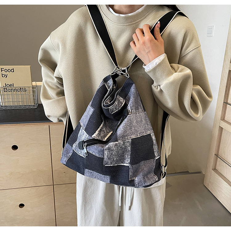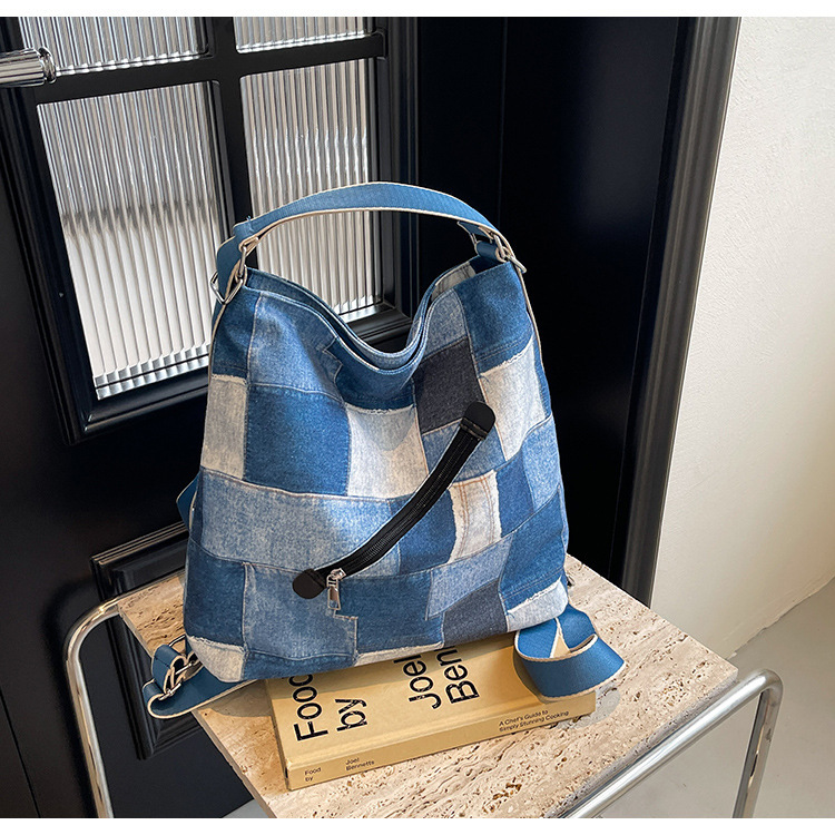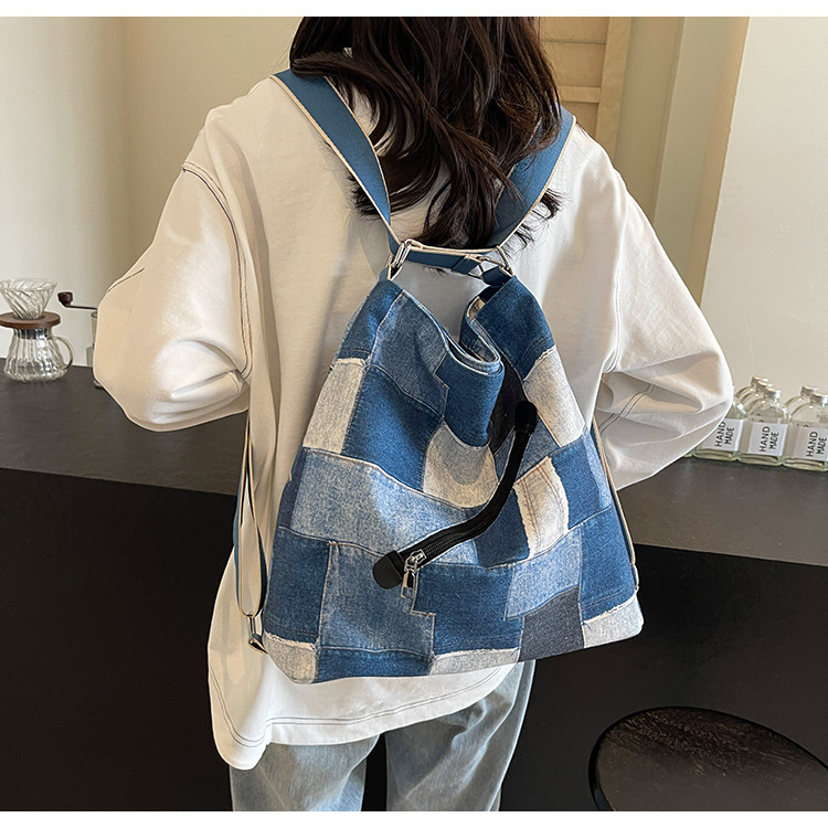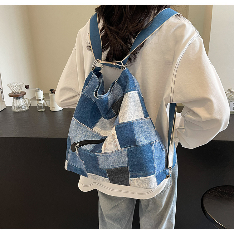 Mochila con sentido de diseño, bolso de nicho, correa de hombro ancha para mujer, bolso de mezclilla de gran capacidad, bolso de mensajero de un solo hombro, mochila multiusos