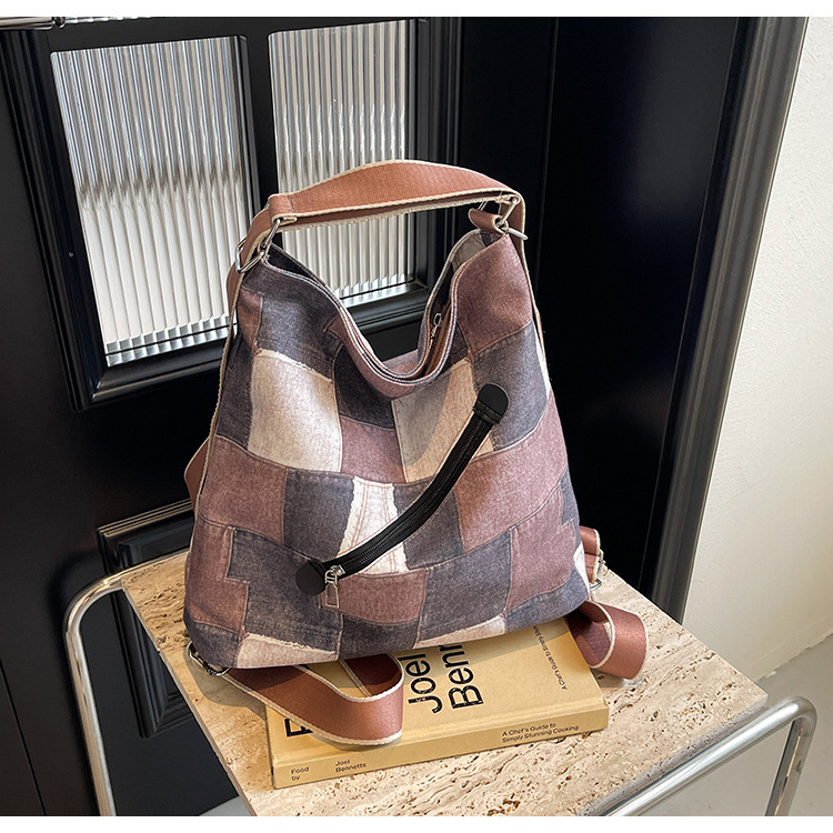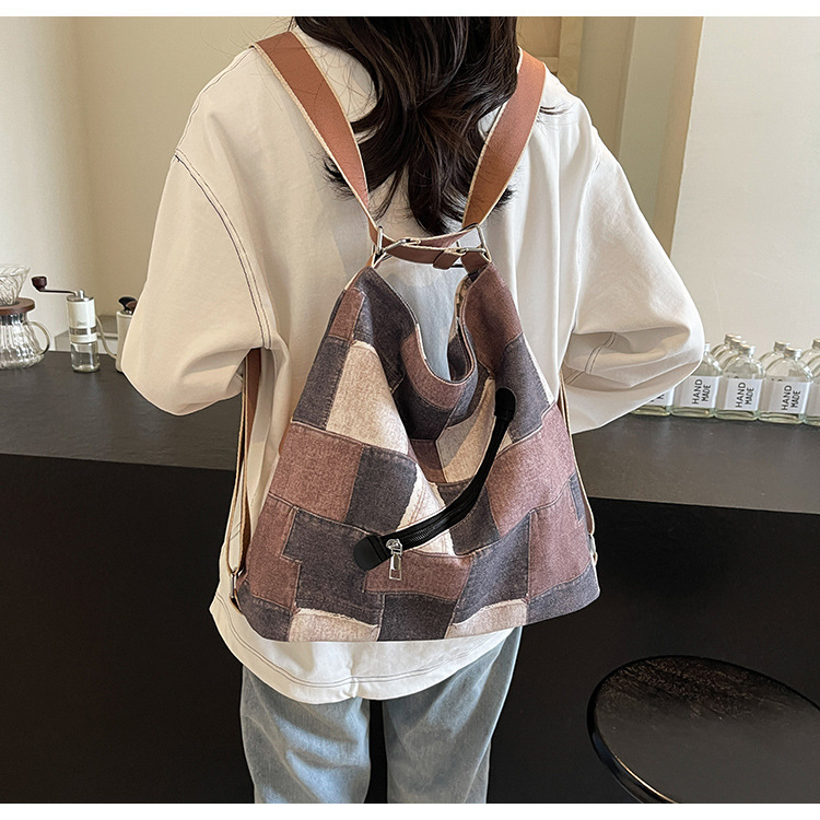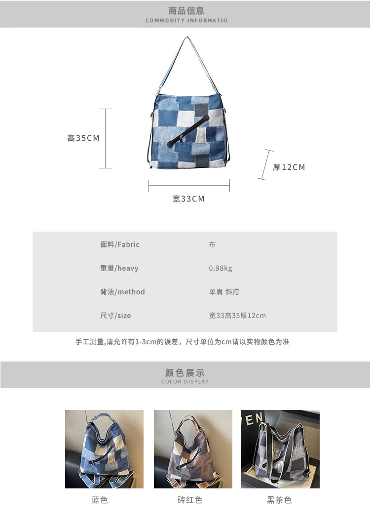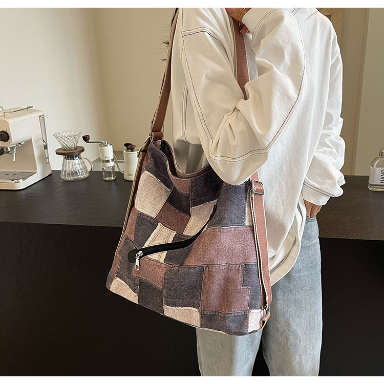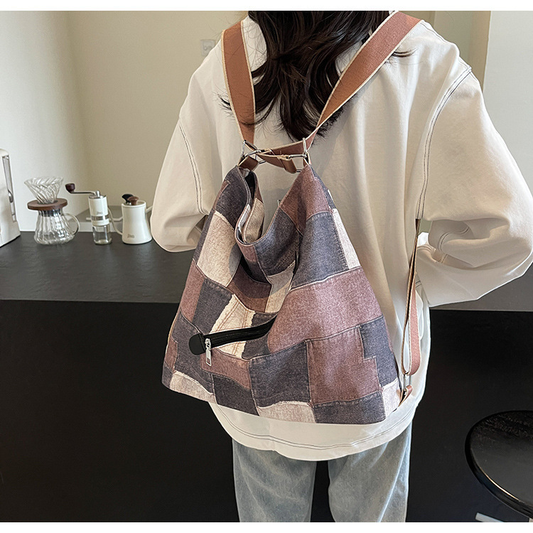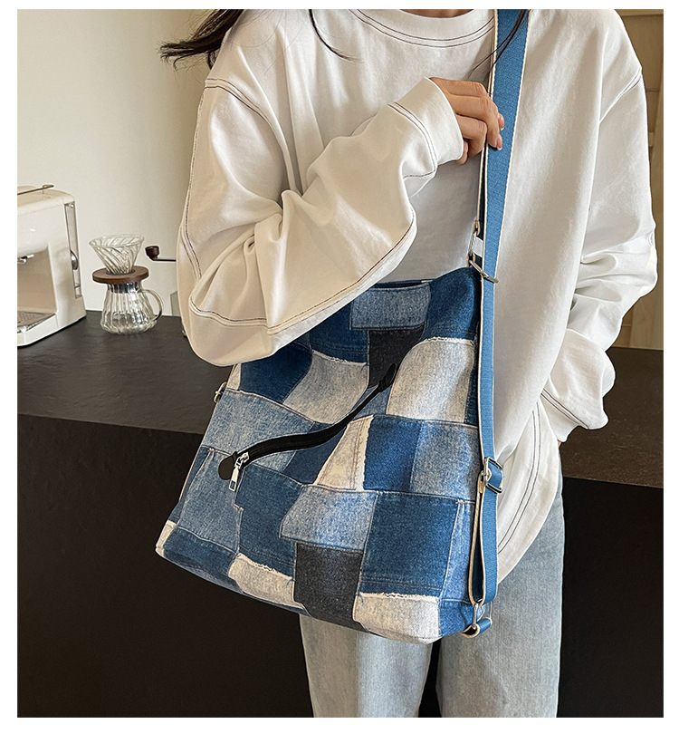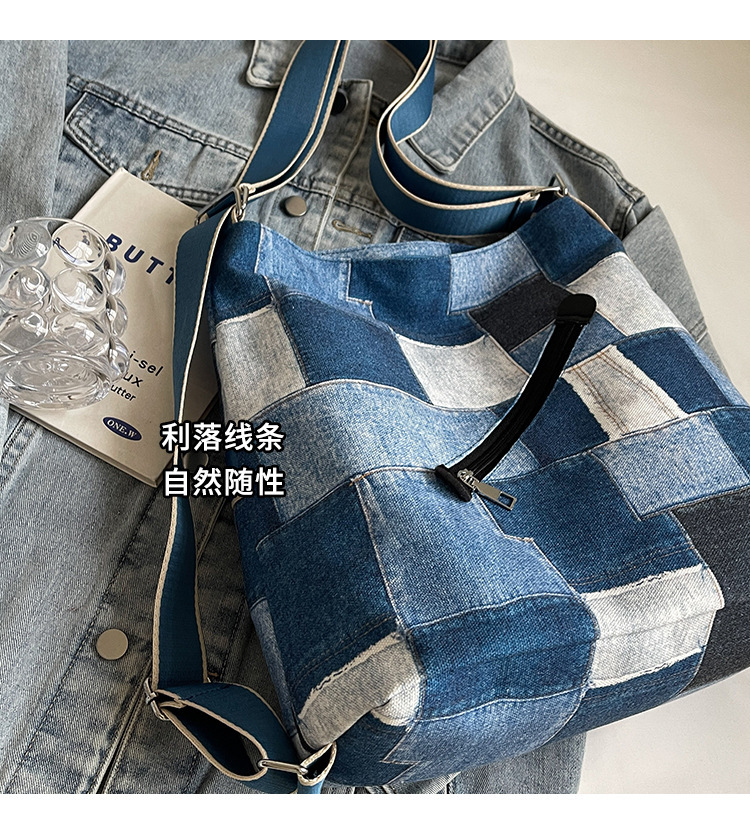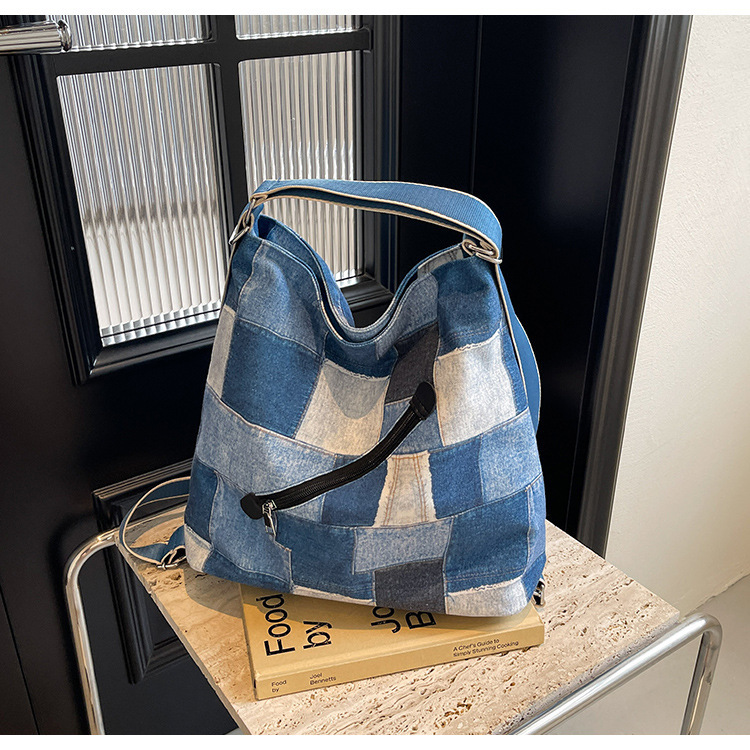 Mochila con sentido de diseño, bolso de nicho, correa de hombro ancha para mujer, bolso de mezclilla de gran capacidad, bolso de mensajero de un solo hombro, mochila multiusos