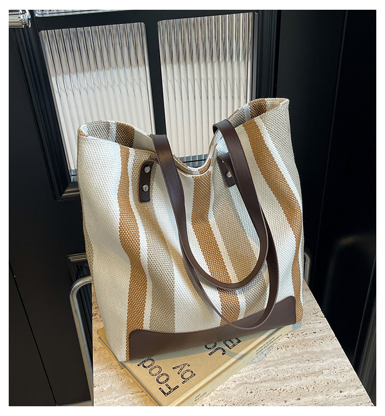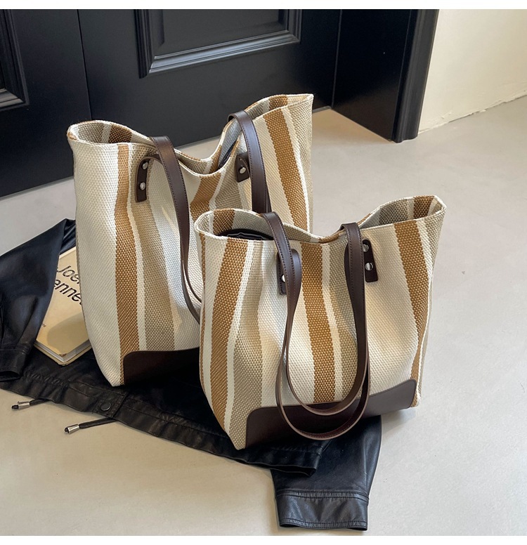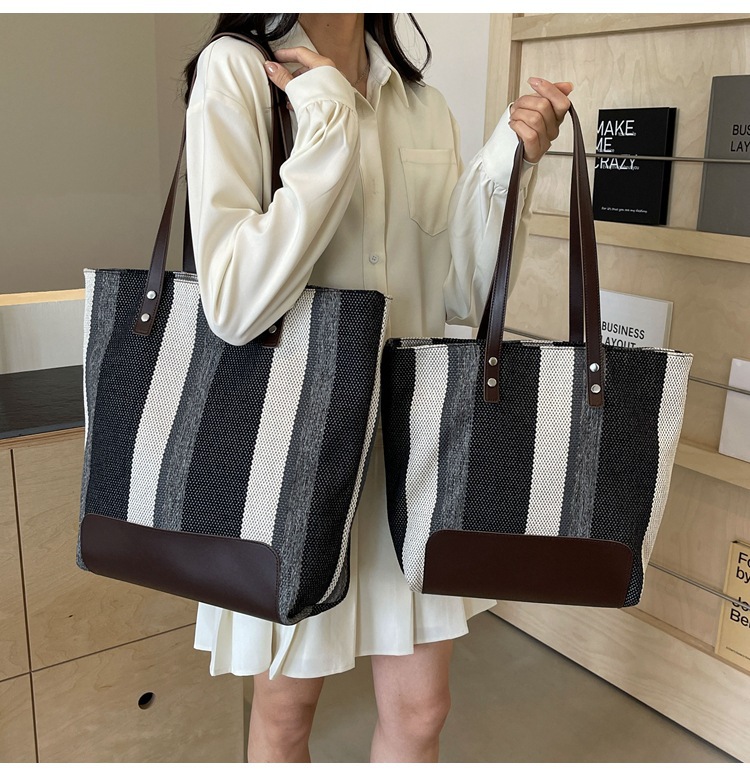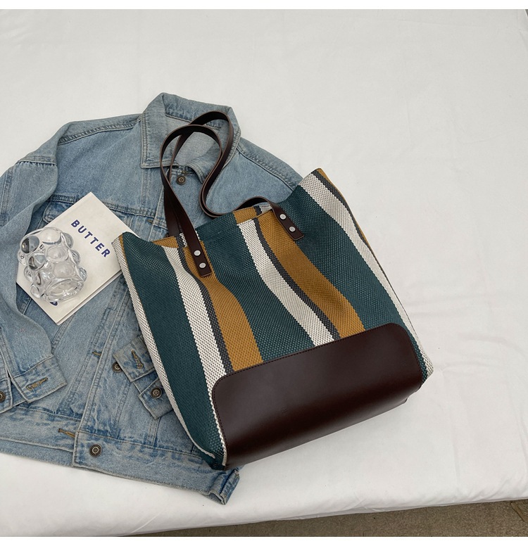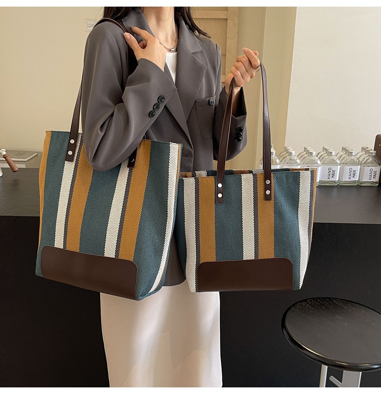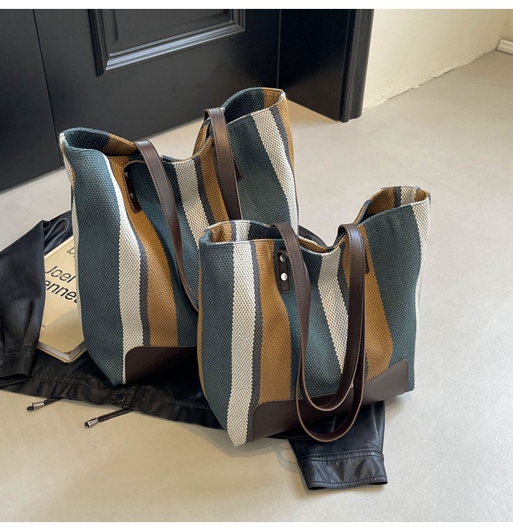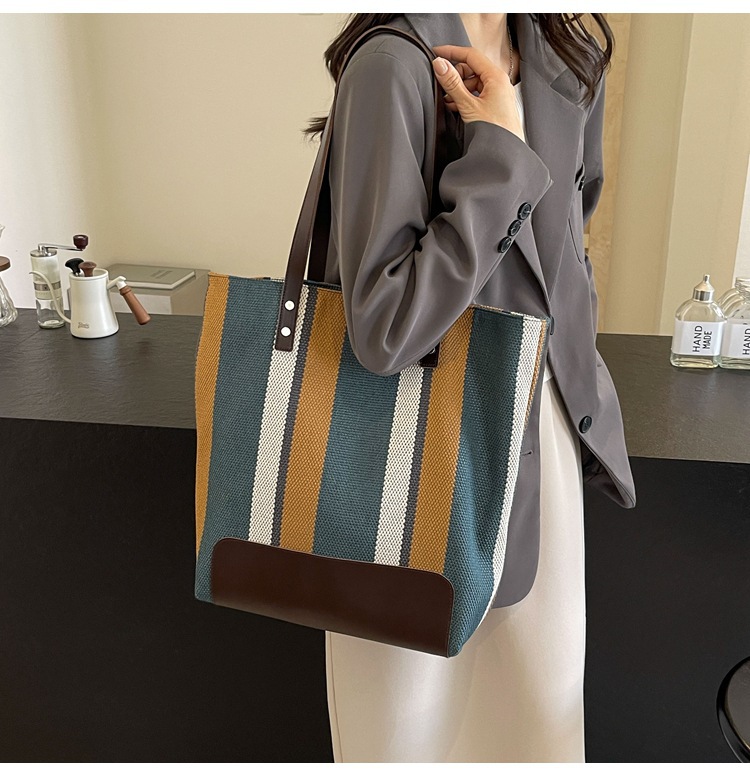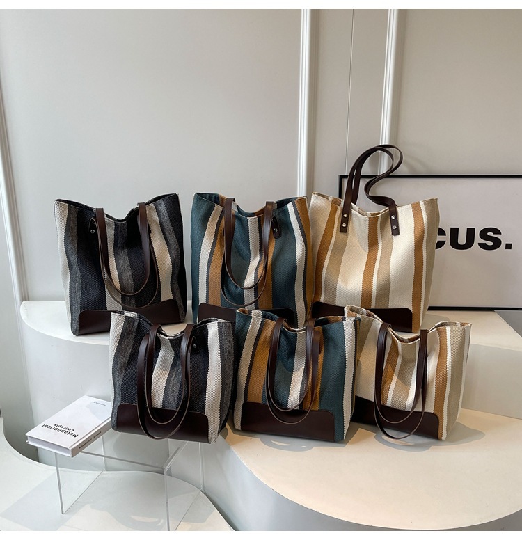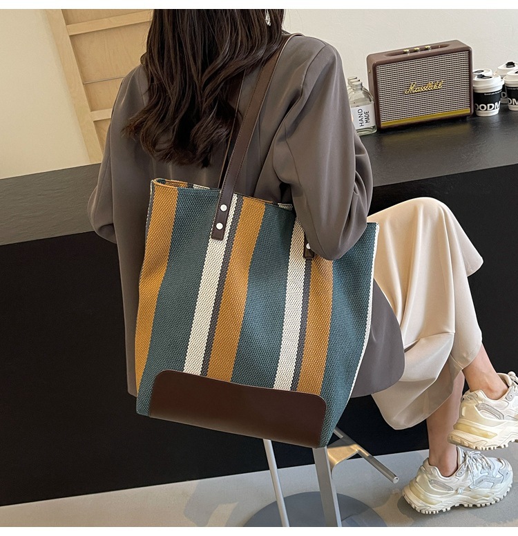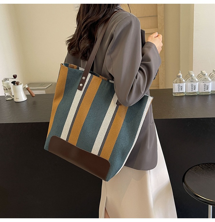 Bolso grande de tela gruesa vieja, lona femenina, tamaño, tamaño 2024, nuevo bolso de hombro de viajero de todo fósforo, bolso tote a rayas de color