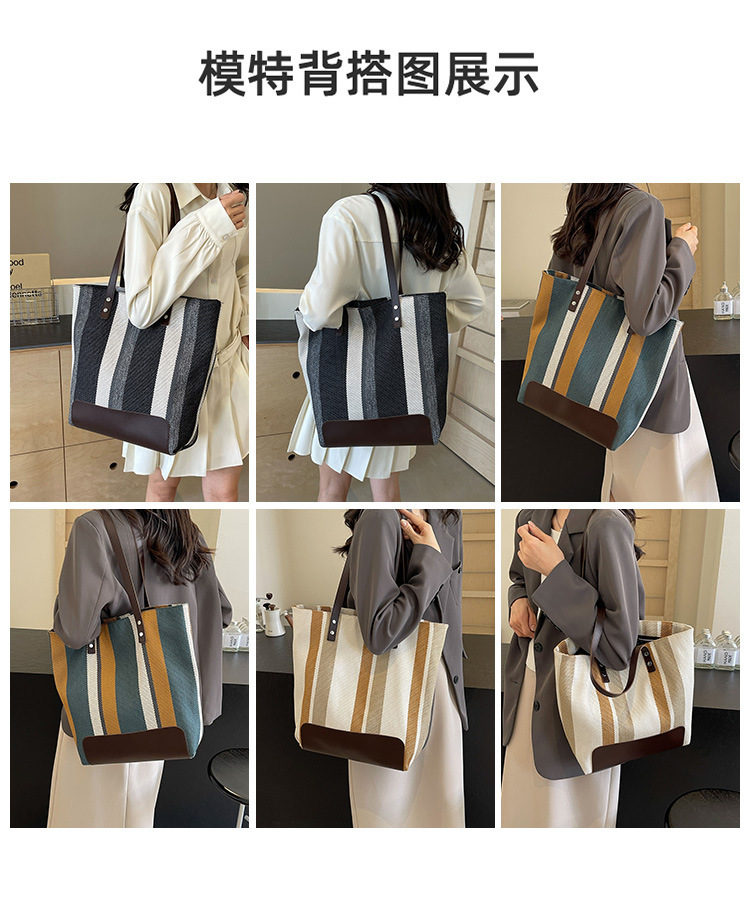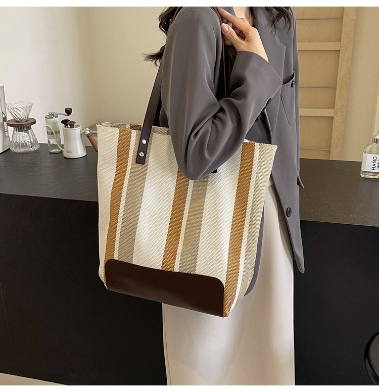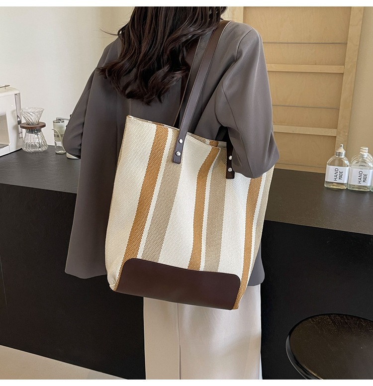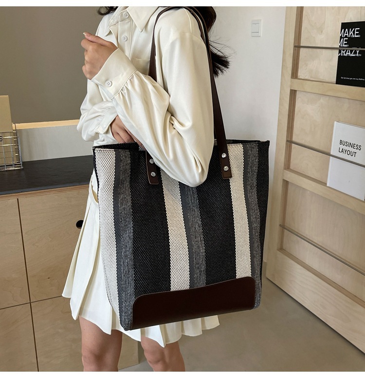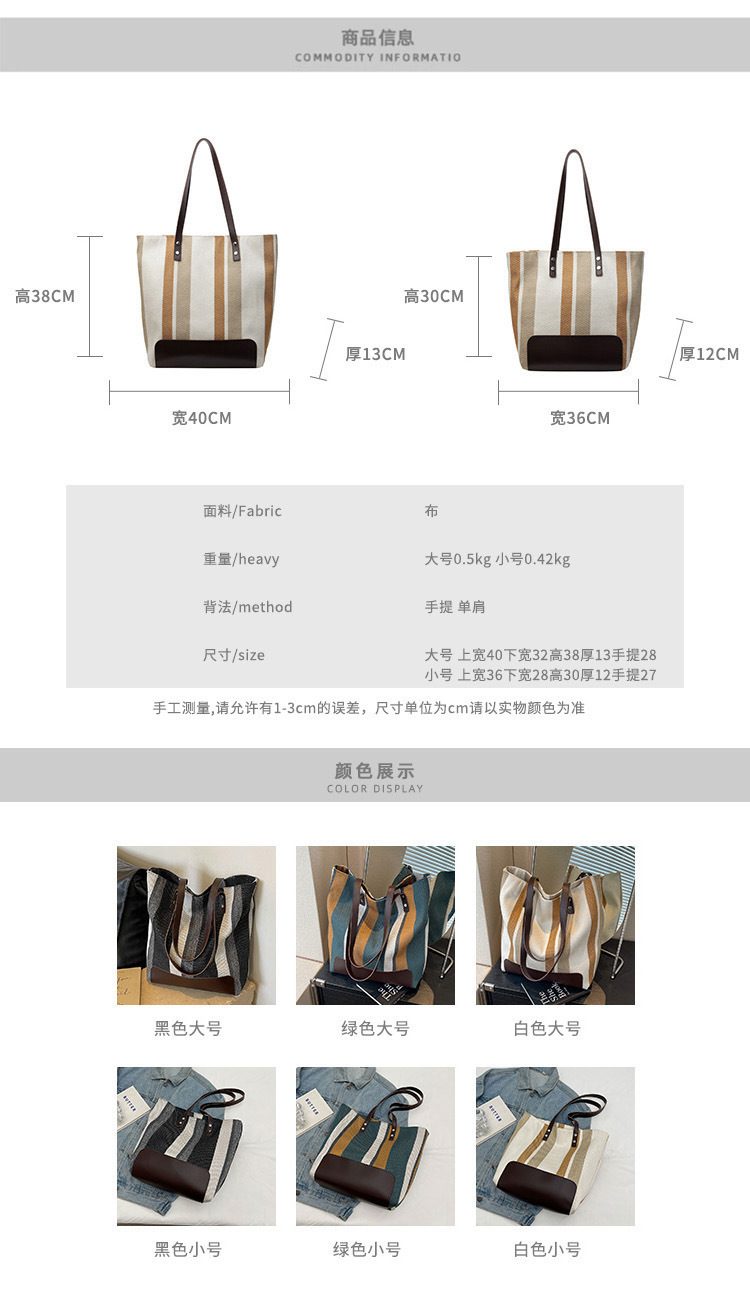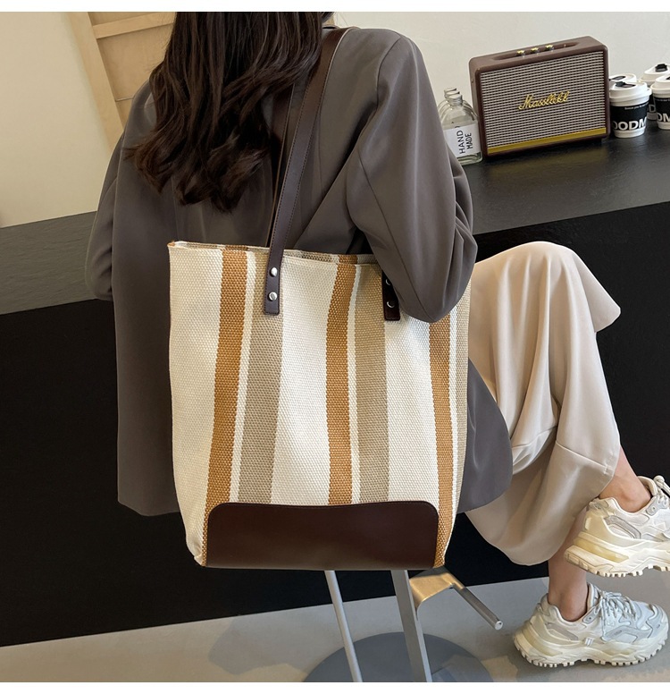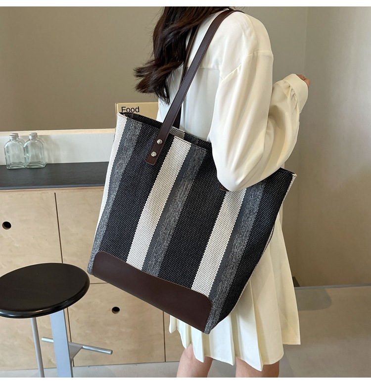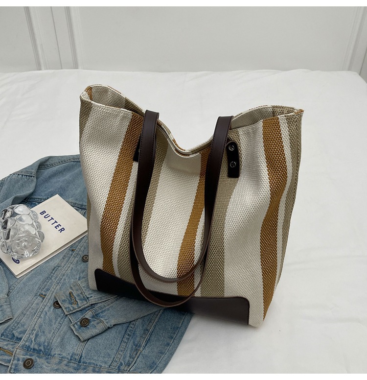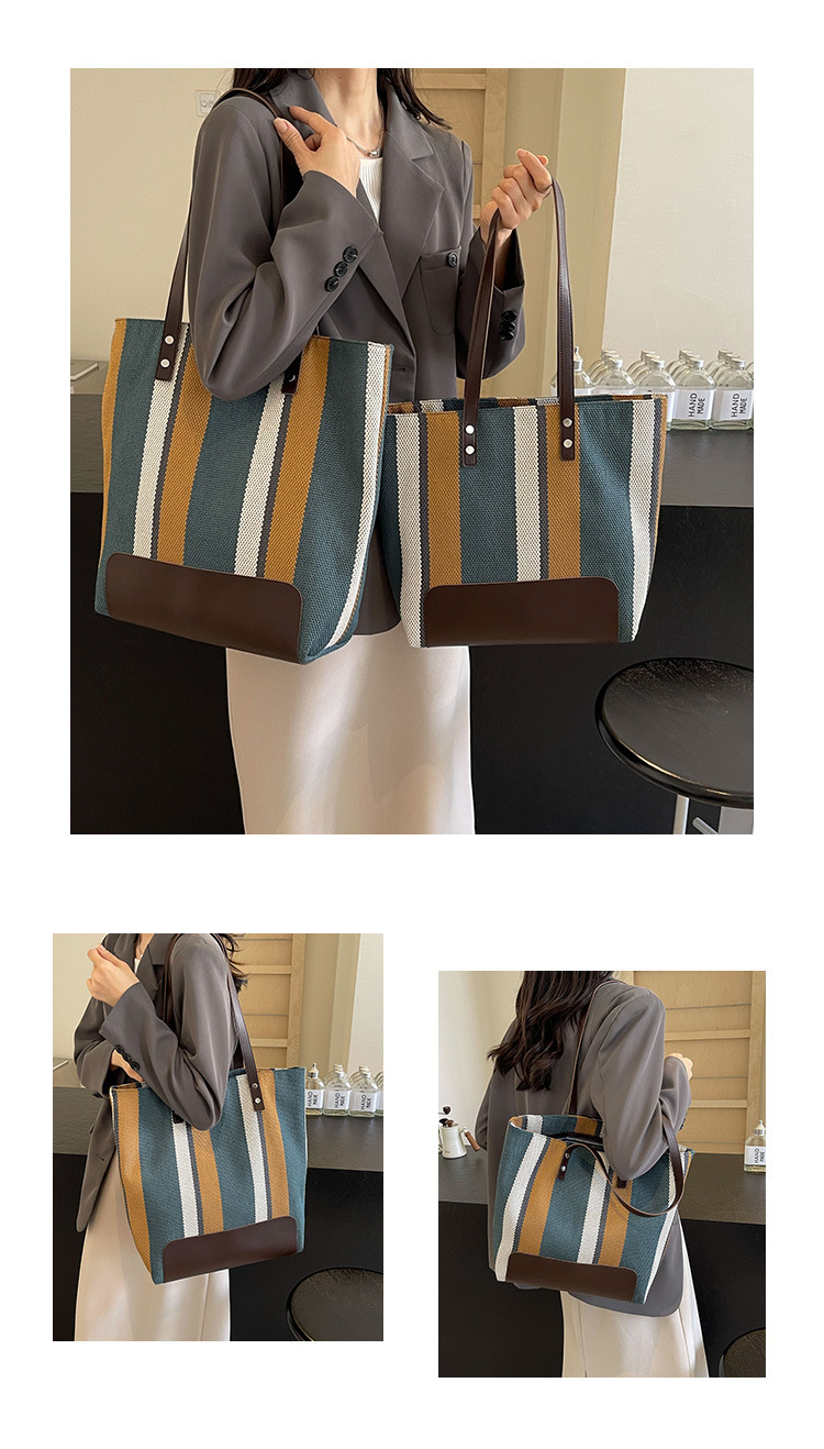Bolso grande de tela gruesa vieja, lona femenina, tamaño, tamaño 2024, nuevo bolso de hombro de viajero de todo fósforo, bolso tote a rayas de color