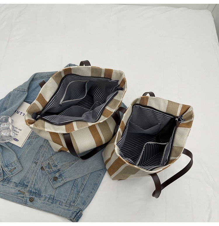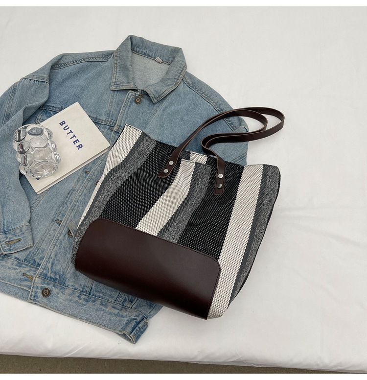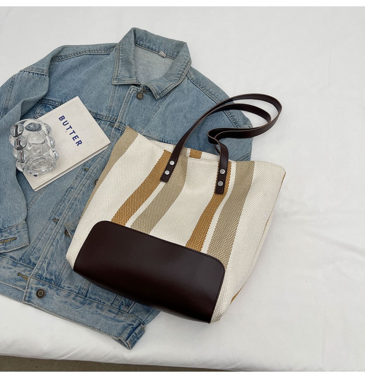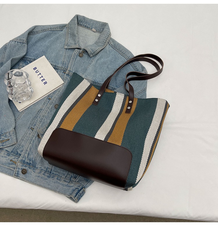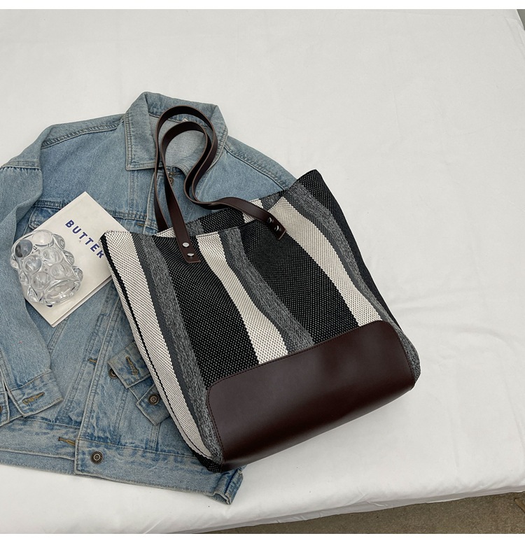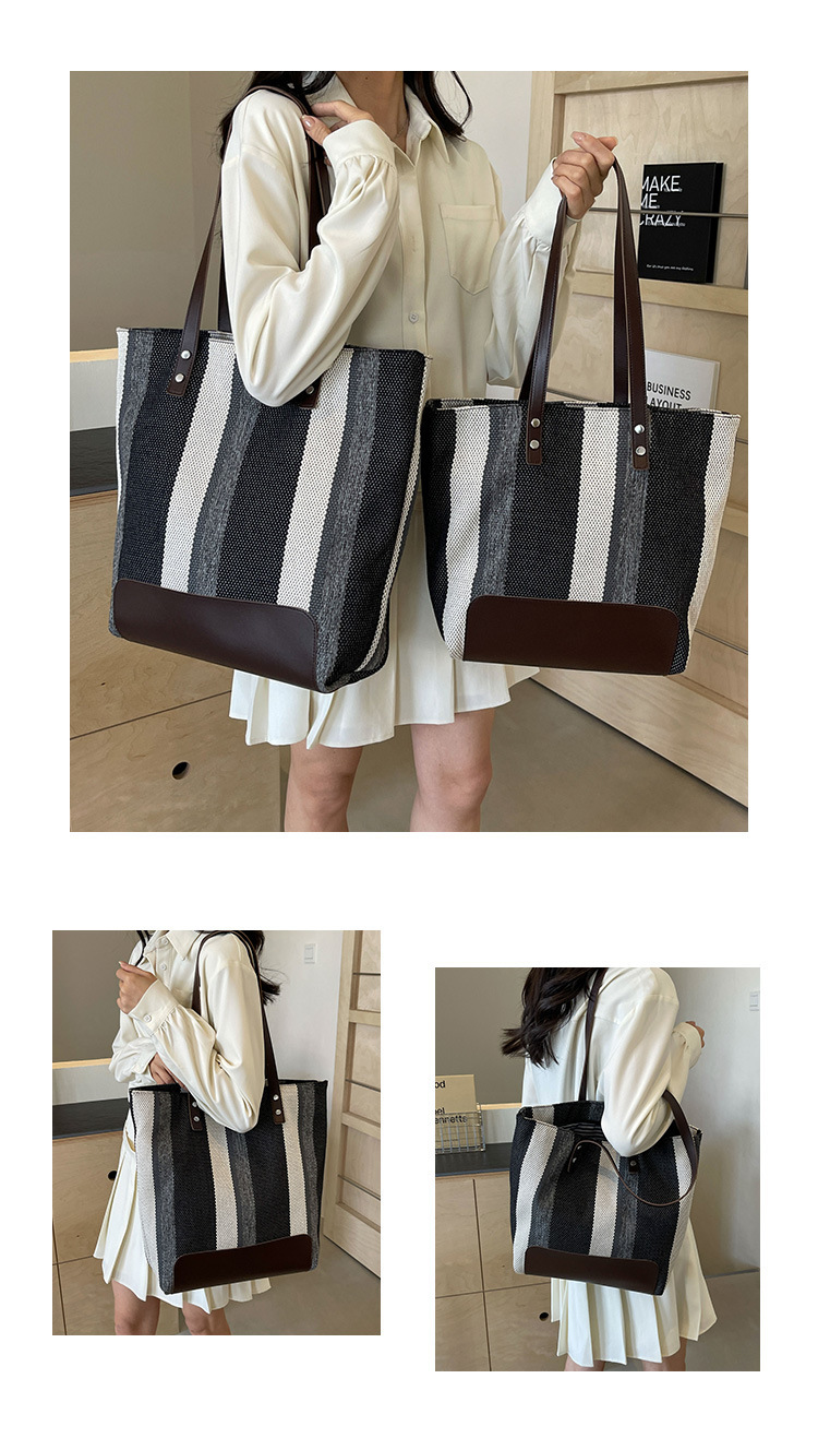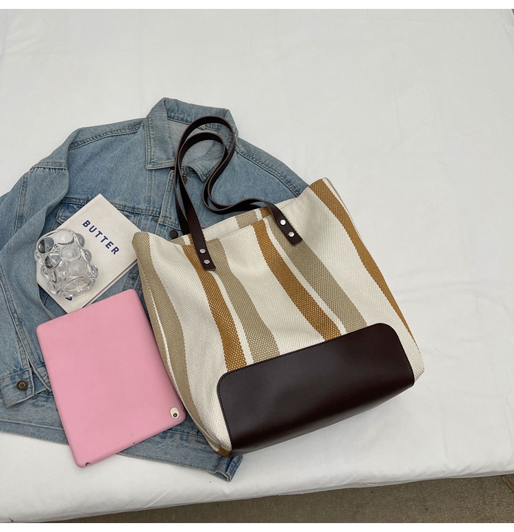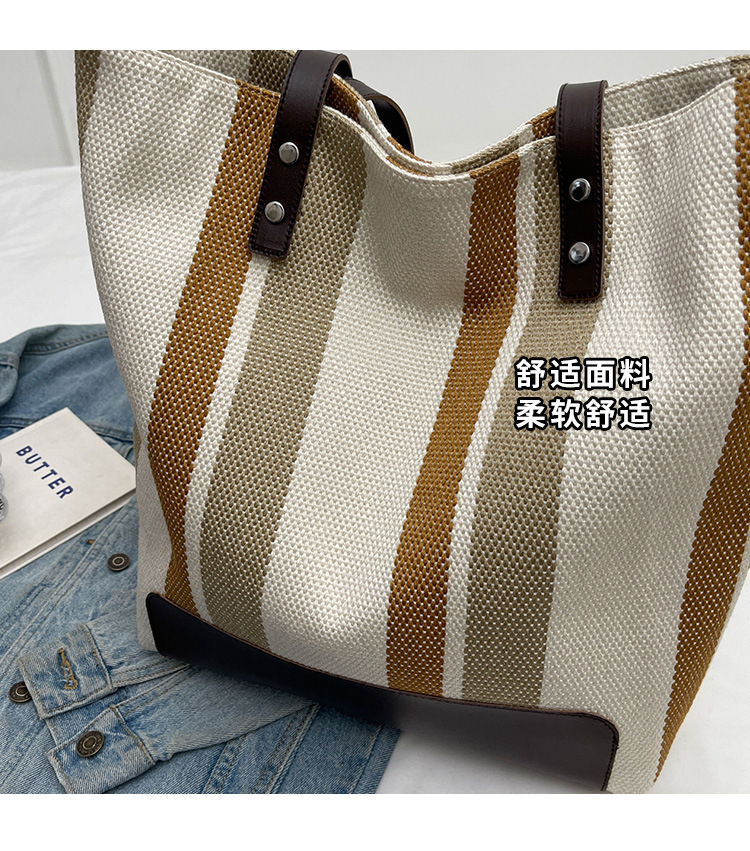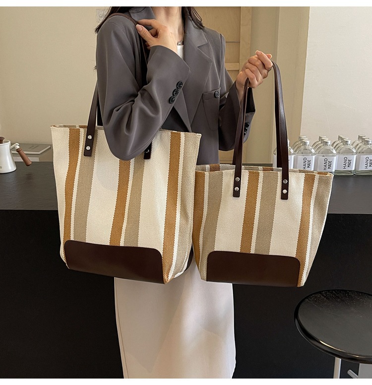 Bolso grande de tela gruesa vieja, lona femenina, tamaño, tamaño 2024, nuevo bolso de hombro de viajero de todo fósforo, bolso tote a rayas de color