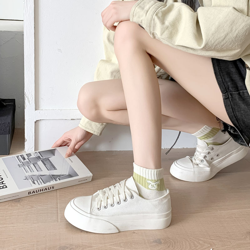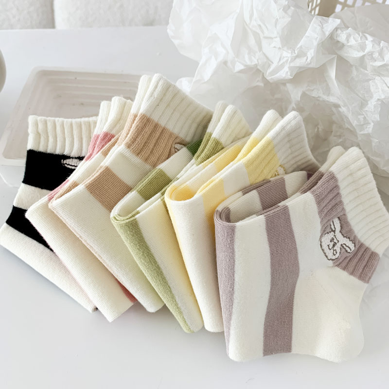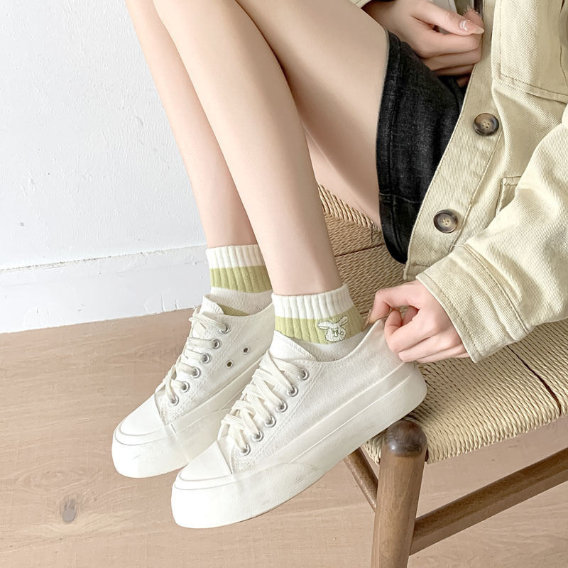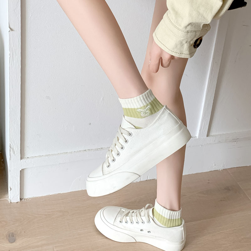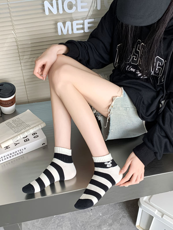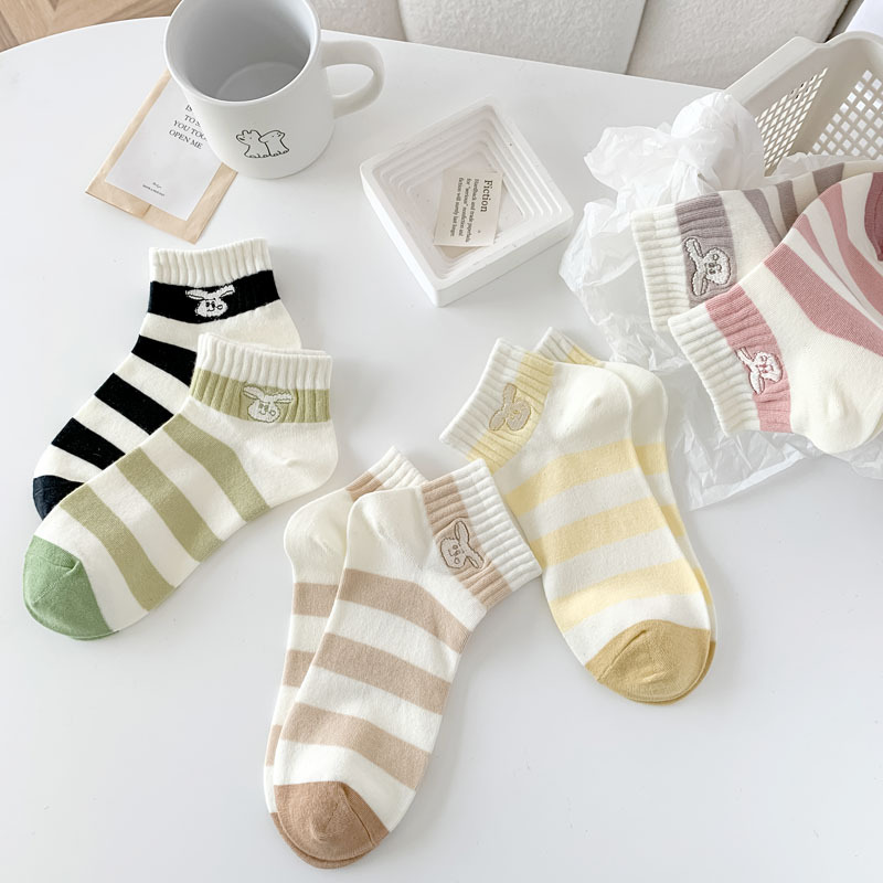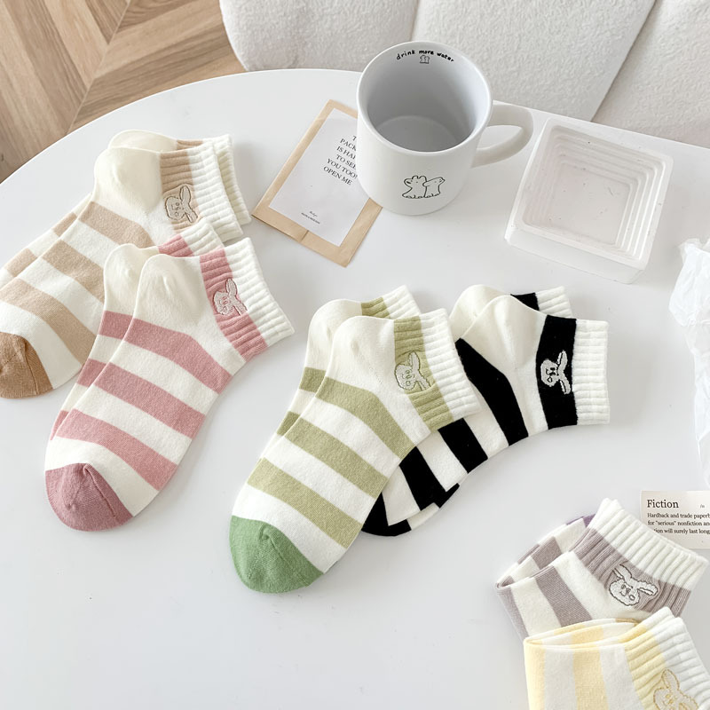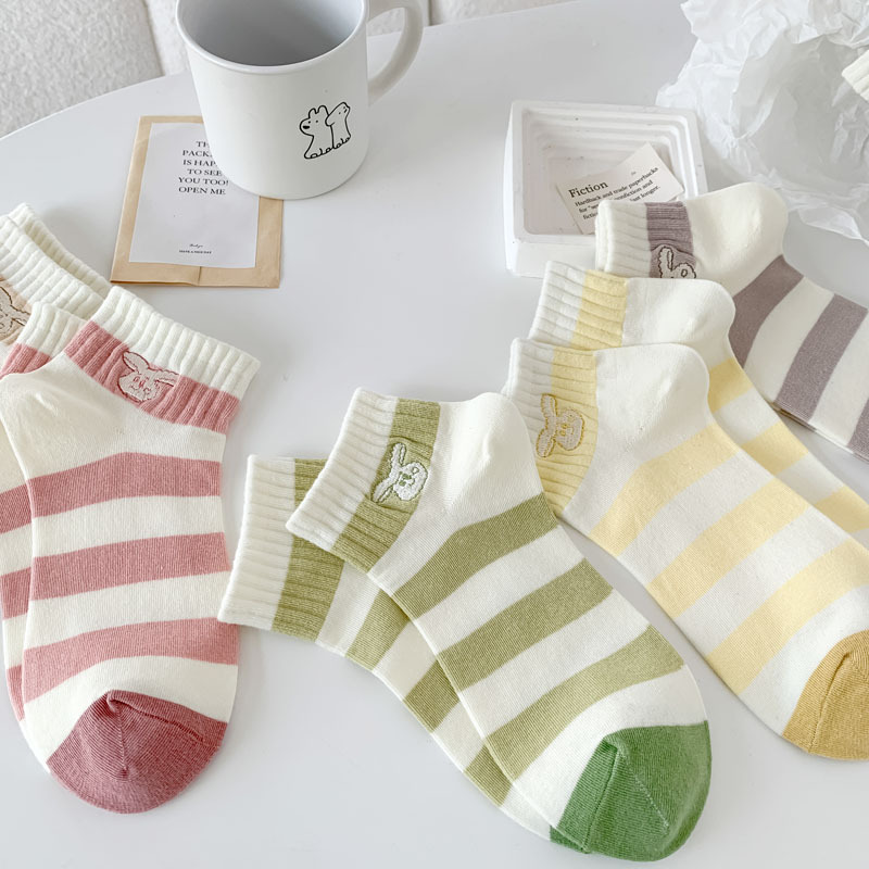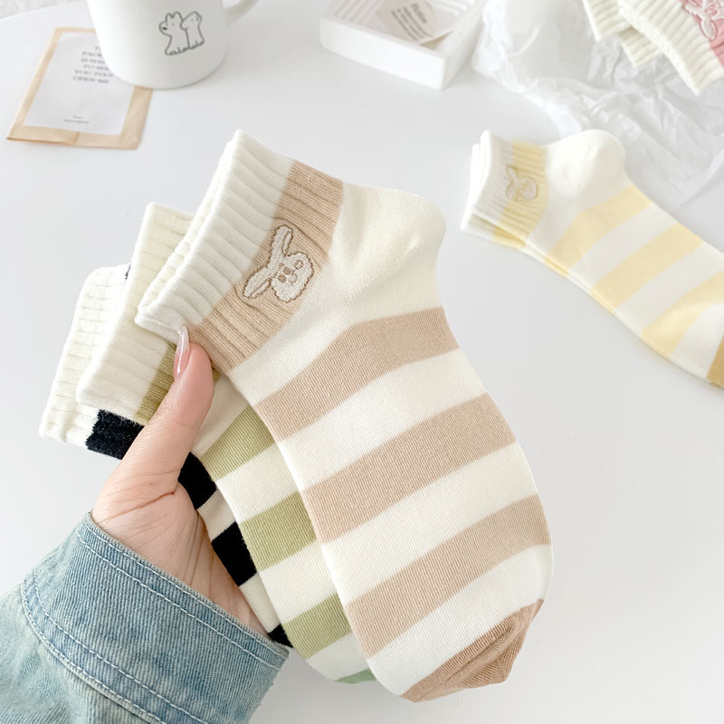 Calcetines de estilo japonés primavera y verano nuevos calcetines de mujer de corte bajo para mujer al por mayor calcetines de mujer sin hueso bordados a rayas estilo preppy algodón