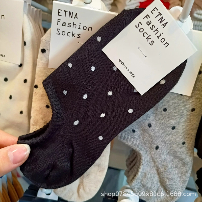 Calcetines coreanos al por mayor transfronterizos ETNA lunares rayas simples calcetines de barco estilo ins calcetines de mujer de boca baja de primavera y verano en stock
