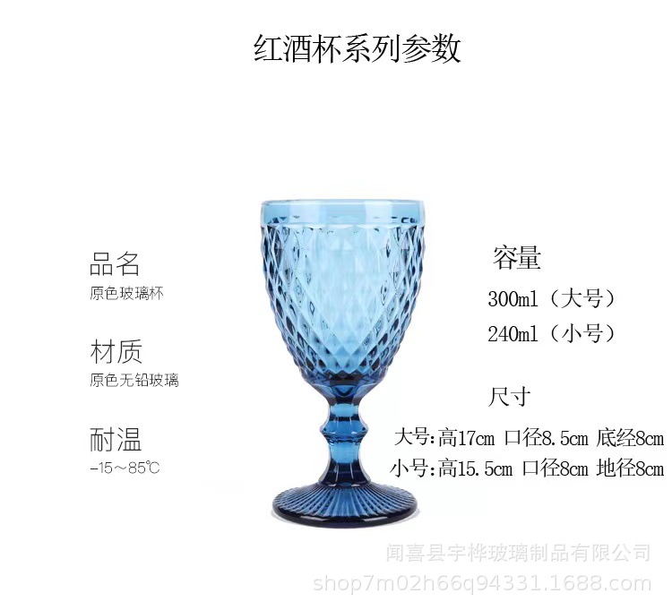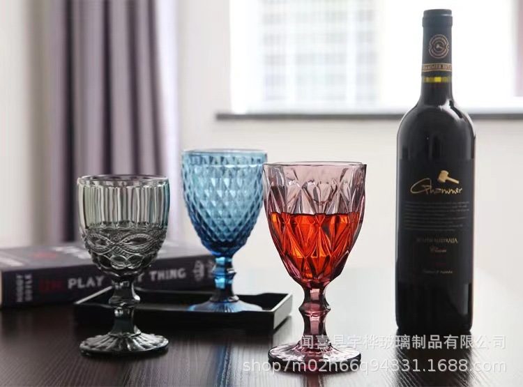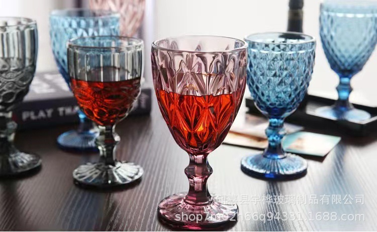 Suministro directo de fábrica de estilo europeo en relieve de vidrio de color copa de vino engrosada copa retro transfronterizo taza media conjunto de vino