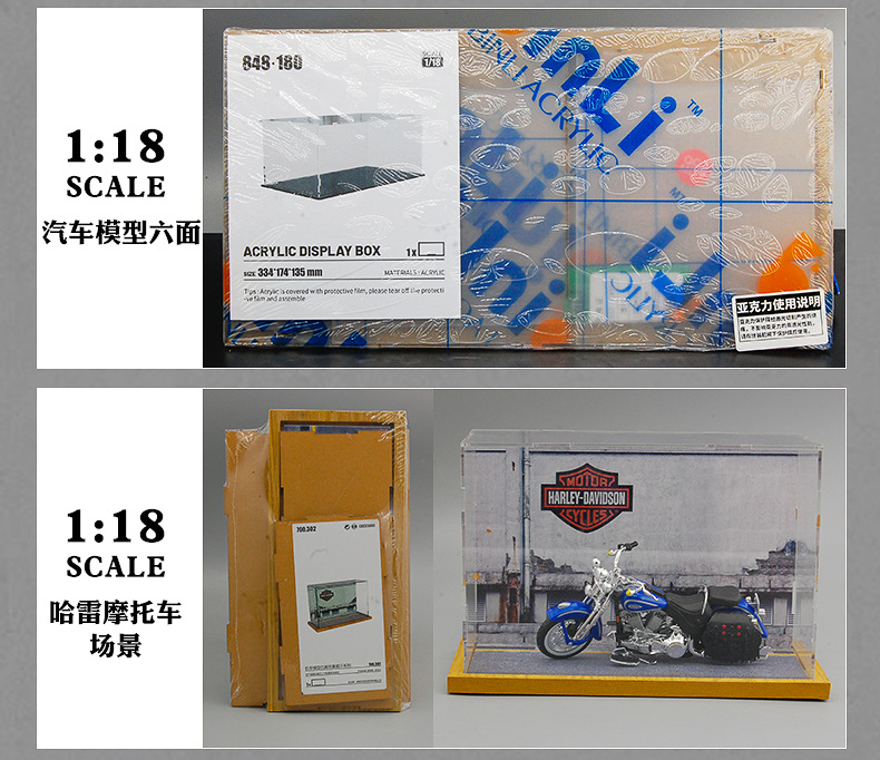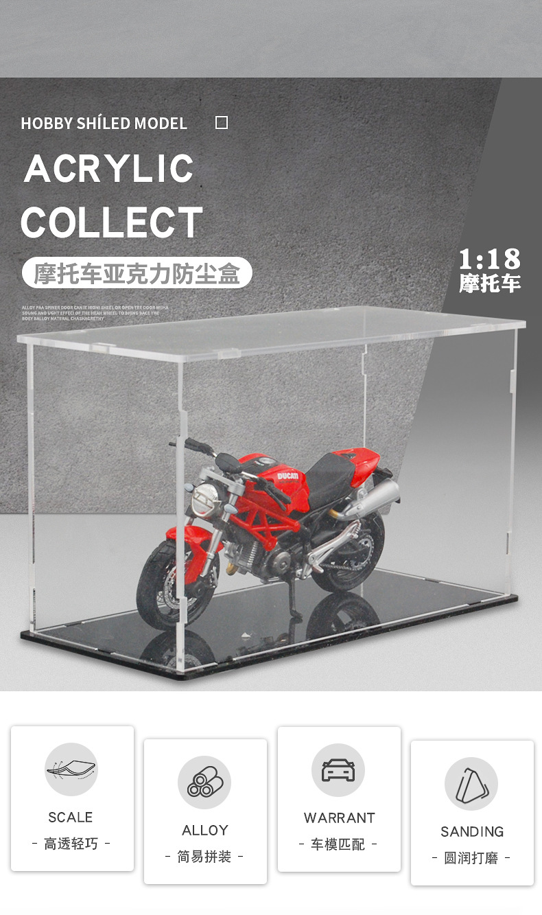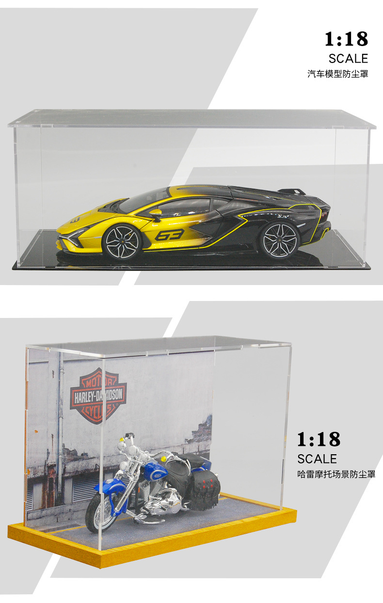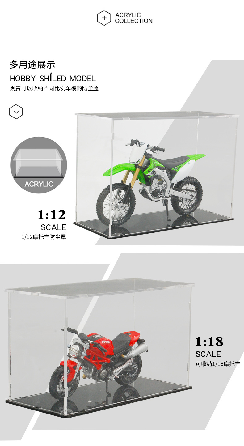Caja de polvo de modelo de automóvil transfronterizo, modelo de motocicleta, colección transparente, espacio de estacionamiento, colección de garaje, decoración de modelo de automóvil