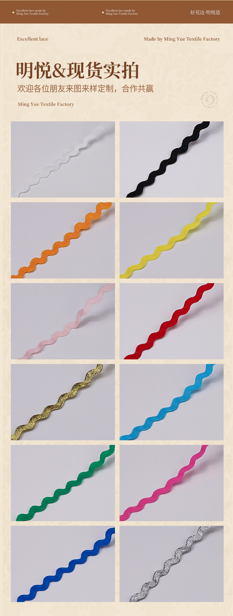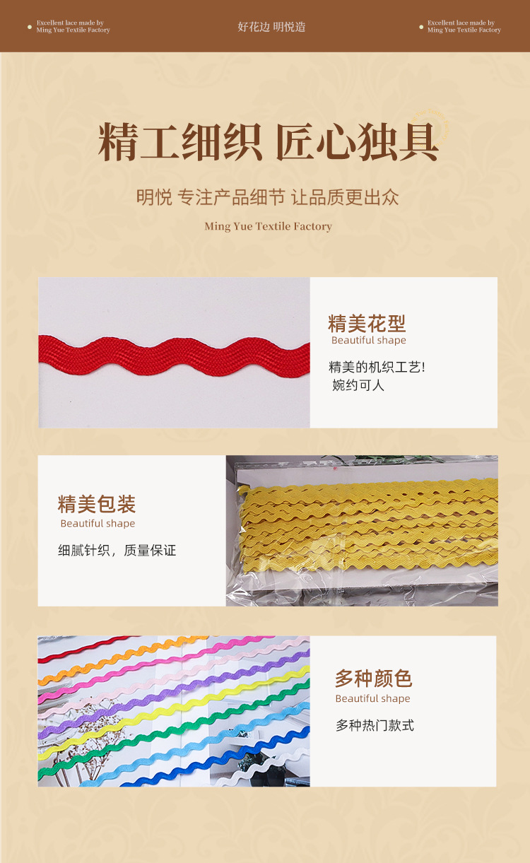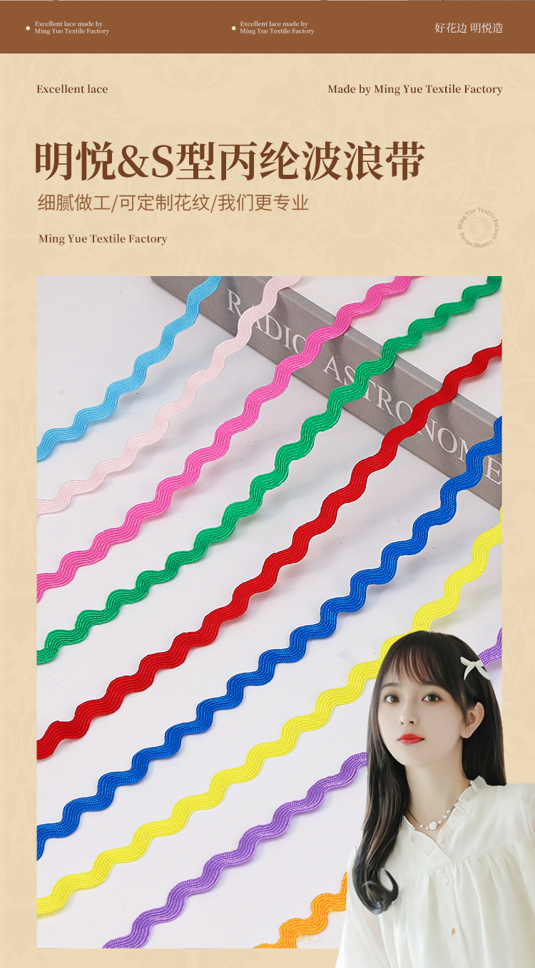 现货批发彩色5MM波浪带S型曲边织带水兵带 服装领口箱包鞋材辅料