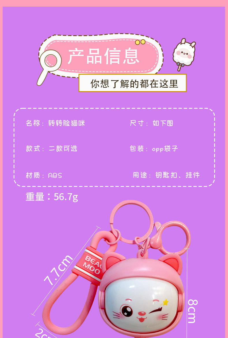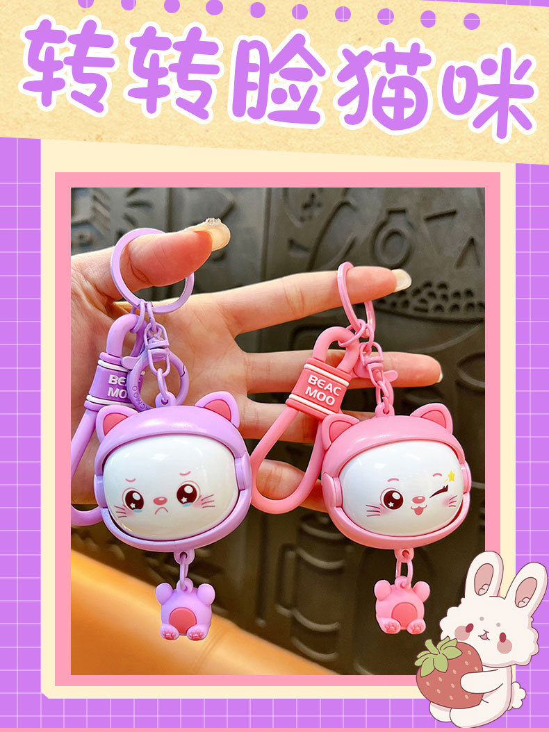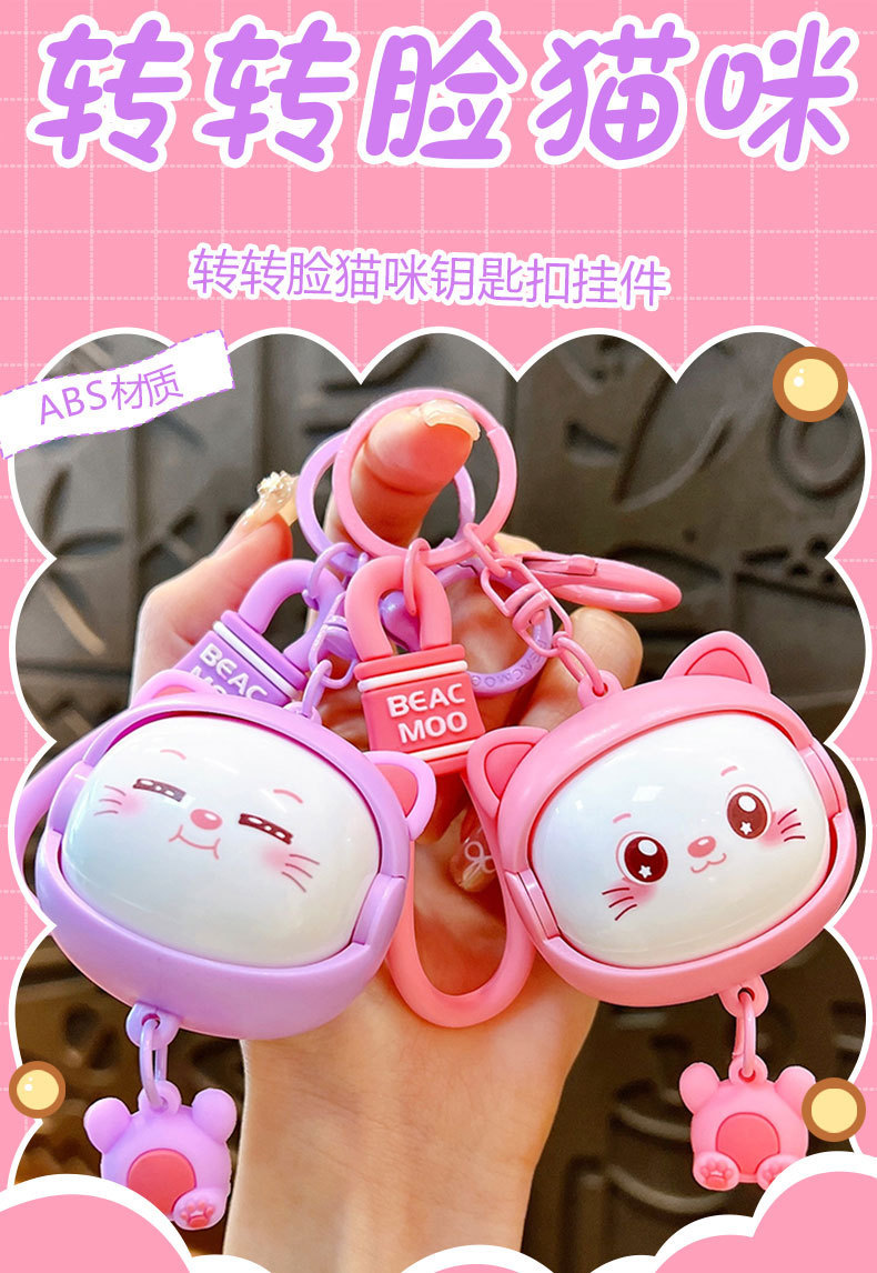 Llavero creativo de dibujos animados girando música lindo descompresión cambio de cara llavero de gato bolsos para hombres y mujeres pequeños regalos al por mayor