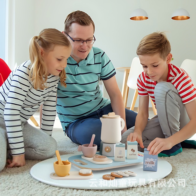 Educación temprana para niños Cognitivo Café Vajilla Simulación Juegos de la casa Juguetes Rompecabezas para bebés Silicona multifuncional Taza de té de madera