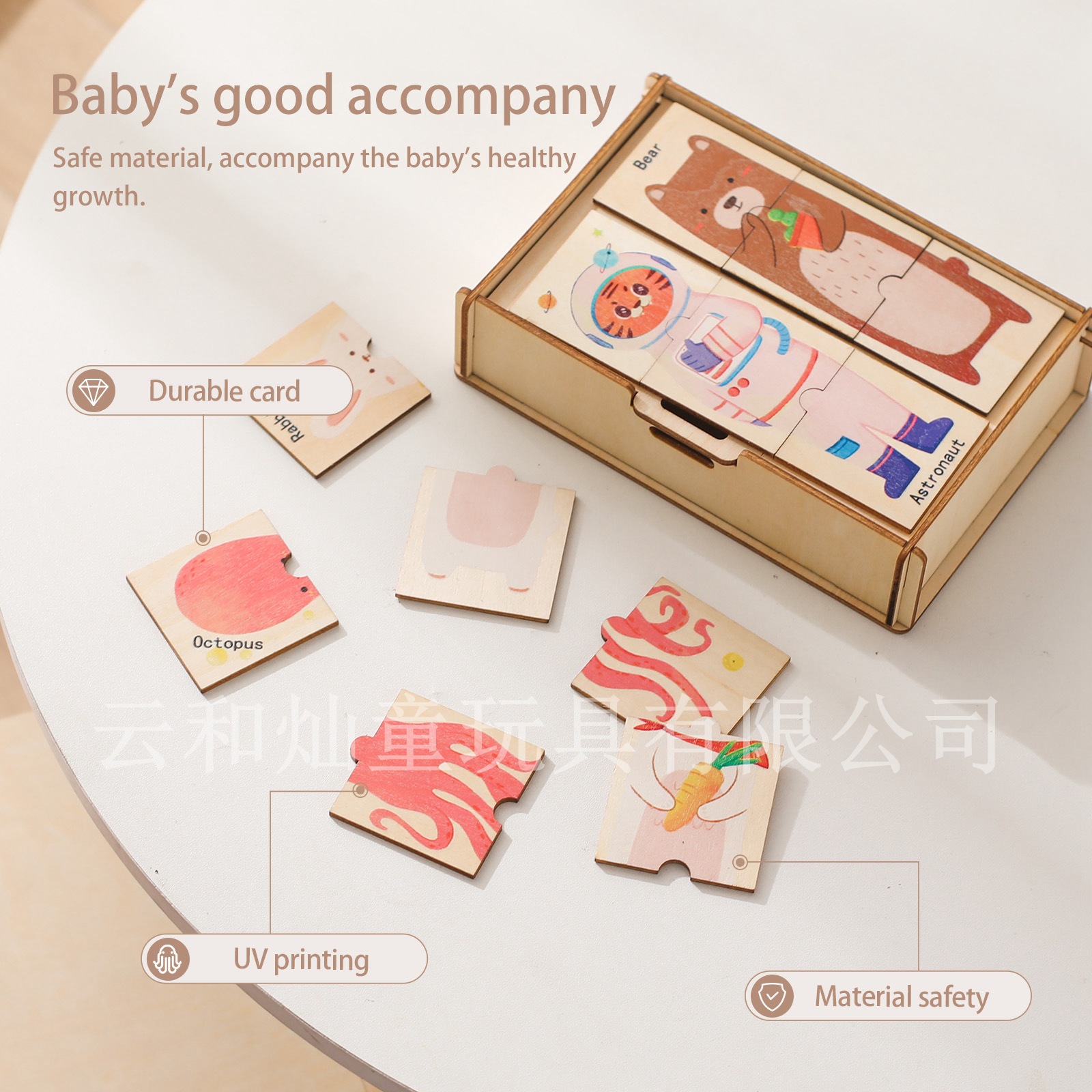 Nuevo rompecabezas de madera transfronterizo, juego de juguetes, educación temprana para bebés, rompecabezas de combinación de iluminación, rompecabezas de bloques cognitivos de animales