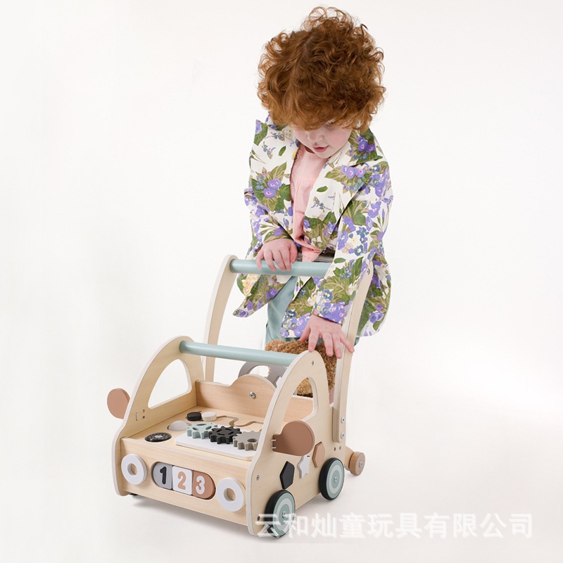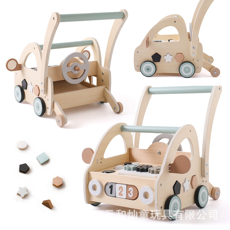 Cochecito multifuncional para niños anti-vuelco para niños, juguete de combinación de formas de rompecabezas para bebés de madera, andador para aprender a caminar