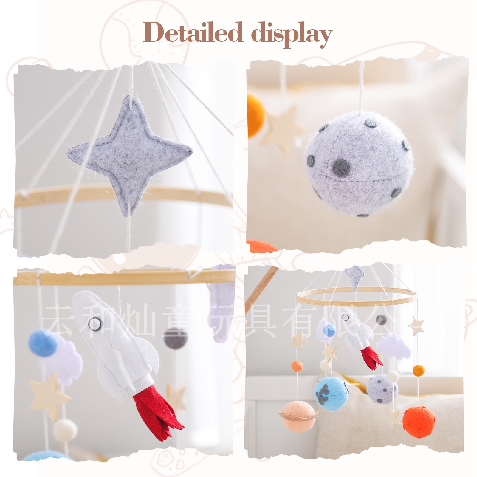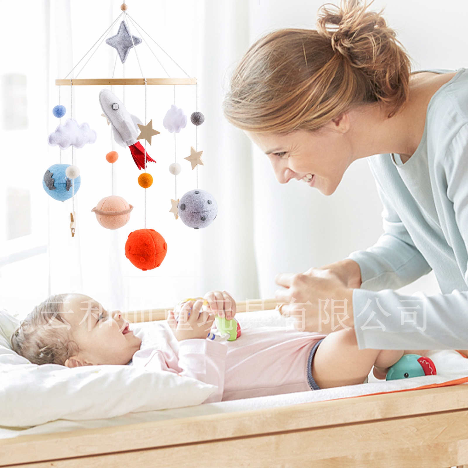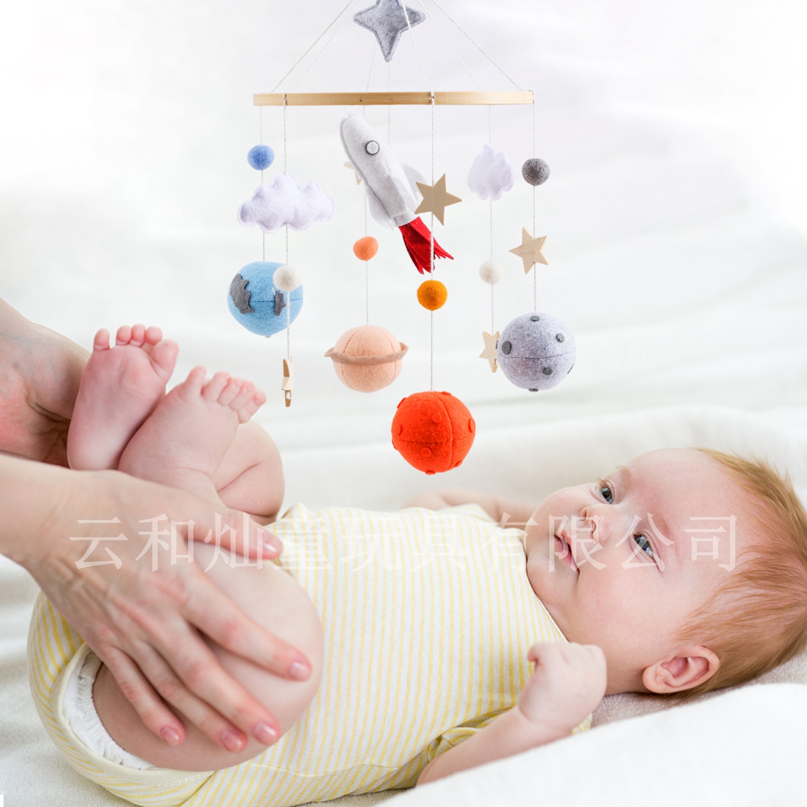 Nuevas campanas de cama para niños transfronterizas, campanas de cama de fieltro de cohete espacial, sin ensamblaje, bebés que duermen, campanas de viento calmantes, sonajeros